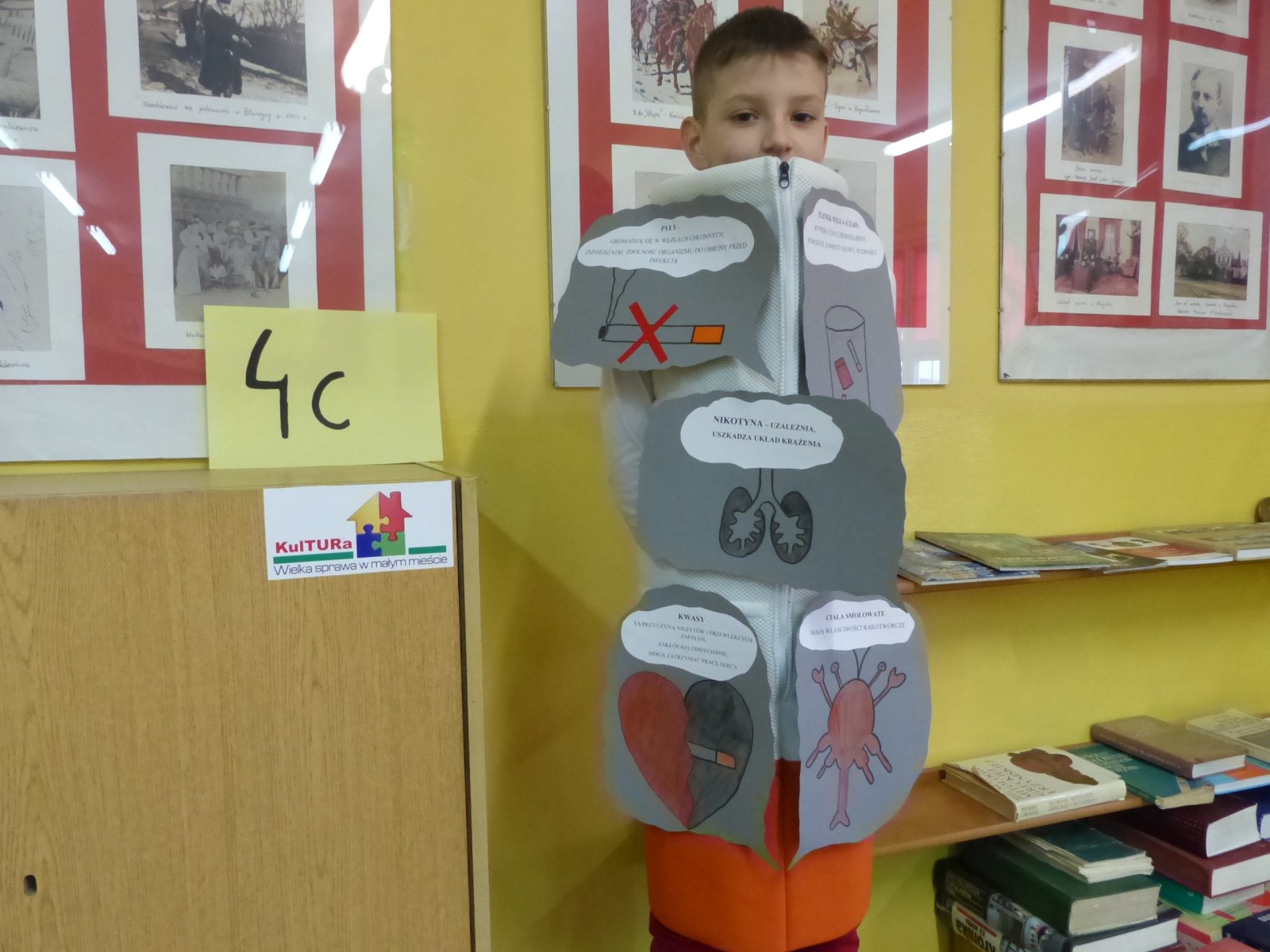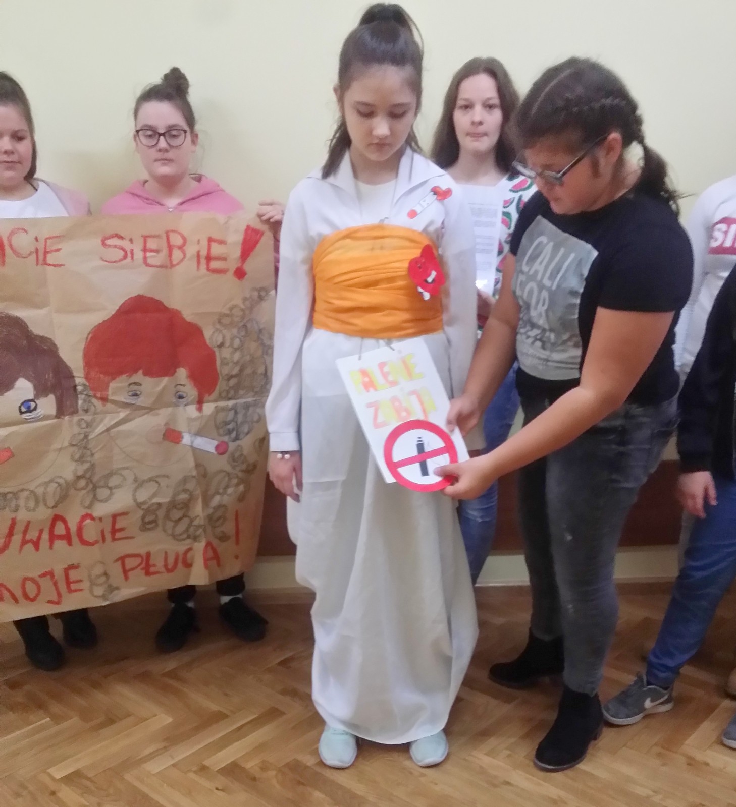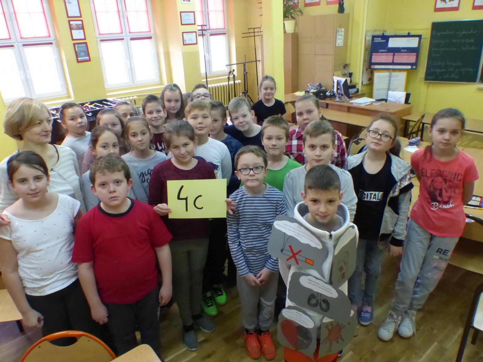 16 listopada 2017r. obchodziliśmy Światowy Dzień Rzucania Palenia. Tego dnia klasy 1-3 opracowywały nowe zakazy palenia tytoniu, a klasy 4-6 przebierały się za papierosa, obklejając go nawami substancji trujących. Każda klasa wraz z wychowawcą omówiła skutki palenia tytoniu i zapoznała się z statystykami osób palących w Polsce. Zadowalające jest to, iż procent ludzi palących papierosy jest z roku na rok coraz mniejszy. Klasa 4d i 5c zaprezentowały swoje stroje oraz uświadamiały uczniów i pracowników całej szkoły. Na wywiadówce rodzice zostali zapoznani z metodami rzucania palenia.