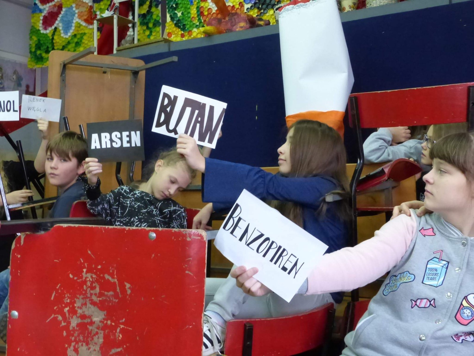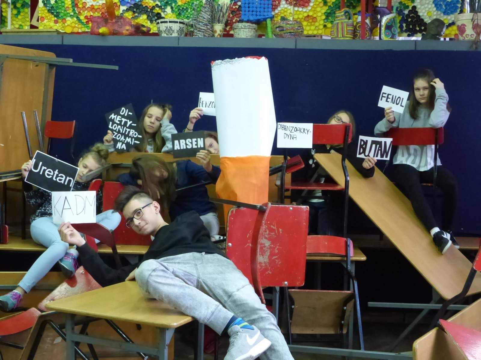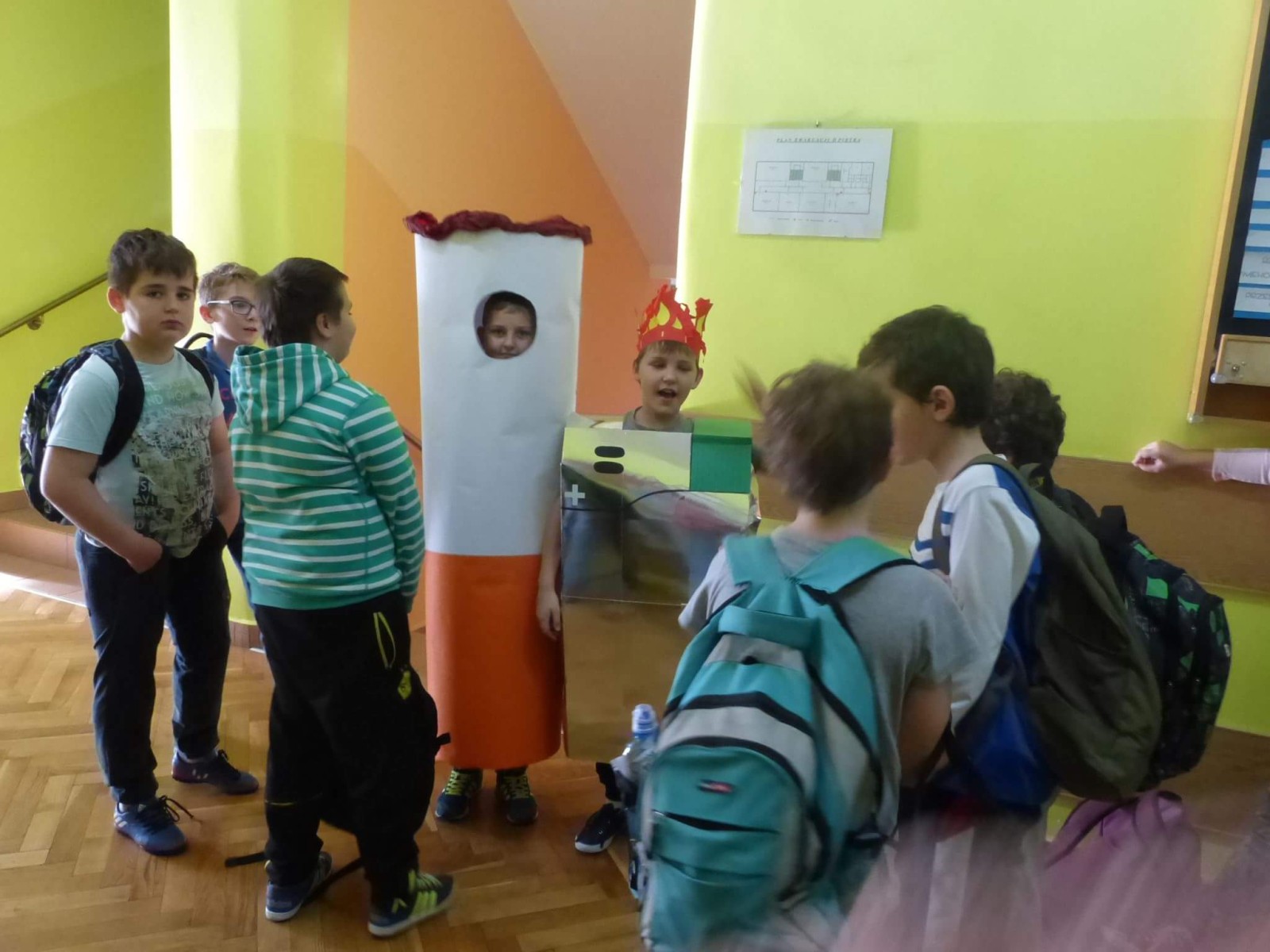 16 listopada 2017r. obchodziliśmy Światowy Dzień Rzucania Palenia. Tego dnia klasy 1-3 opracowywały nowe zakazy palenia tytoniu, a klasy 4-6 przebierały się za papierosa, obklejając go nawami substancji trujących. Każda klasa wraz z wychowawcą omówiła skutki palenia tytoniu i zapoznała się z statystykami osób palących w Polsce. Zadowalające jest to, iż procent ludzi palących papierosy jest z roku na rok coraz mniejszy. Klasa 4d i 5c zaprezentowały swoje stroje oraz uświadamiały uczniów i pracowników całej szkoły. Na wywiadówce rodzice zostali zapoznani z metodami rzucania palenia.