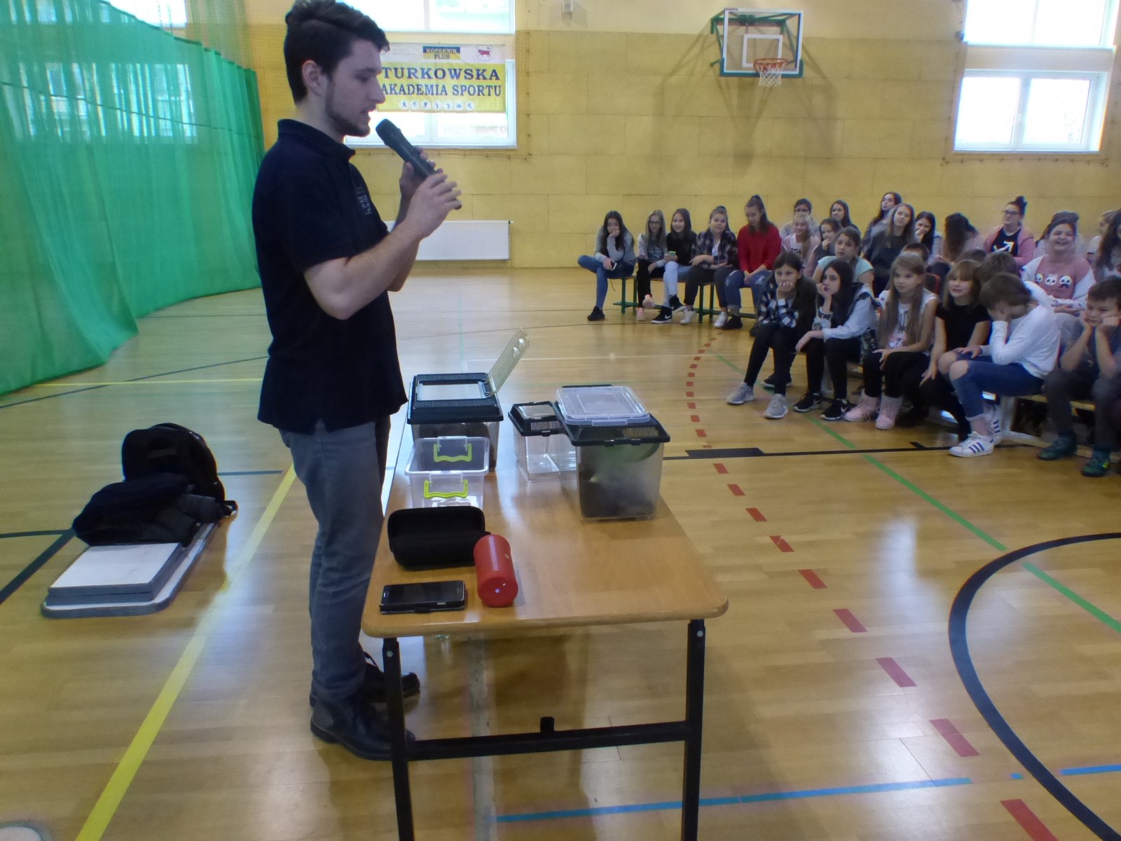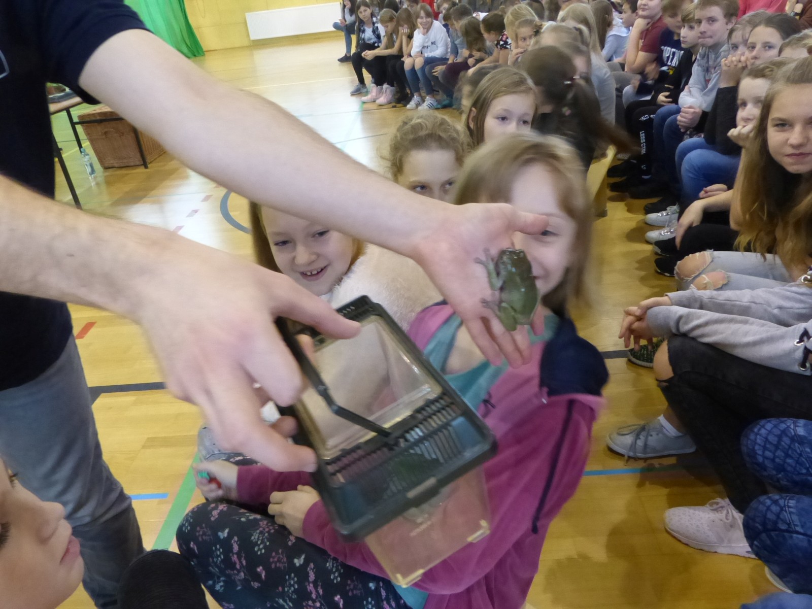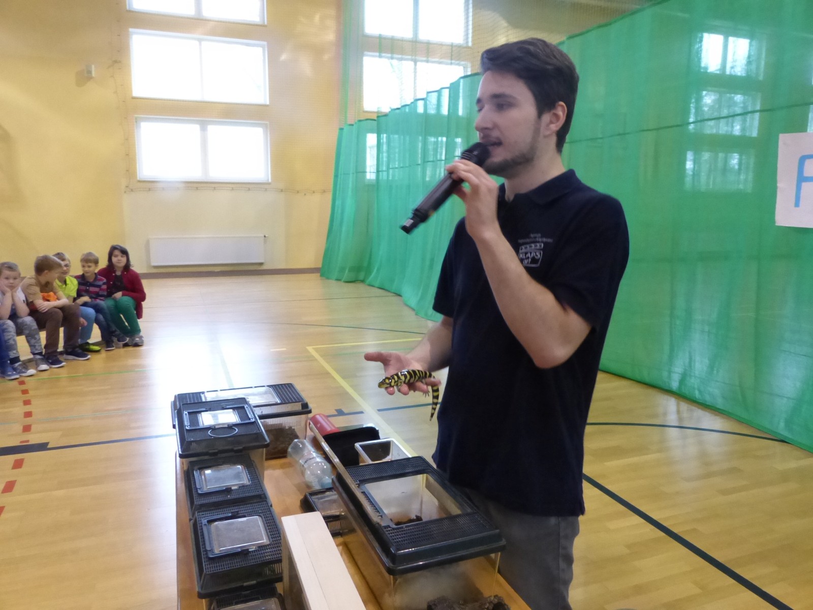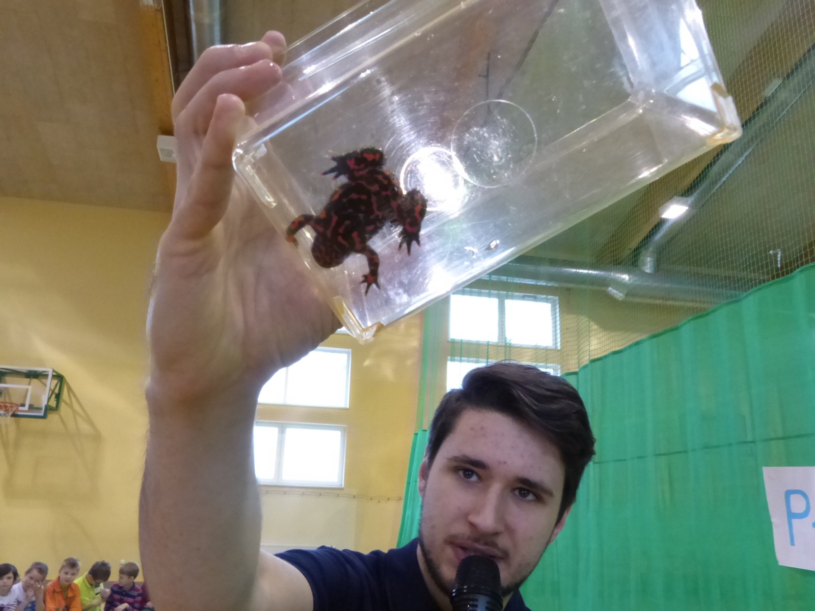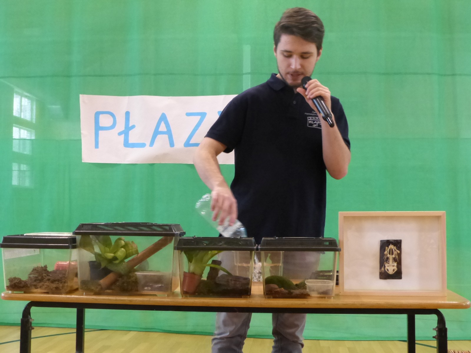 16 listopada 2017 roku w naszej szkole odbyła się żywa lekcja przyrody. Tematyką było życie płazów. Te całkiem nieduże zwierzęta mają wiele cech przystosowawczych. Mogliśmy na żywo zobaczyć płazy ze świata: ropuchę Agę, rzekotkę zieloną australijską, kumak dalekowschodni, traszki ogniste z Japonii i salamandrę tygrysią. W sposób spontaniczny i przyjemny poszerzyliśmy swoją wiedzę oraz przezwyciężyliśmy lęk przed nieznanym. Dowiedzieliśmy się, że najwięcej płazów jest w Indiach. W Polsce występuje 18 gatunków i wszystkie są pod ochroną. Wiele wrażeń i pozytywnych emocji było widać na naszych twarzach. Oby jak najwięcej takich lekcji jak dziś.