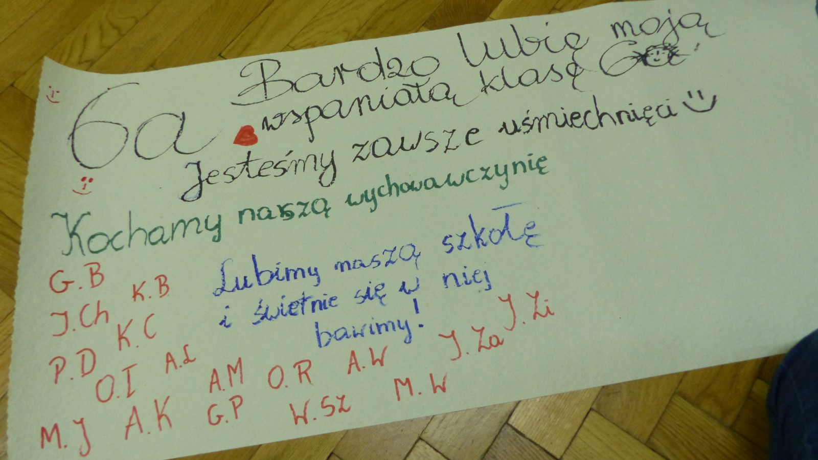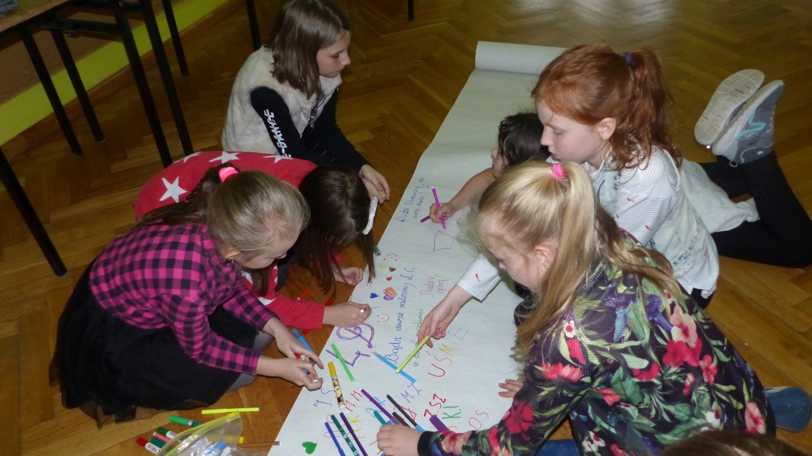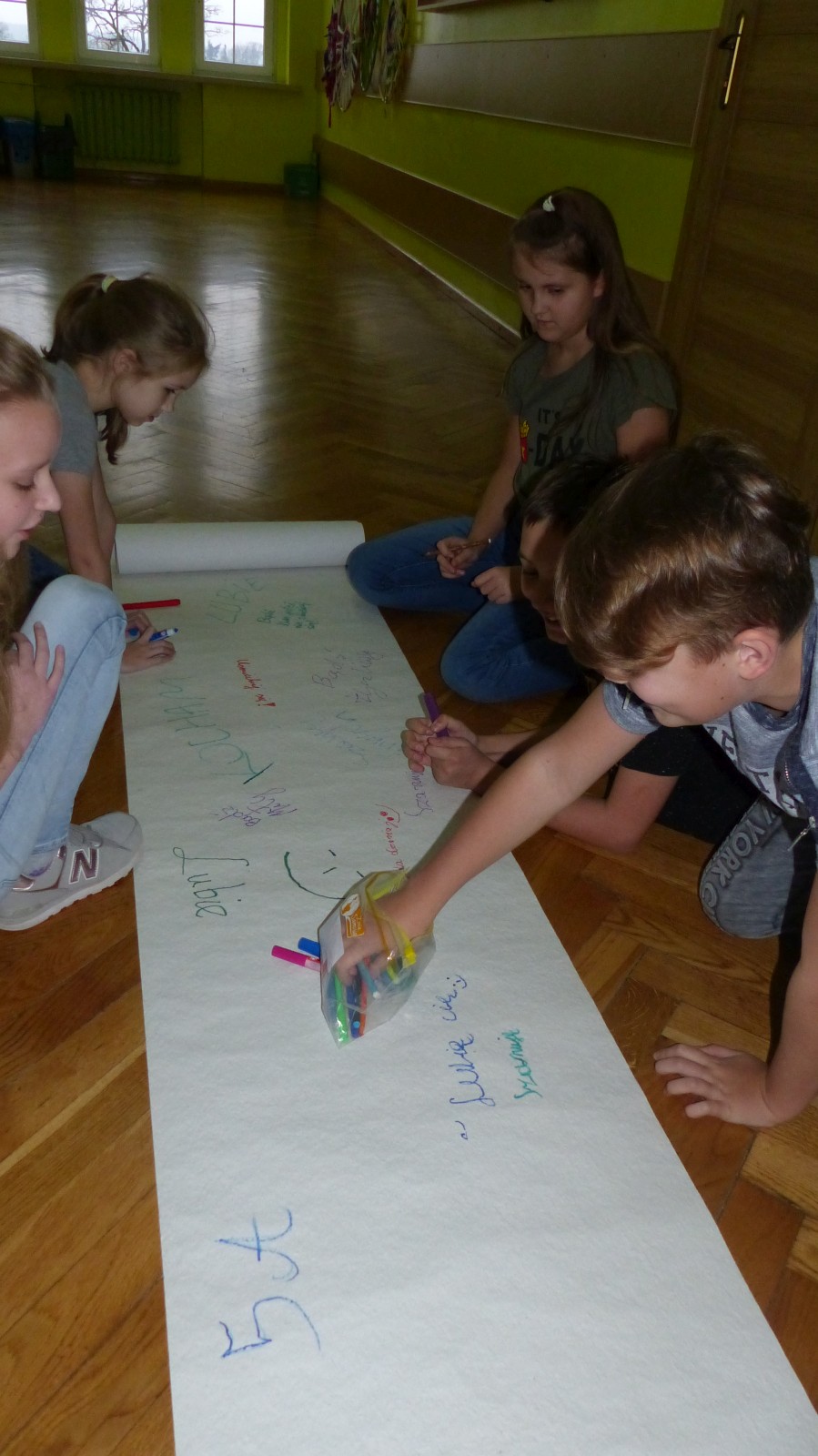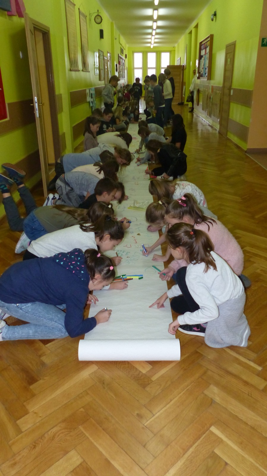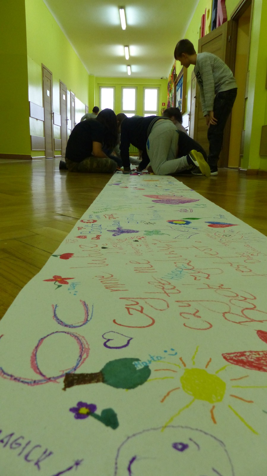 21 listopada 2017r. obchodziliśmy Światowy Dzień Życzliwości i Uśmiechu. W tym dniu razem tworzyliśmy „Mega Życzenia”. Uczniowie klas 4-6 i nauczyciele wpisywali życzenia, życzliwe słowa i hasła dla kolegów, koleżanek oraz bliskich osób. Inicjatorem „Mega Życzeń” był Samorząd Uczniowski.