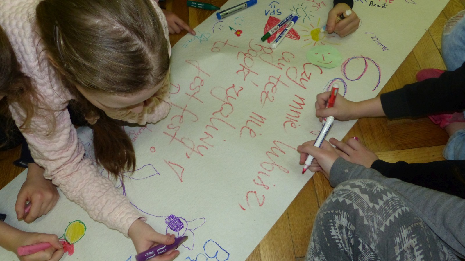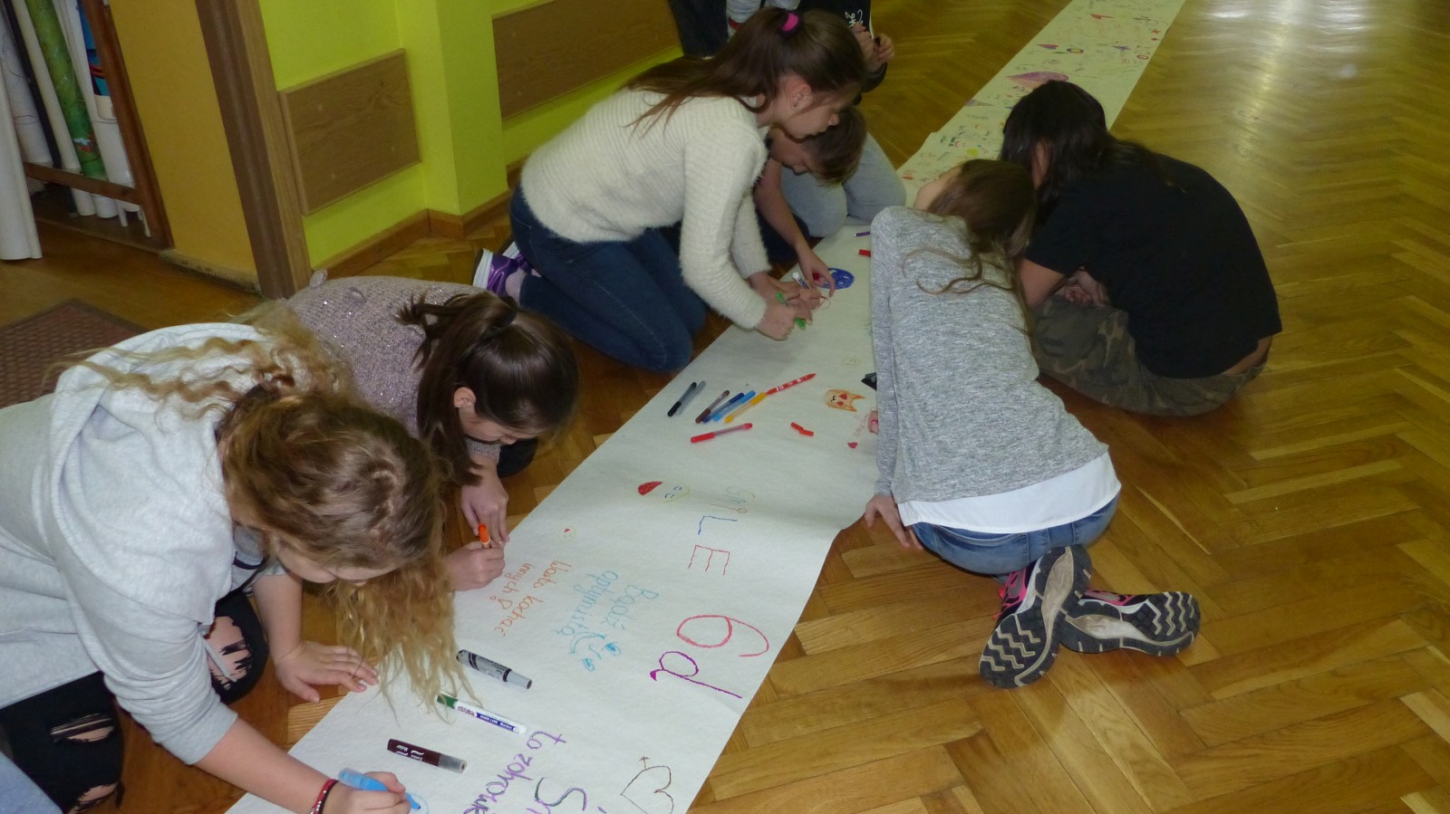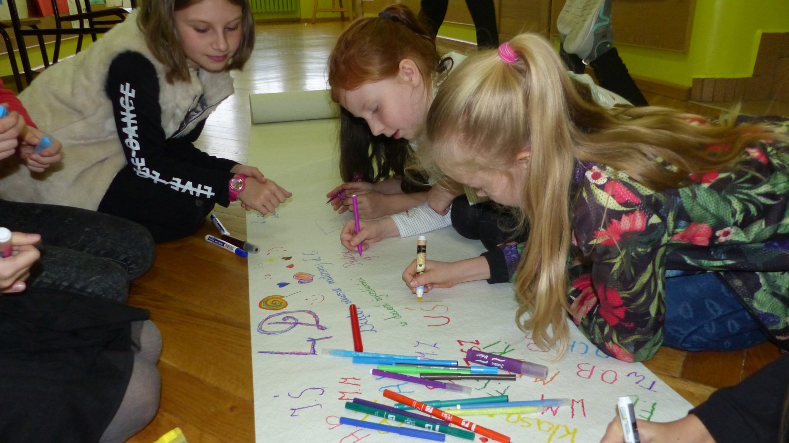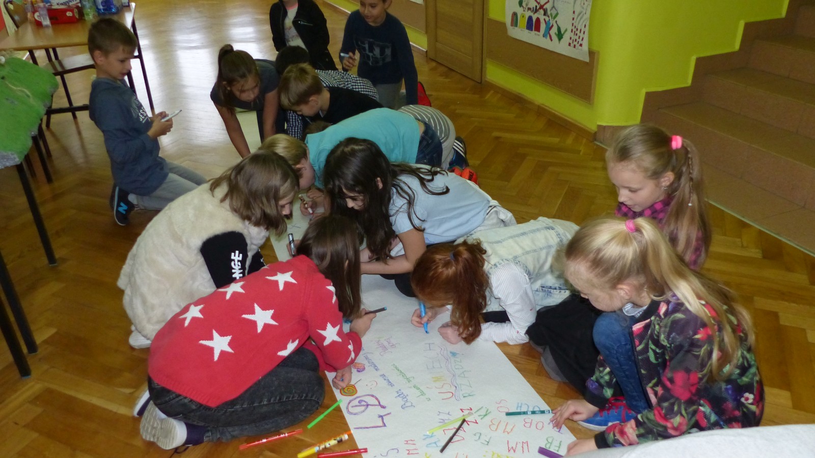 21 listopada 2017r. obchodziliśmy Światowy Dzień Życzliwości i Uśmiechu. W tym dniu razem tworzyliśmy „Mega Życzenia”. Uczniowie klas 4-6 i nauczyciele wpisywali życzenia, życzliwe słowa i hasła dla kolegów, koleżanek oraz bliskich osób. Inicjatorem „Mega Życzeń” był Samorząd Uczniowski.