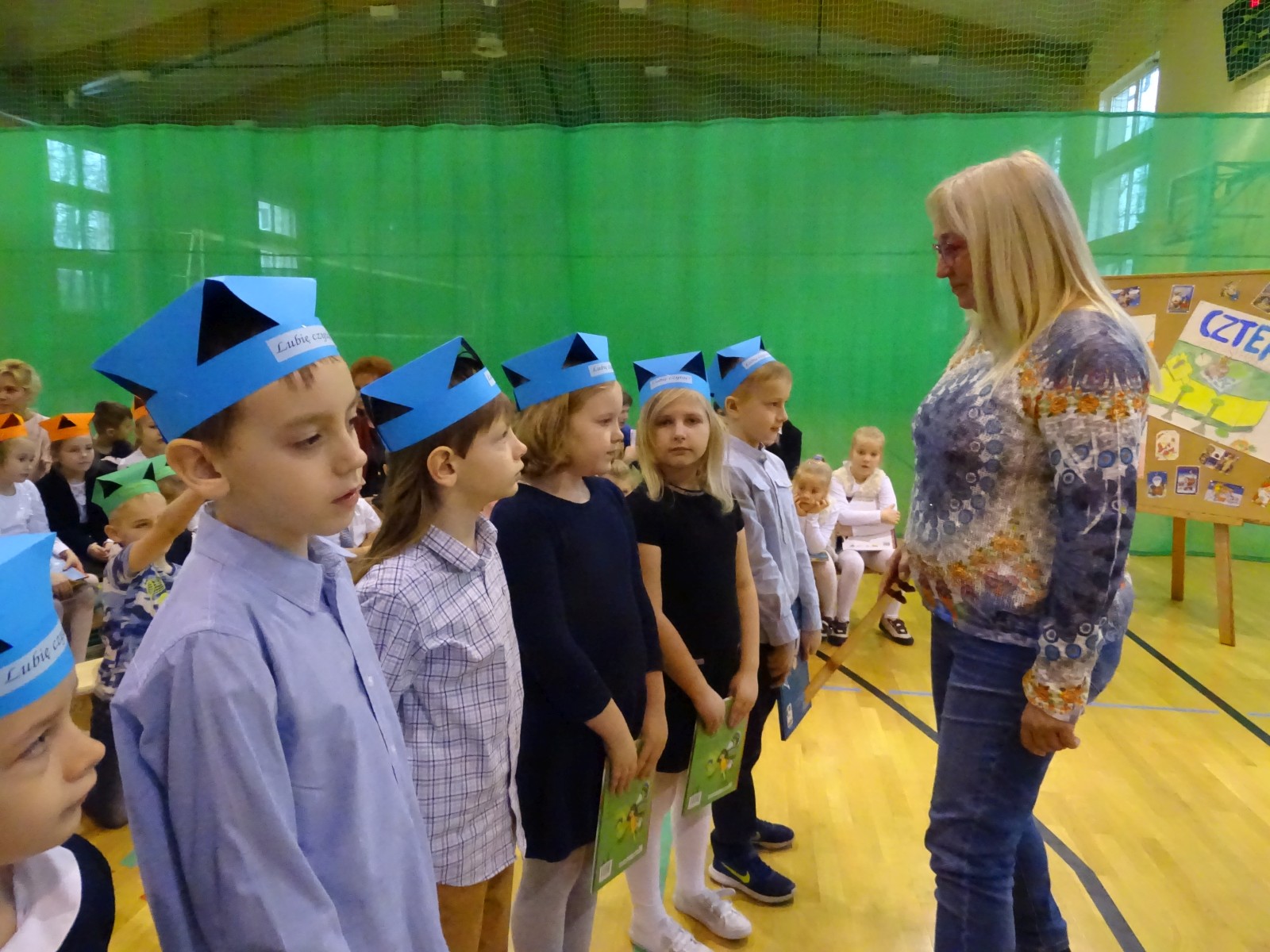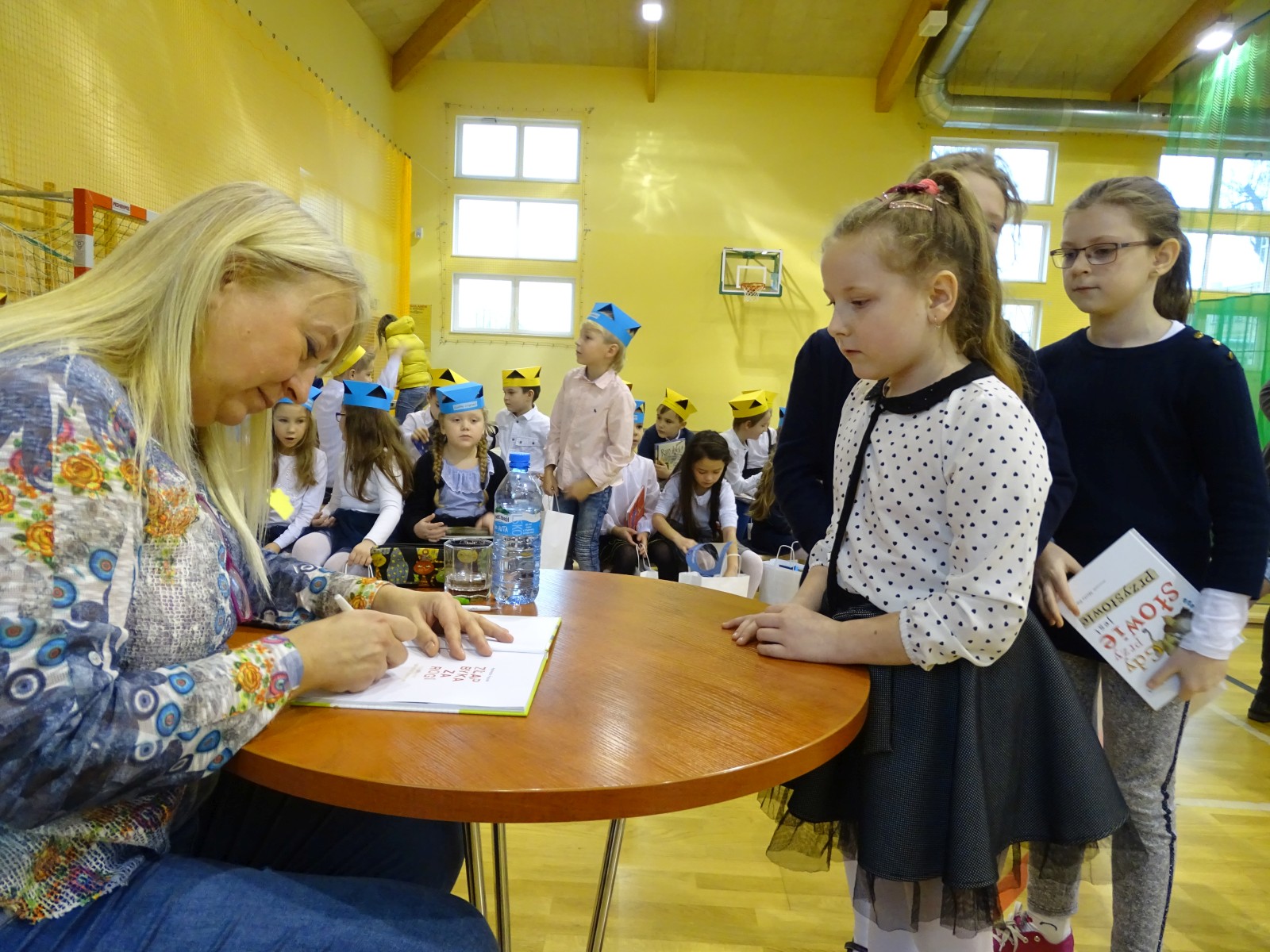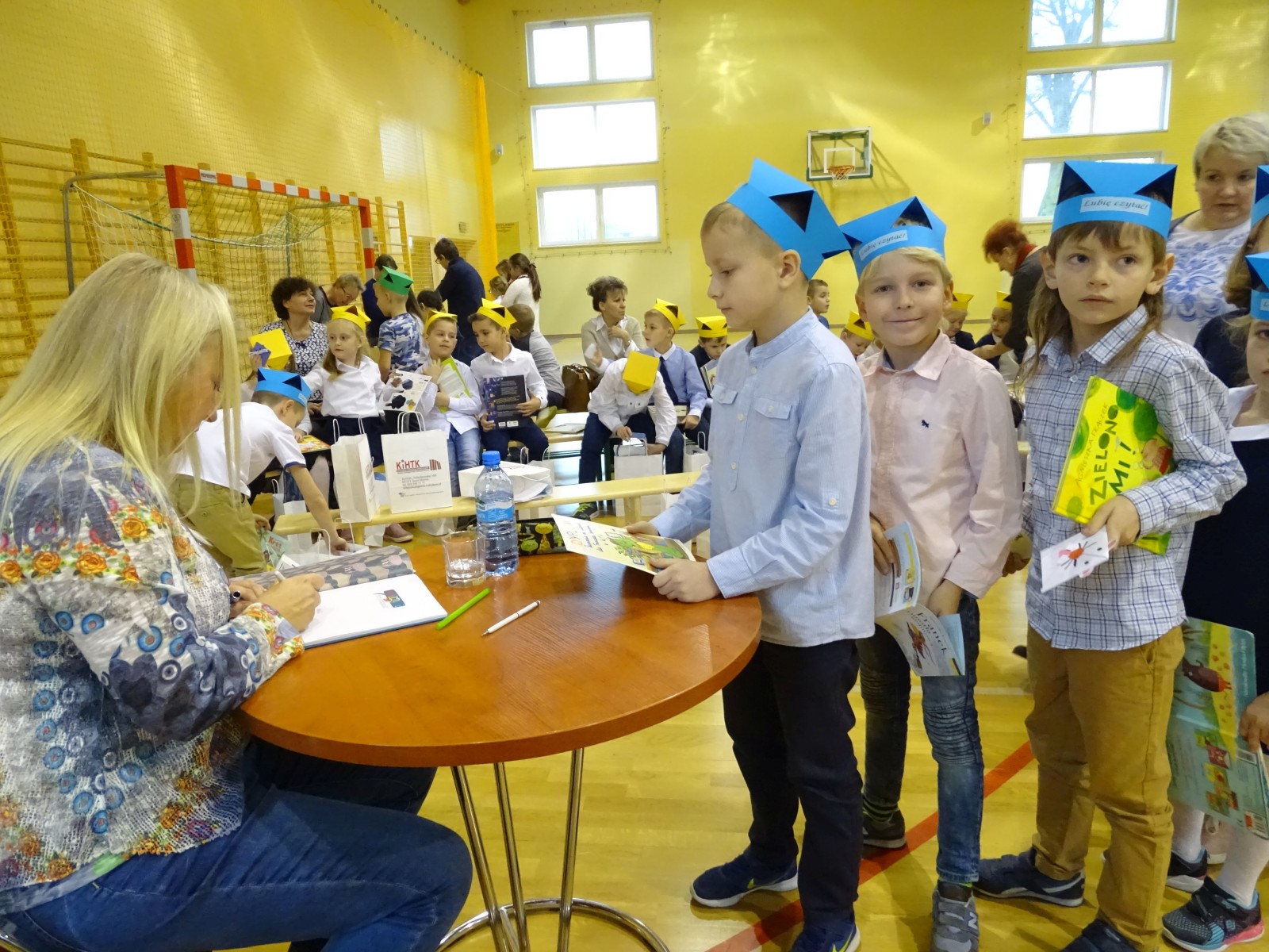 Pierwszaki złożyły uroczyste przyrzeczenie, a następnie zostały pasowane na czytelników przez pisarkę. W spotkaniu, poza pierwszoklasistami, uczestniczyli także uczniowie klas: 2a, 2b i 3e. Szczególnym przeżyciem dla Brunona Grabary z kl. 1d oraz Zuzi Podgórskiej z kl. 2a, było wystąpienie przed publicznością z recytacją wierszy pisarki. Wszyscy oni z niecierpliwością oczekiwali na moment, kiedy będą mogli podejść do p. Agnieszki, by otrzymać od niej osobistą dedykację.