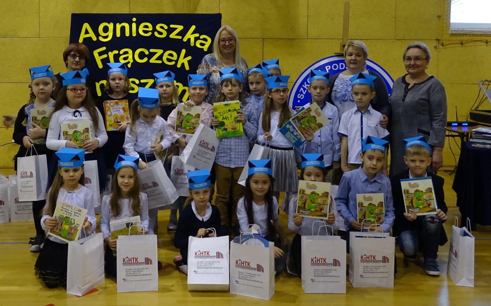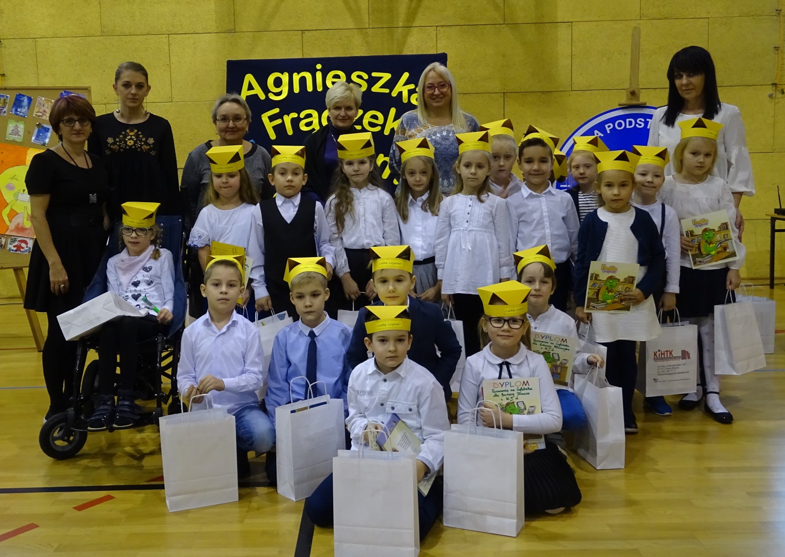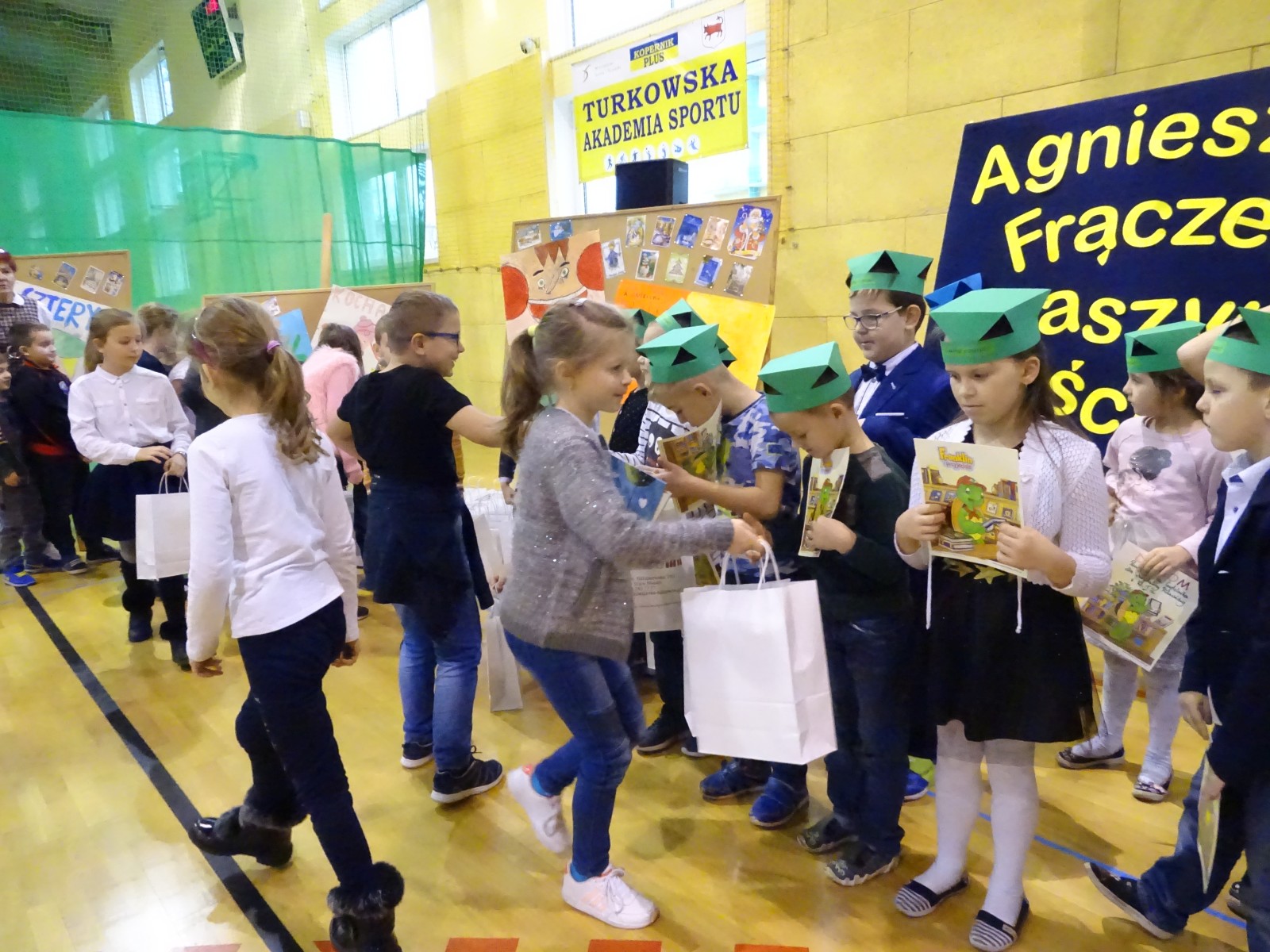 Uczniowie klas pierwszych Szkoły Podstawowej nr 1 w Turku 15 grudnia 2017 r. zostali uroczyście przyjęci do grona czytelników biblioteki szkolnej. Od kilku lat biblioteka szkolna z tej okazji zaprasza znanych i lubianych autorów książek dla dzieci. Tym razem szkoła gościła p. Agnieszkę Frączek, pisarkę i językoznawcę, dla której wielką frajdą jest zabawa słowem. Pani Agnieszka wydała około 80 książek, w których bawi, uczy i wzrusza czytelników. Jej książki są chętnie czytane nie tylko przez najmłodszych, ale znajdują sympatyków także wśród dorosłych. Podczas spotkania zachęcała dzieci do czytania książek, opowiadała o tym, skąd czerpie pomysły do swoich książek.