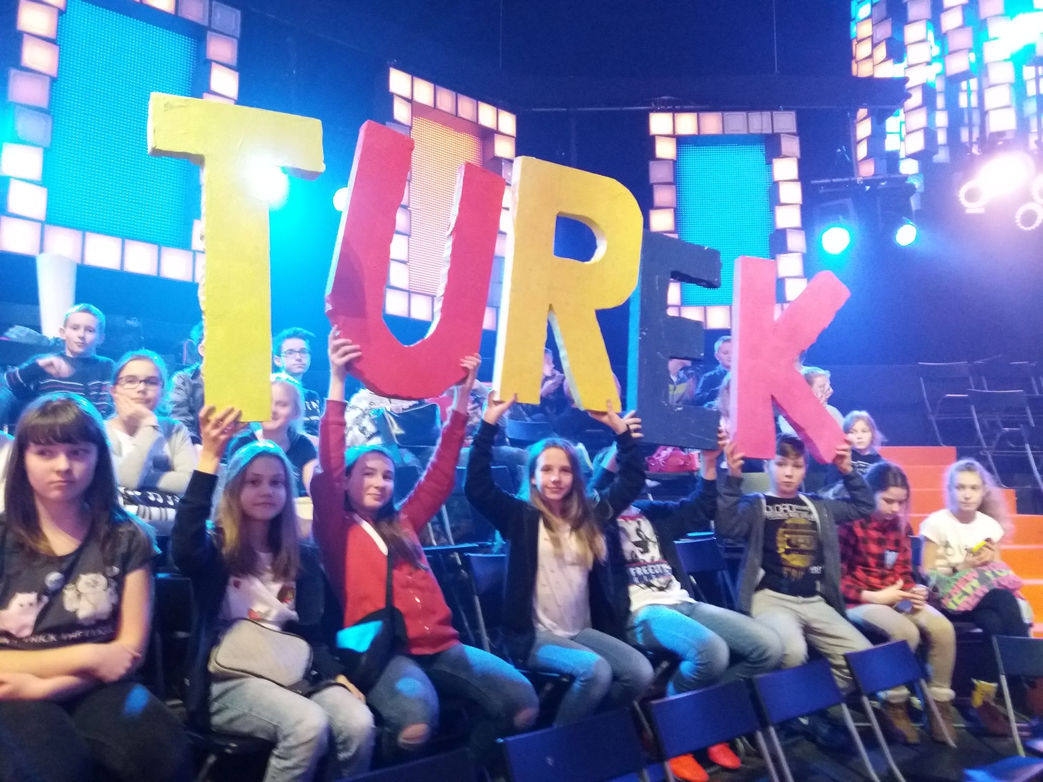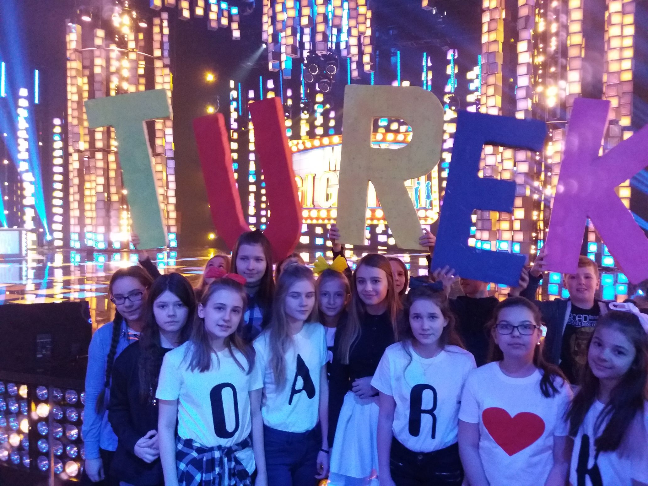 Jesteśmy uczniami jednej z klas siódmych Szkoły Podstawowej nr 1 w Turku. Przez wiele lat większość dzieci z naszej klasy - jako klasa artystyczna - rozwijała swoje pasje, występując w szkolnym teatrach Szpilka Mini i Szpilka. Prezentowaliśmy spektakle teatralne na terenie szkoły, miasta, na konkursach ogólnopolskich, odnosząc sukcesy. Niektórzy z nas mają zainteresowania muzyczne, uczęszczają na zajęcia do Państwowej Szkoły Muzycznej im. Witolda Lutosławskiego w Turku. Gramy na instrumentach muzycznych i regularnie uczestniczymy w dodatkowych lekcjach chóru. Nasi koledzy, Oskar Brzostowski i Jakub Świderski od najmłodszych lat występują na scenie, śpiewając piosenki. W ubiegłym roku szkolnym Oskar wraz ze swoimi rodzicami pojechał do Warszawy na casting i zakwalifikował się do programu Mali Giganci. Kiedy dowiedzieliśmy się o tym, wielka radość zapanowała wśród uczniów naszej klasy. Na przygotowanie do pierwszego występu kolega miał jeden miesiąc. W pracy wspierała go Monika Malec. Pomagała ona wszystkim uczestnikom tego programu. Oskar zaśpiewał piosenkę Bruno Marsa When I was your man. Po występie poinformował nas o udziale w kolejnym etapie. Cieszyliśmy się ogromnie i postanowiliśmy uczestniczyć jako widownia w jego dalszych występach.