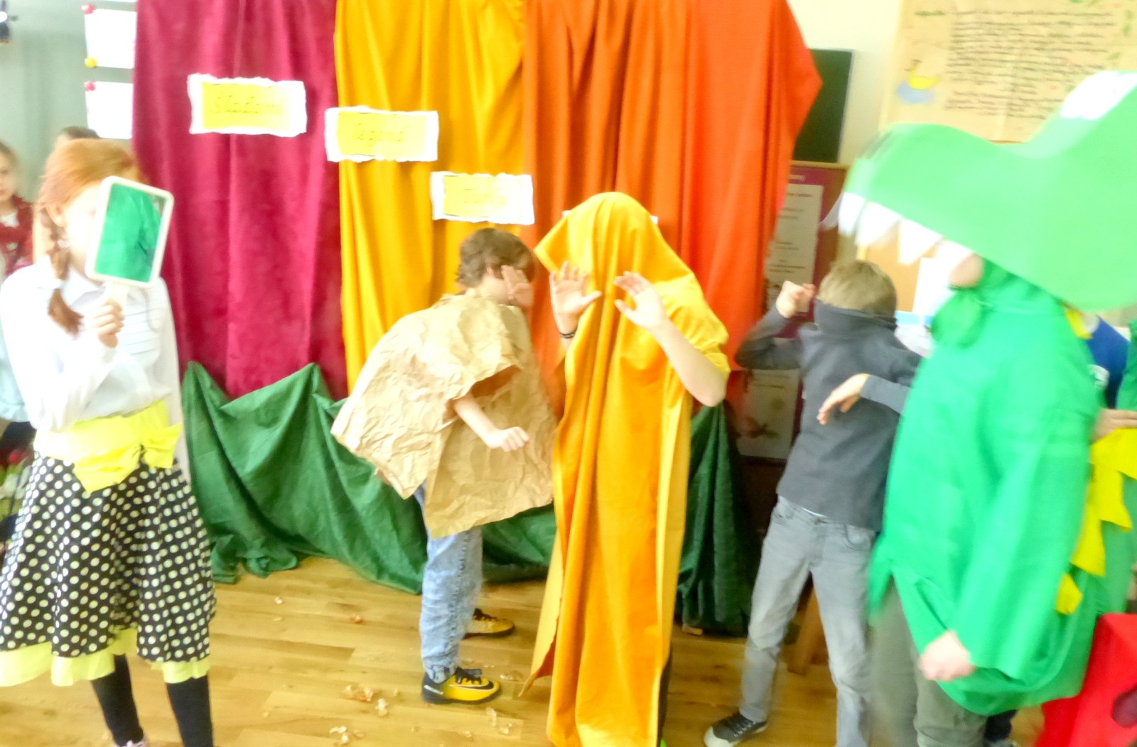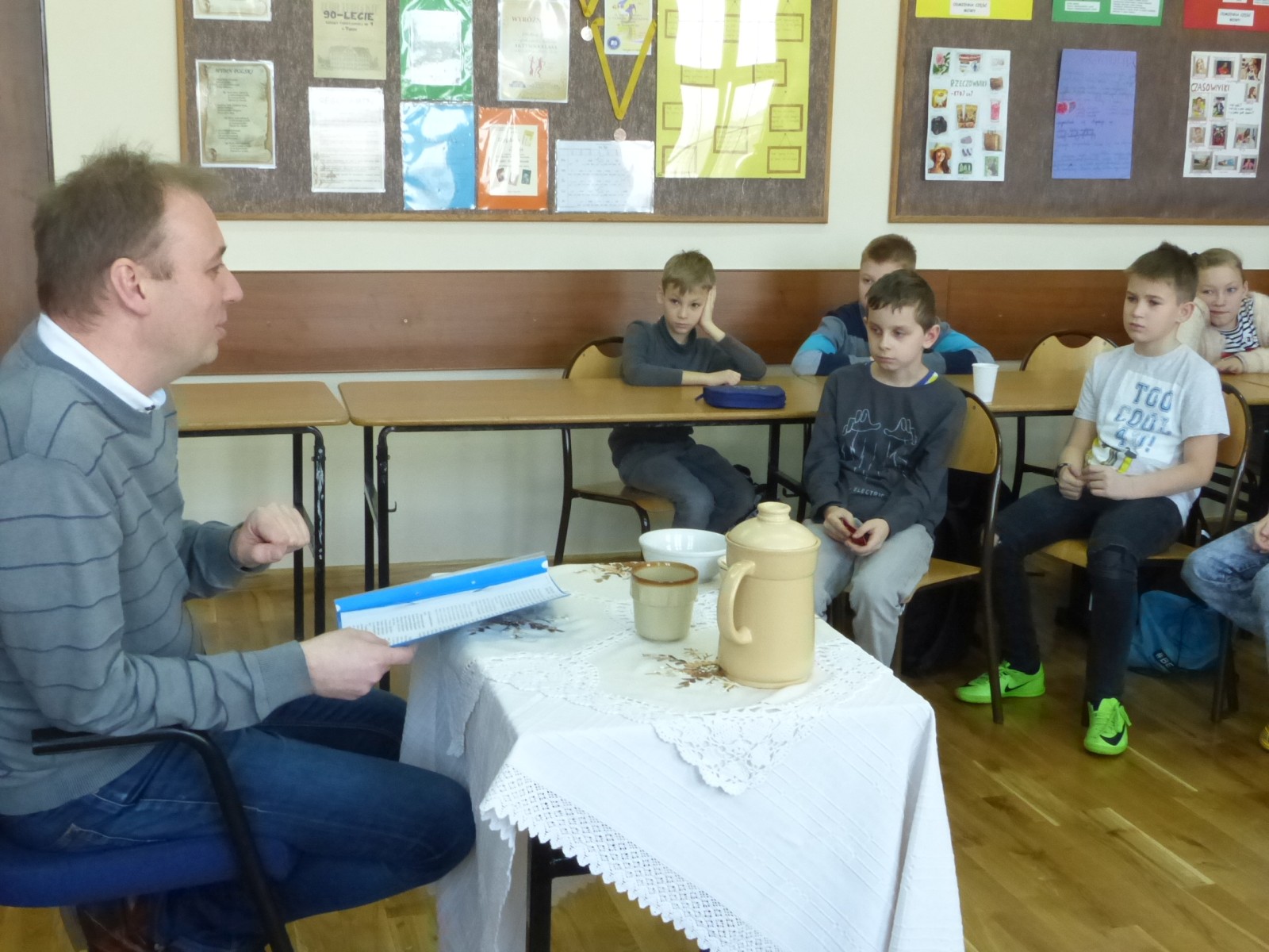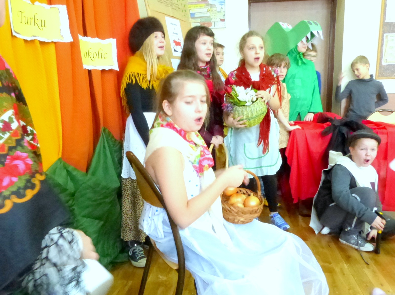 Dnia 7 lutego w kl. 4d odbyła się lekcja języka polskiego na temat „Śladami legend Turku i okolic”. Na lekcję przybył pan Bartosz Stachowiak, dyrektor Muzeum im. Józefa Mehoffera w Turku. Najpierw uczniowie przekonali pana dyrektora, że doskonale znają różne polskie legendy. Dowodem na to było przedstawienie „Legendy o Bazyliszku”. Trafnie zgromadzone rekwizyty, doskonała gra aktorska oddały charakter życia mieszkańców dawnego Krakowa. Przedstawienie o strasznym Bazyliszku podziwiali pierwszoklasiści i pani Izabela Ochota, która dumnie patrzyła na swoich byłych wychowanków.