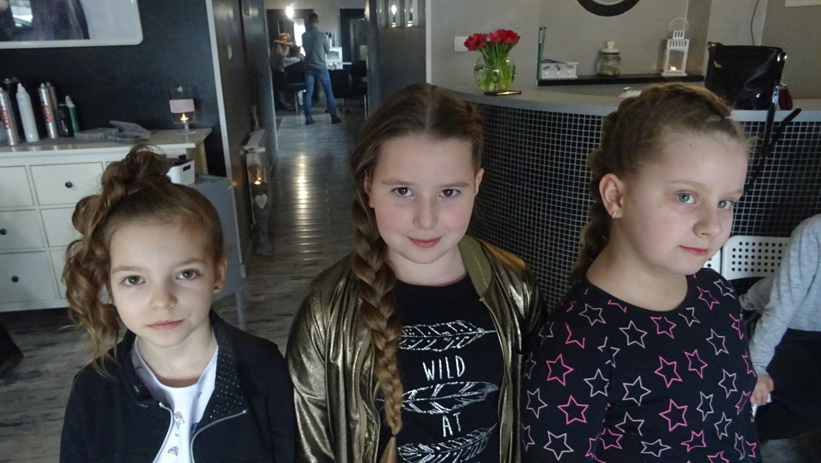 Wizytę w profesjonalnym salonie fryzjerskim i możliwość wybrania dowolnej fryzury. Taki prezent z okazji Dnia Kobiet, otrzymały od chłopców i rodziców dziewczynki z klasy 2c. Panie fryzjerki wykonały fryzury także chłopcom. Wszystko według życzeń młodych klientów. Pobyt w salonie umilił dzieciom słodki poczęstunek przygotowany przez właścicielkę.