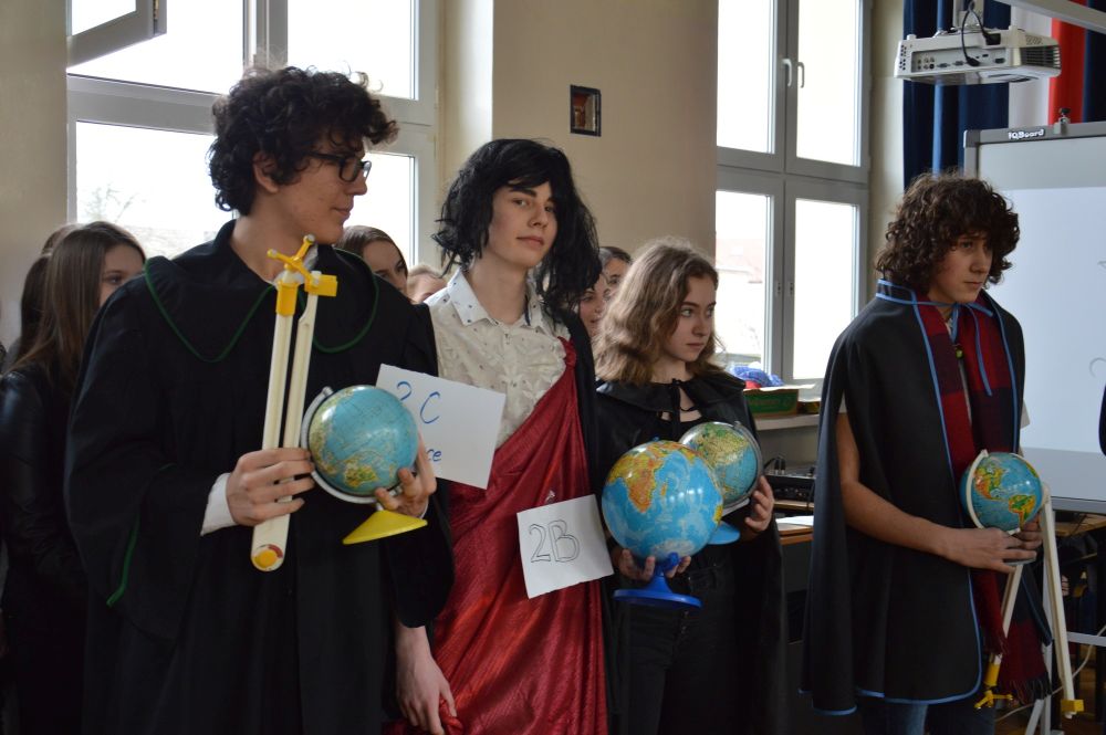 W tym roku świętowanie zaczęliśmy już tydzień temu od „Nocy z duchem Kopernika”. Kolejne dni upływały pod znakiem rywalizacji między klasami o miano tej, która najlepiej zna postać Mikołaja Kopernika i jego największe osiągnięcia. Na pierwszy ogień poszli młodzi literaci, którzy musieli wykazać się umiejętnościami poetyckimi w konkursie pt. „Wstrzymał Słońce, ruszył Ziemię, młodym twórcom dał natchnienie”. Kolejne zadanie wymagało znajomości faktów z życia uczonego, gdyż nie kto inny, lecz sam Kopernik przemierzał korytarze szkoły i zadawał klasom pytania. Uzdolnieni artystycznie uczniowie wykazali się natomiast wyobraźnią w konkursie na karykaturę wielkiego astronoma oraz w konkursie na wykonanie pojazdu kosmicznego z wykorzystaniem materiałów wtórnych. Ponadto uczniowie, niczym prawdziwy Master Chef, musieli wykazać się talentem kulinarnym i upiec pyszny piernik. Na sali gimnastycznej, w obecności licznie zebranych gości, odbył się uroczysty apel, podczas którego odbyła się ostatnia konkurencja – konkurs na sobowtóra Mikołaja Kopernika.