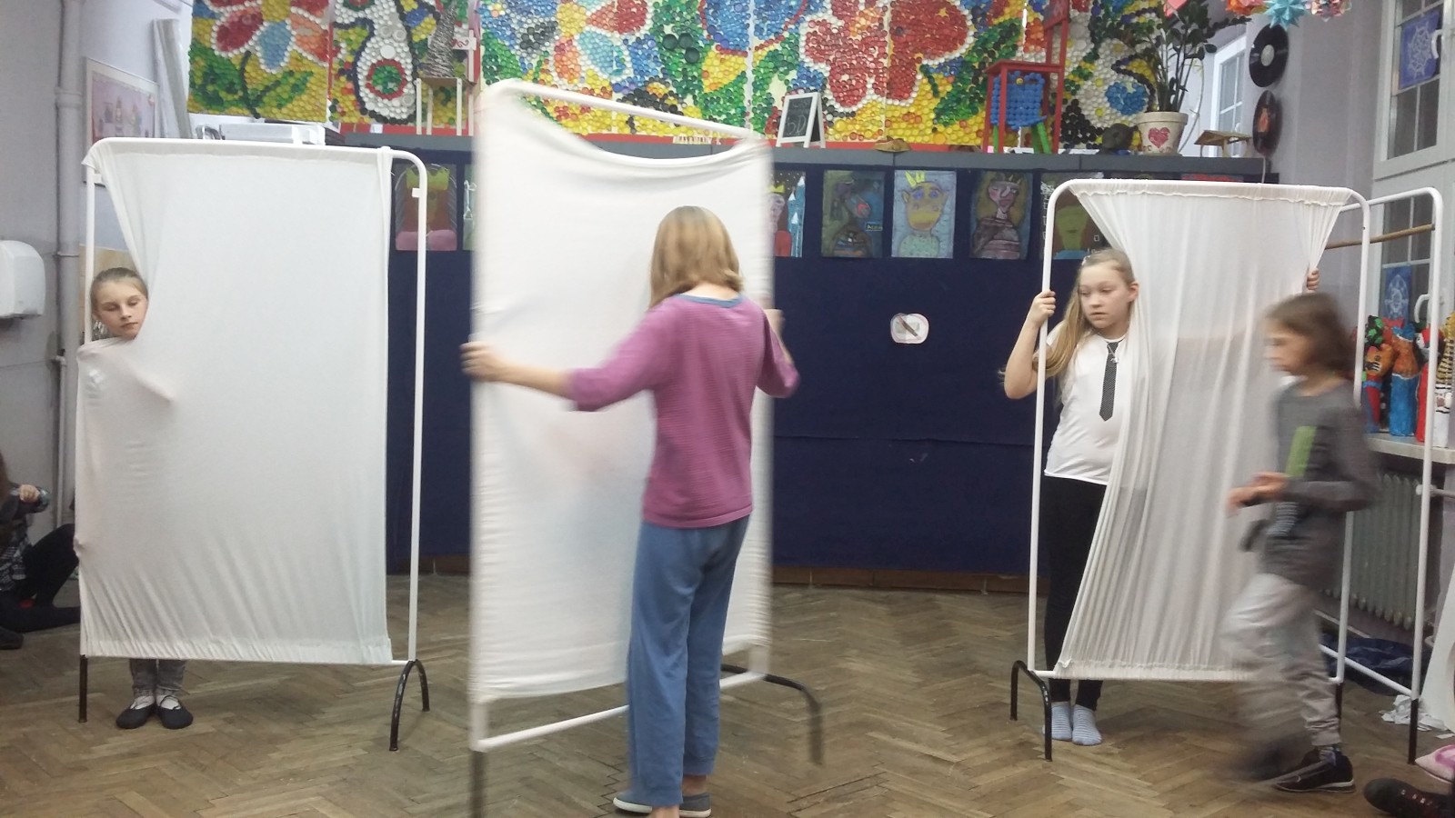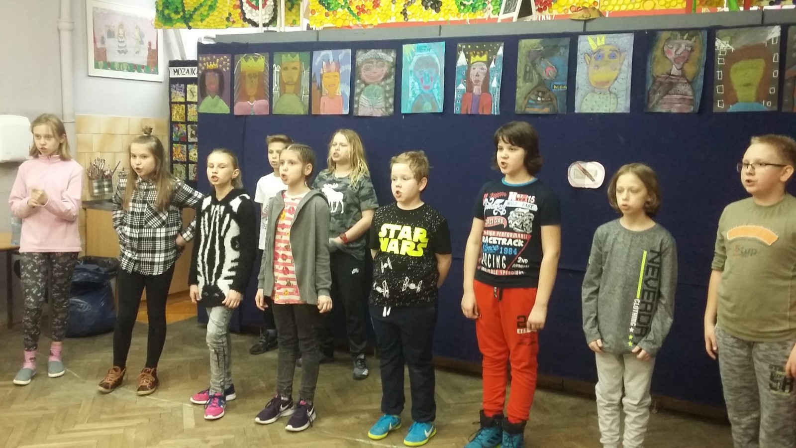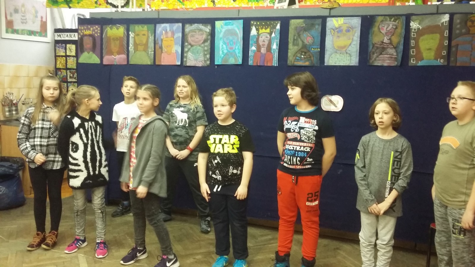 O godzinie 19:00 uczniowie zebrali się przed salą 305. Każdy miał plecak, zapakowany po brzegi jedzeniem, ubraniami i innymi potrzebnymi rzeczami. Ponieważ noc dzieci spędzały w murach szkoły, niezbędny był śpiwór, ciepły koc i poduszki. Na początku należało przygotować się do próby: rozłożyć rekwizyty i przebrać się w stroje teatralne. Następnie wszyscy ochoczo zabrali się do gry. Przez kilka godzin ćwiczyli poszczególne kwestie przedstawienia. Powtarzali najważniejsze i najtrudniejsze sceny oraz wymyślali nowe. W trakcie próby zrobili sobie krótką przerwę, podczas której zjedli pizzę. Po ciężkiej, ale bardzo satysfakcjonującej pracy udało się stworzyć widowisko, którego efekt widoczny będzie dopiero na prawdziwej scenie. Wtedy wszystko się okaże, zwłaszcza w konfrontacji z publicznością.
