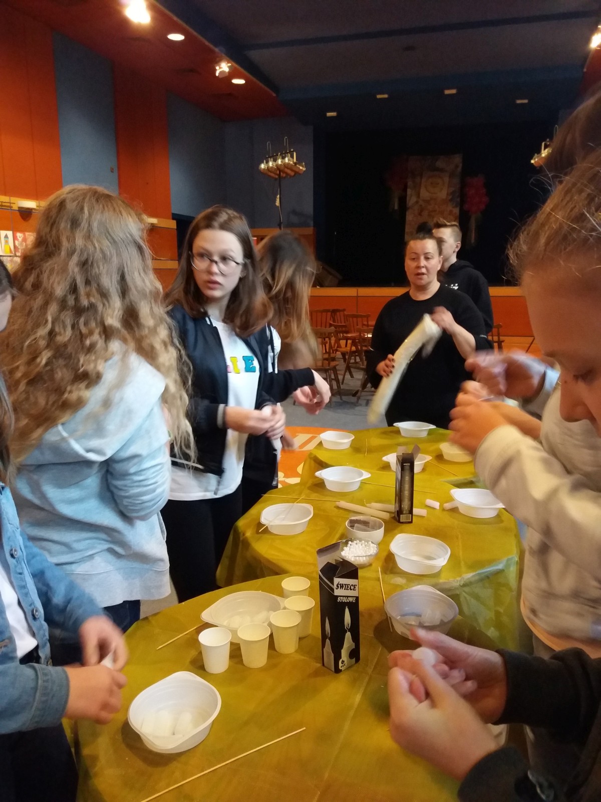 W czwartek 26 kwietnia klasa 6d z wychowawczynią Aldoną Piwońską uczestniczyła warsztatach "Pracowni eksperymentalnej", które poprowadziła Sylwia Przybylska. Na warsztatach uczniowie mieli możliwość poznania techniki wykonania świece zapachowych. Uczniowie naszej szkoły cyklicznie już od roku biorą udział w zajęciach tej „Pracowni ” w Miejskim Domu Kultury Turku.