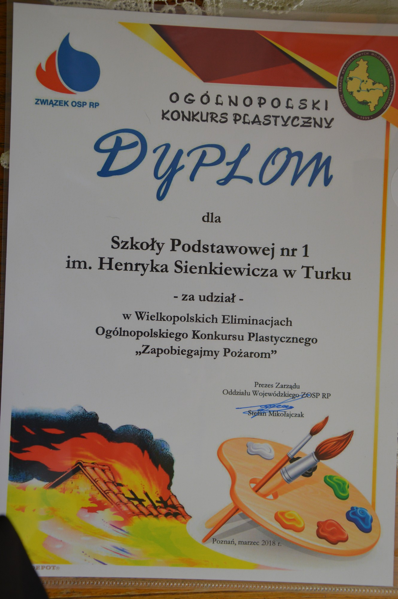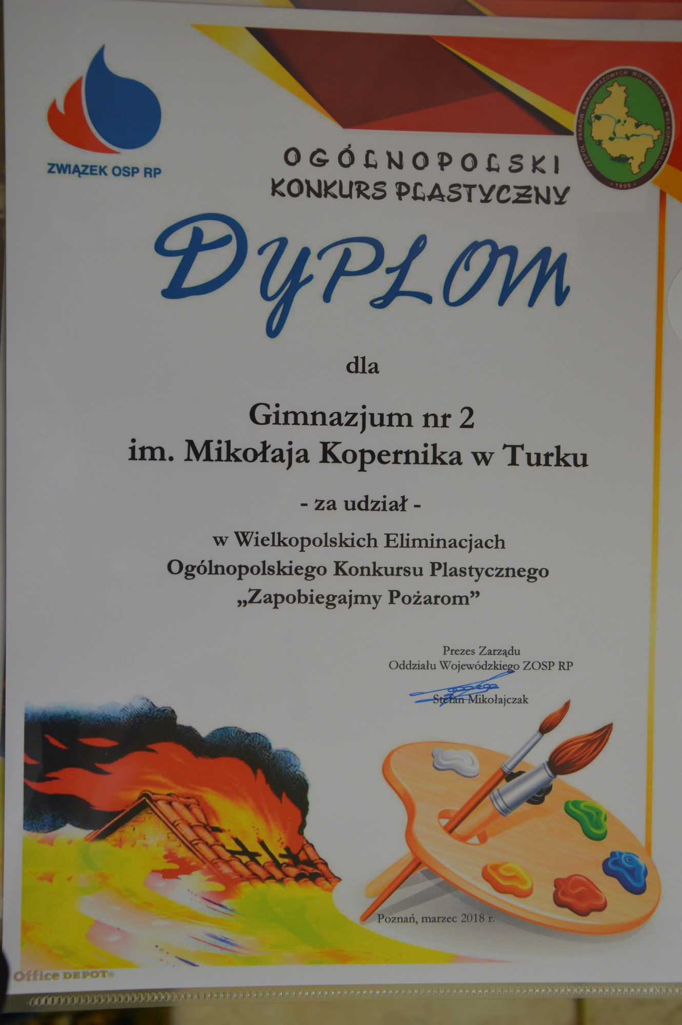 Jesteśmy dumni z sukcesu gimnazjalistek z budynku im. Mikołaja Kopernika SP1 w Turku. Wiktoria Stolarek i Sara Spychalska zdobyły tytuł laureata w Wielkopolskich Eliminacjach Ogólnopolskiego Konkursu Plastycznego „Zapobiegajmy pożarom”. Gratulujemy uczennicom i życzymy im wielu osiągnięć w twórczości plastycznej.