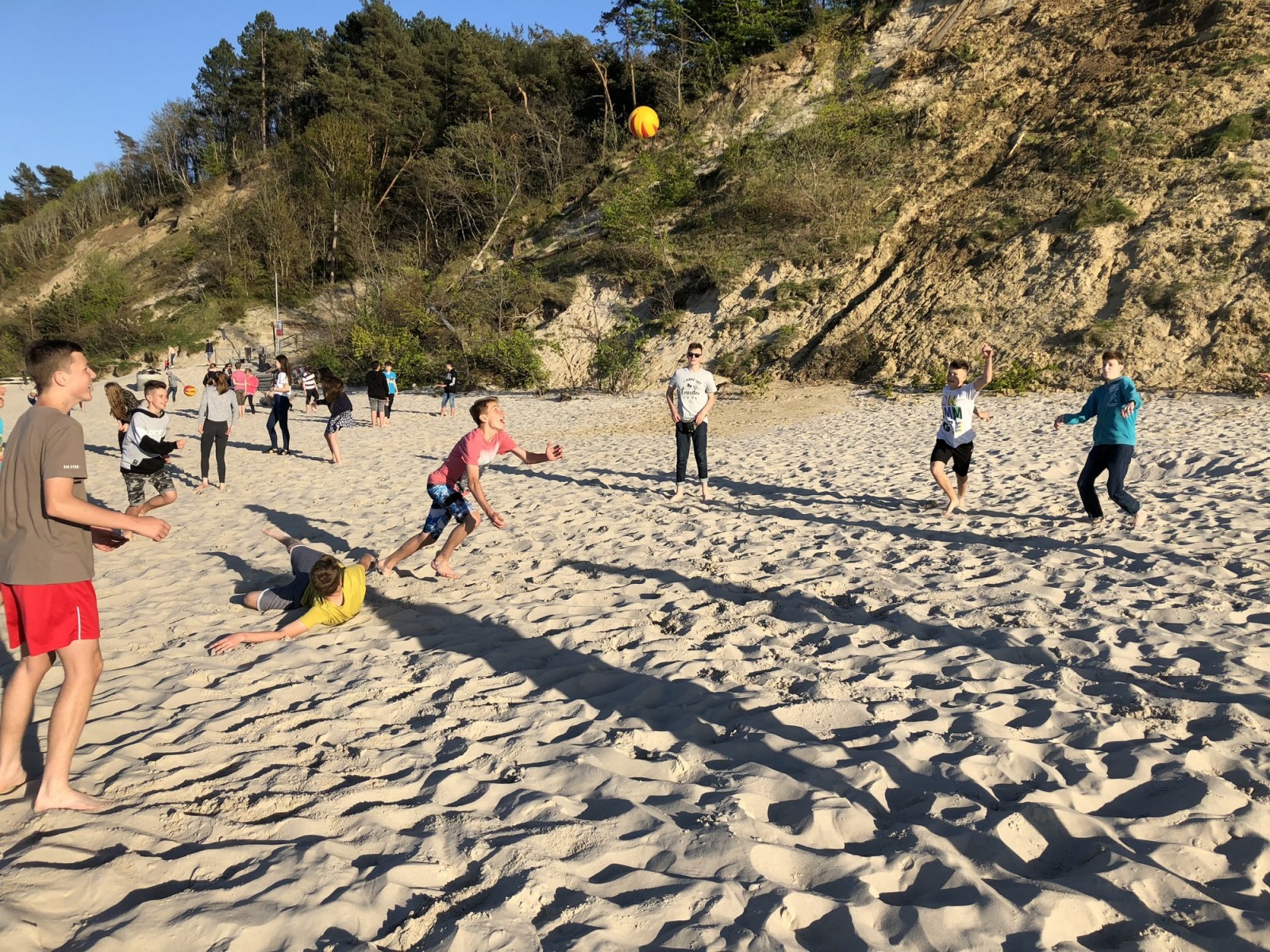 Tam wspólne granie w siatkówkę, frisbee oraz nieśmiałe sprawdzanie czy woda jest ciepła i mokra.