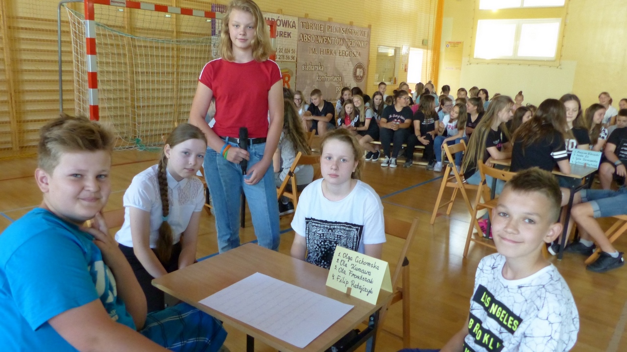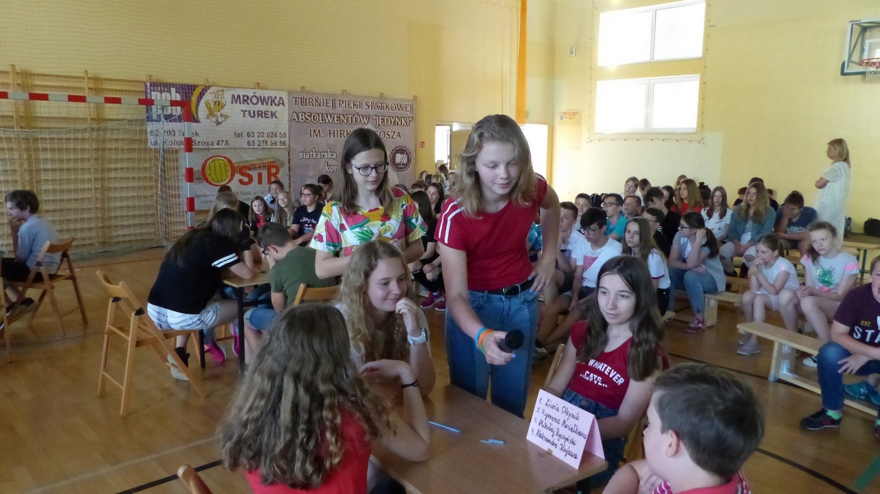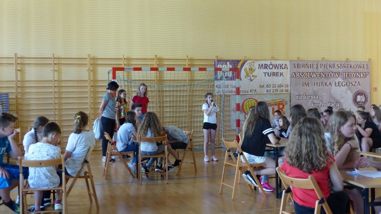 Kiedy drużyny rozwiązywały zadania, chętni uczniowie z widowni również mieli możliwość zaprezentowania swojej wiedzy językowej, wyjaśniając frazeologizmy i bawiąc się w kalambury. W tym czasie wszyscy wysłuchali recytacji wierszy w wykonaniu mistrzyń słowa: Mai Walas, Amelii Sobczyk, Pauli Biskup, Natalii Jurkiewicz i Nadii Przygońskiej. Po zakończeniu turnieju komisja sprawdziła prace i wyłoniła zwycięzców, którymi okazali się uczniowie z klasy 6b. Po wręczeniu dyplomów i rozdaniu nagród uczniowie zgodnie stwierdzili: “ Język, którym się posługujemy, świadczy o nas, o naszej kulturze, dlatego warto posługiwać się poprawną polszczyzną".