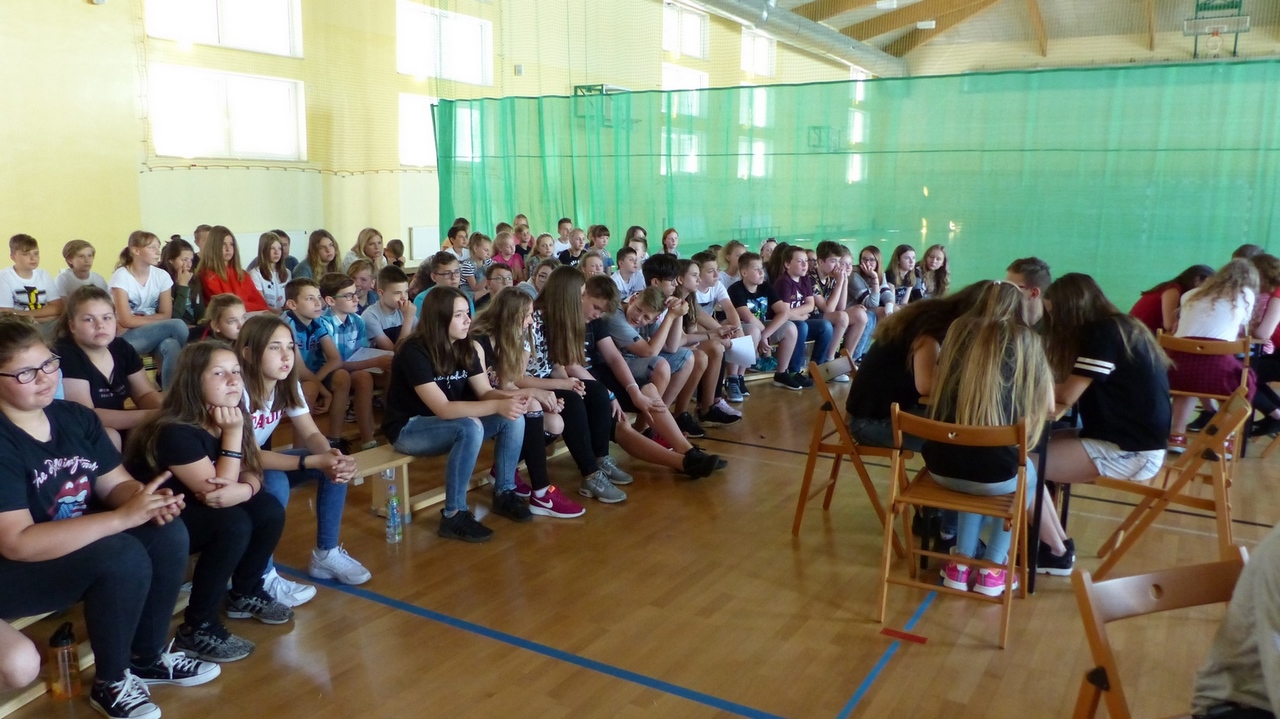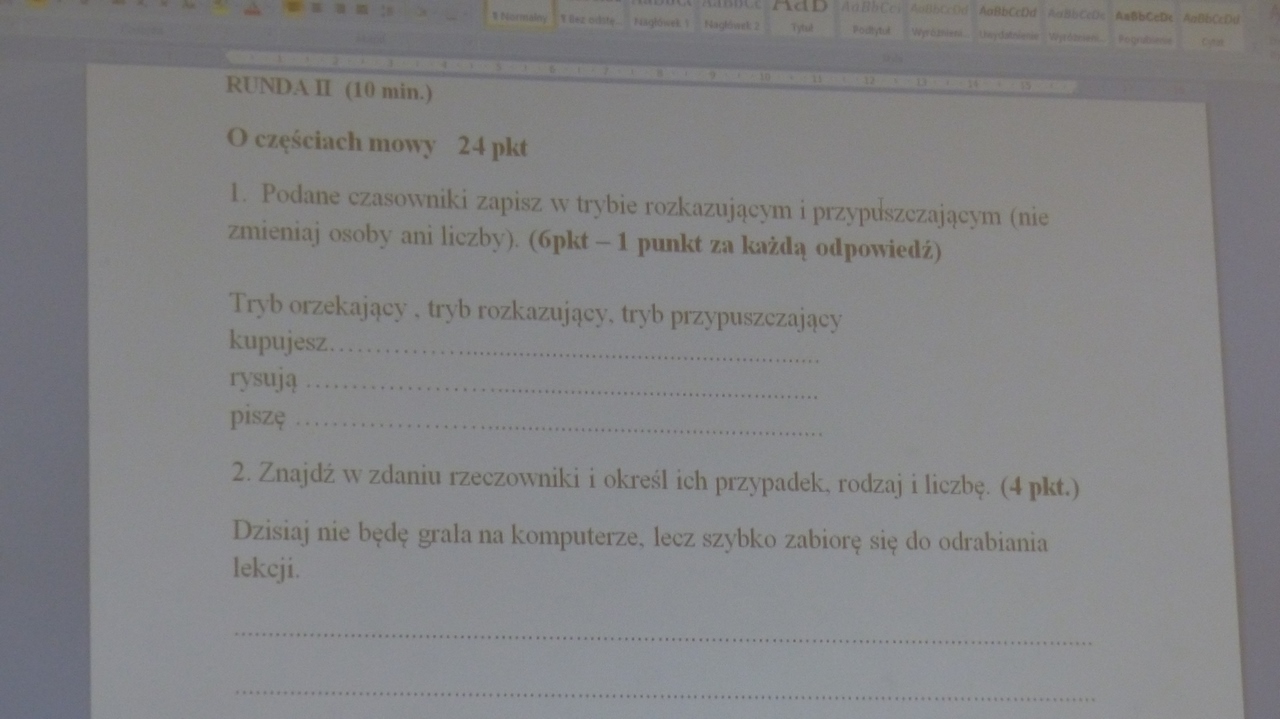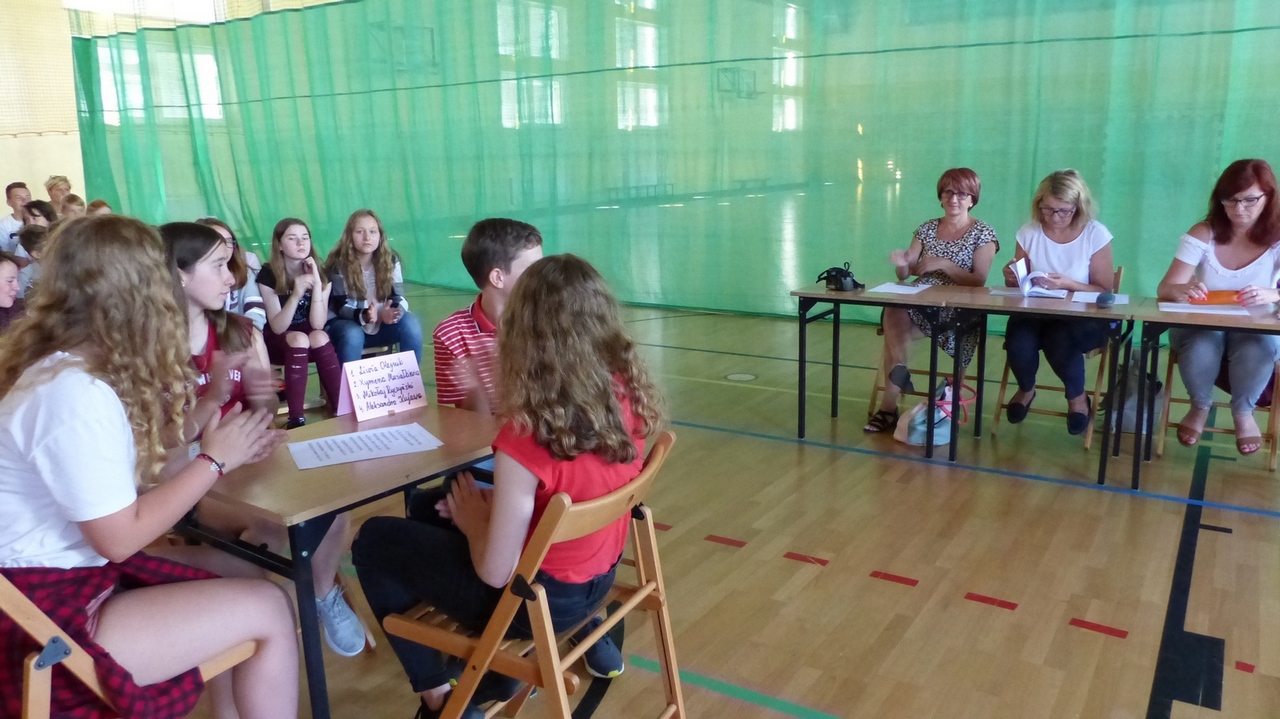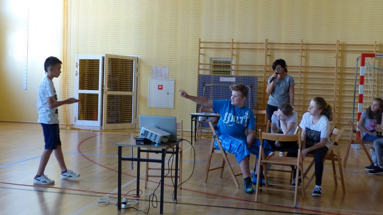 Kiedy drużyny rozwiązywały zadania, chętni uczniowie z widowni również mieli możliwość zaprezentowania swojej wiedzy językowej, wyjaśniając frazeologizmy i bawiąc się w kalambury. W tym czasie wszyscy wysłuchali recytacji wierszy w wykonaniu mistrzyń słowa: Mai Walas, Amelii Sobczyk, Pauli Biskup, Natalii Jurkiewicz i Nadii Przygońskiej. Po zakończeniu turnieju komisja sprawdziła prace i wyłoniła zwycięzców, którymi okazali się uczniowie z klasy 6b. Po wręczeniu dyplomów i rozdaniu nagród uczniowie zgodnie stwierdzili: “ Język, którym się posługujemy, świadczy o nas, o naszej kulturze, dlatego warto posługiwać się poprawną polszczyzną".