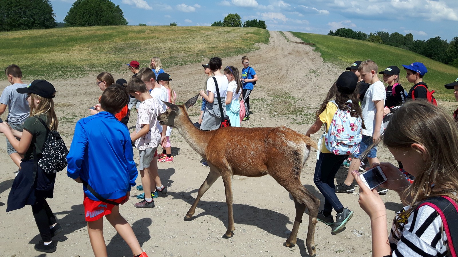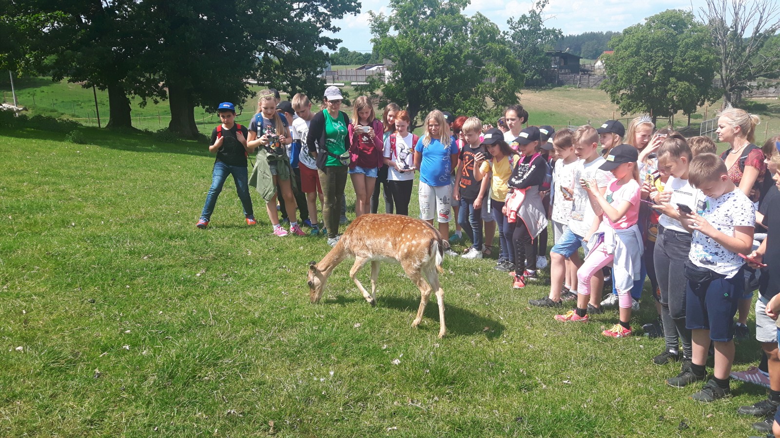 Także sporo radości dostarczył pobyt na Fermie Jeleniowatych w Kosewie Górnym. Tu spacerowali wśród oswojonych jeleni pasących się na pięknie położonych pastwiskach nad jeziorem Kuc, a w muzeum Stacji Badawczej dowiedzieli się wielu ciekawostek o tych niezwykłych zwierzętach.