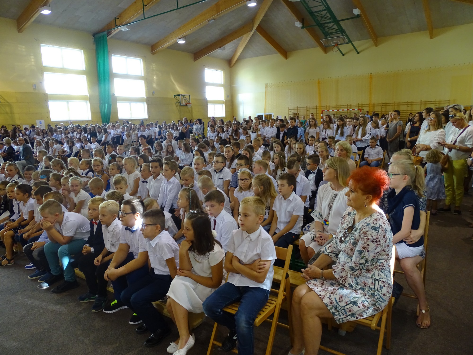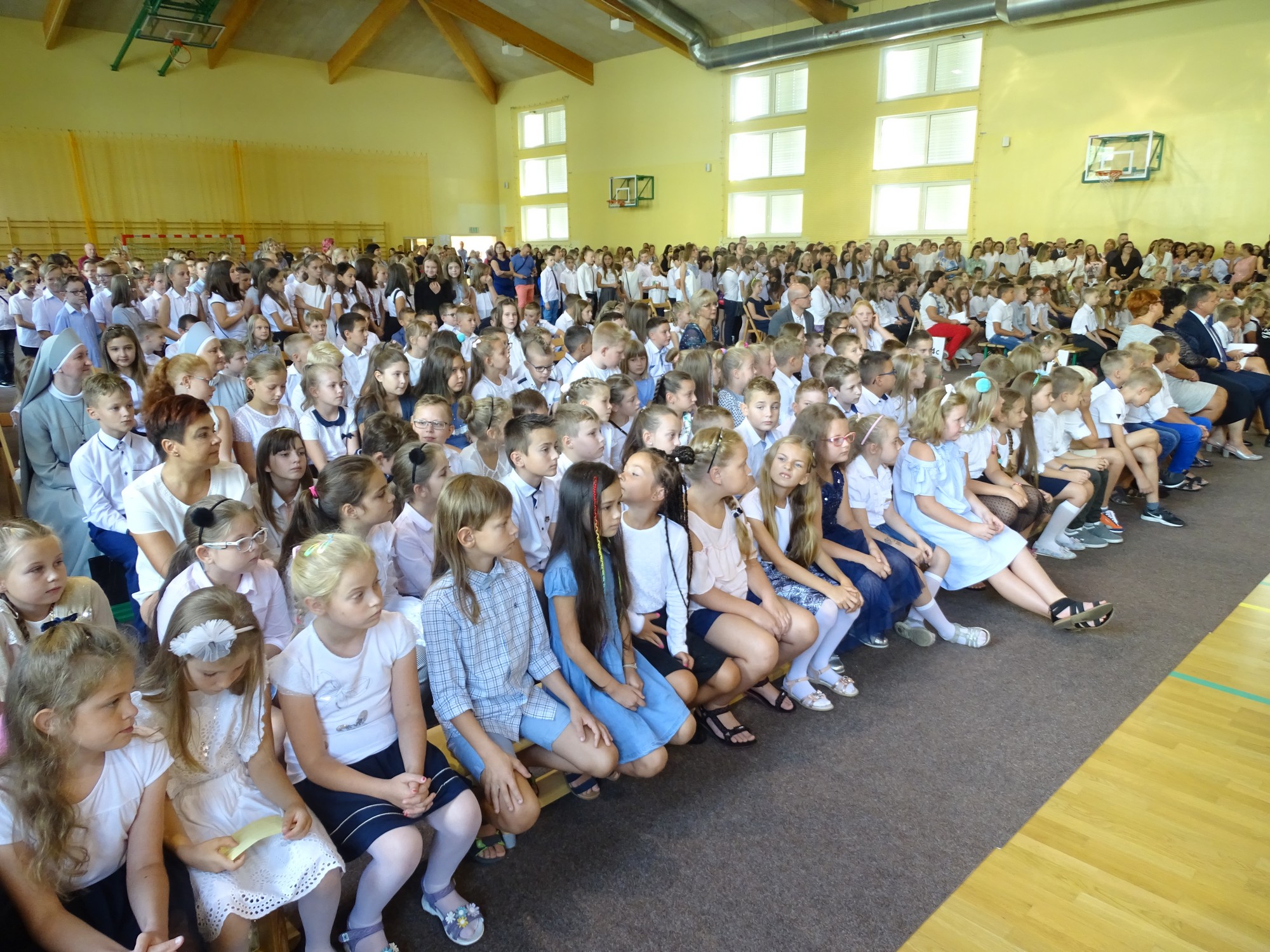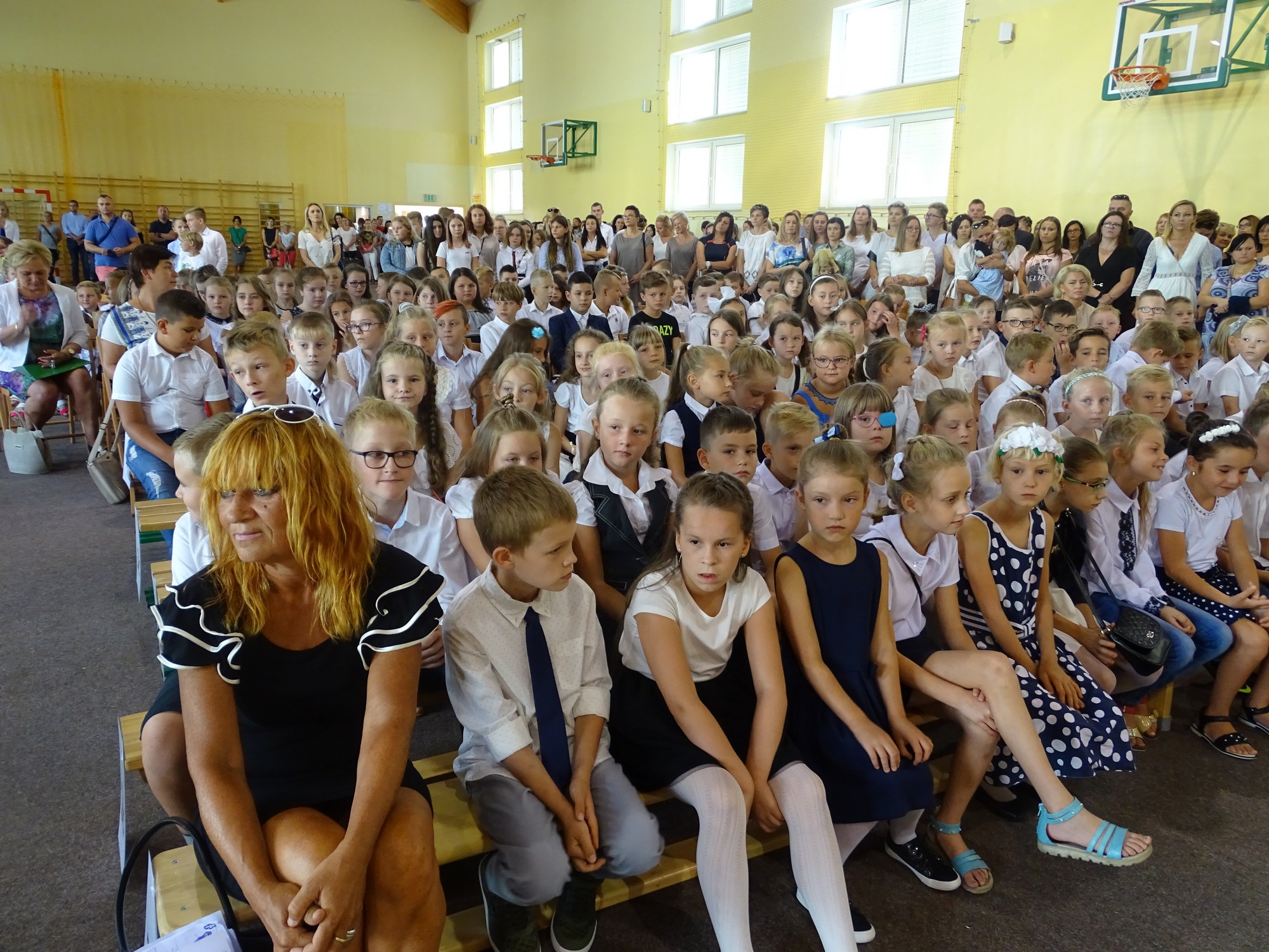 Podczas swojego wystąpienia dyrektor szkoły p. Elżbieta Pokojowa, życzyła wszystkim uczniom wielu sukcesów w nowym roku szkolnym. Szczególnie ciepło zostali powitani najmłodsi uczniowie, którzy rozpoczęli swoją edukacyjną przygodę. Wicedyrektor szkoły przedstawiła pierwszoklasistom i ich rodzicom wychowawców klas. Nie mogło też zabraknąć pierwszego wspólnego pamiątkowego zdjęcia.