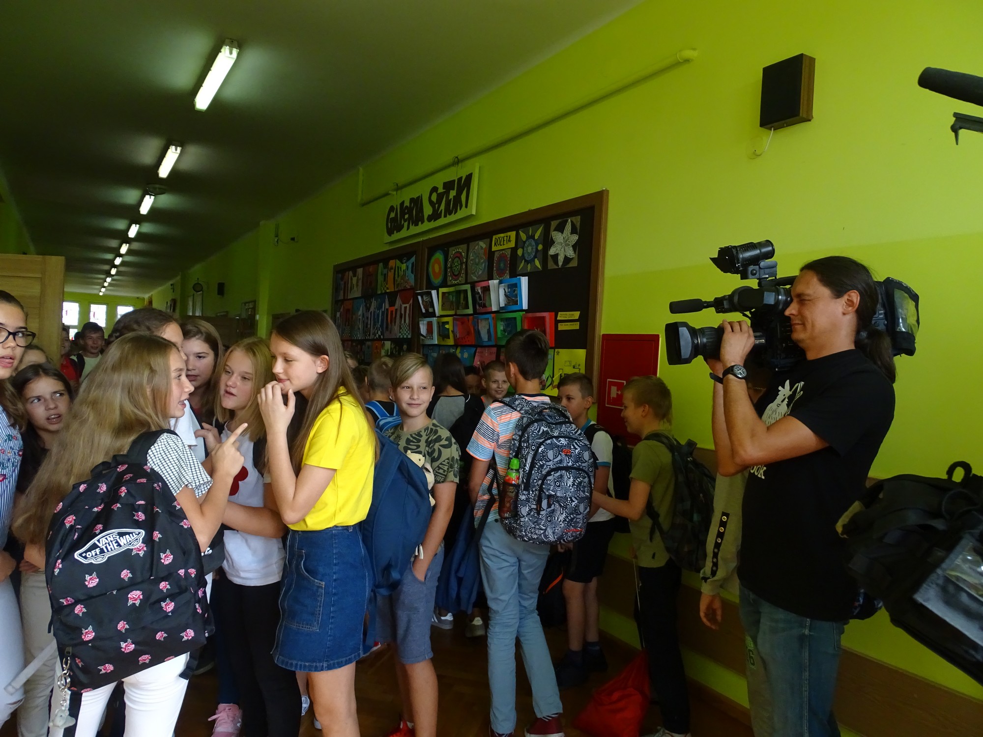 W czwartek, 13 września do naszej szkoły zawitała ekipa TVN. Bohaterką nagrania była Paula Biskup oraz jej klasa. Nagrany materiał zostanie wyemitowany w najbliższą sobotę w programie Dzień Dobry TVN.