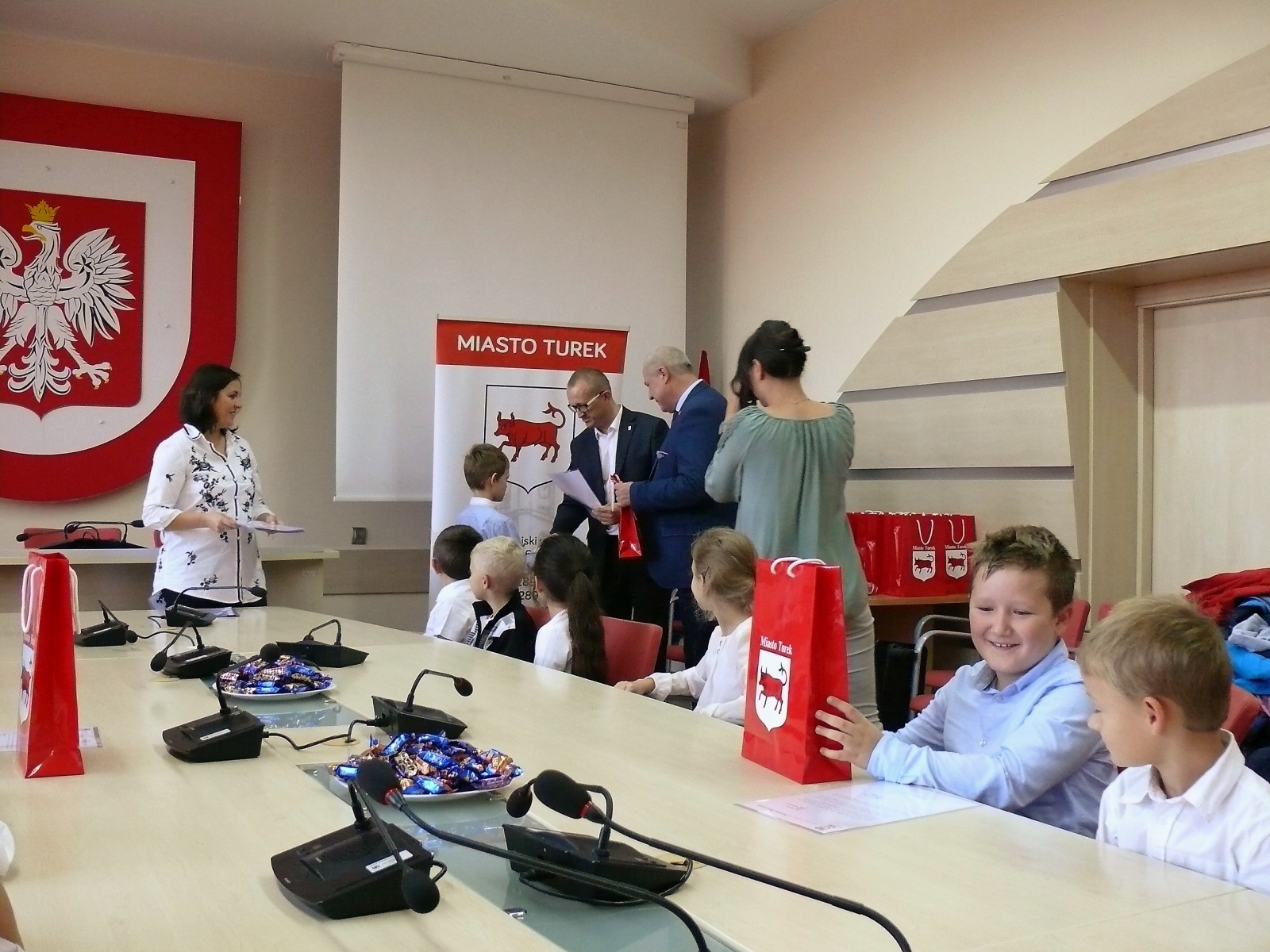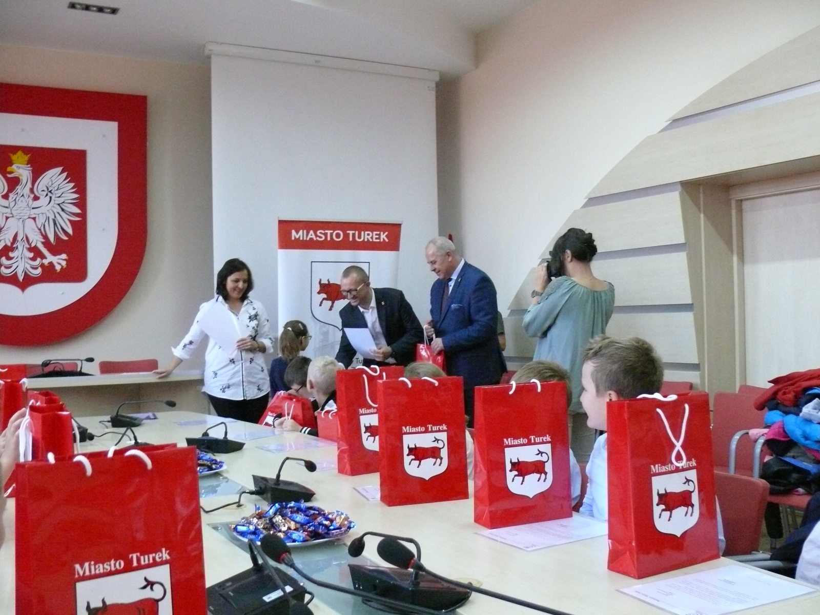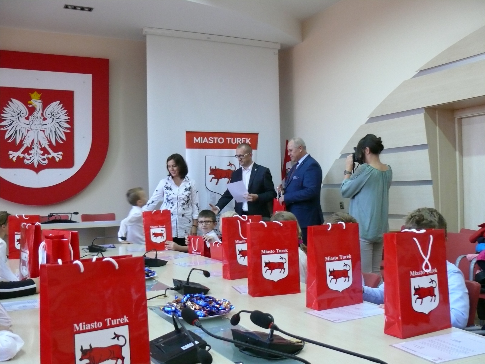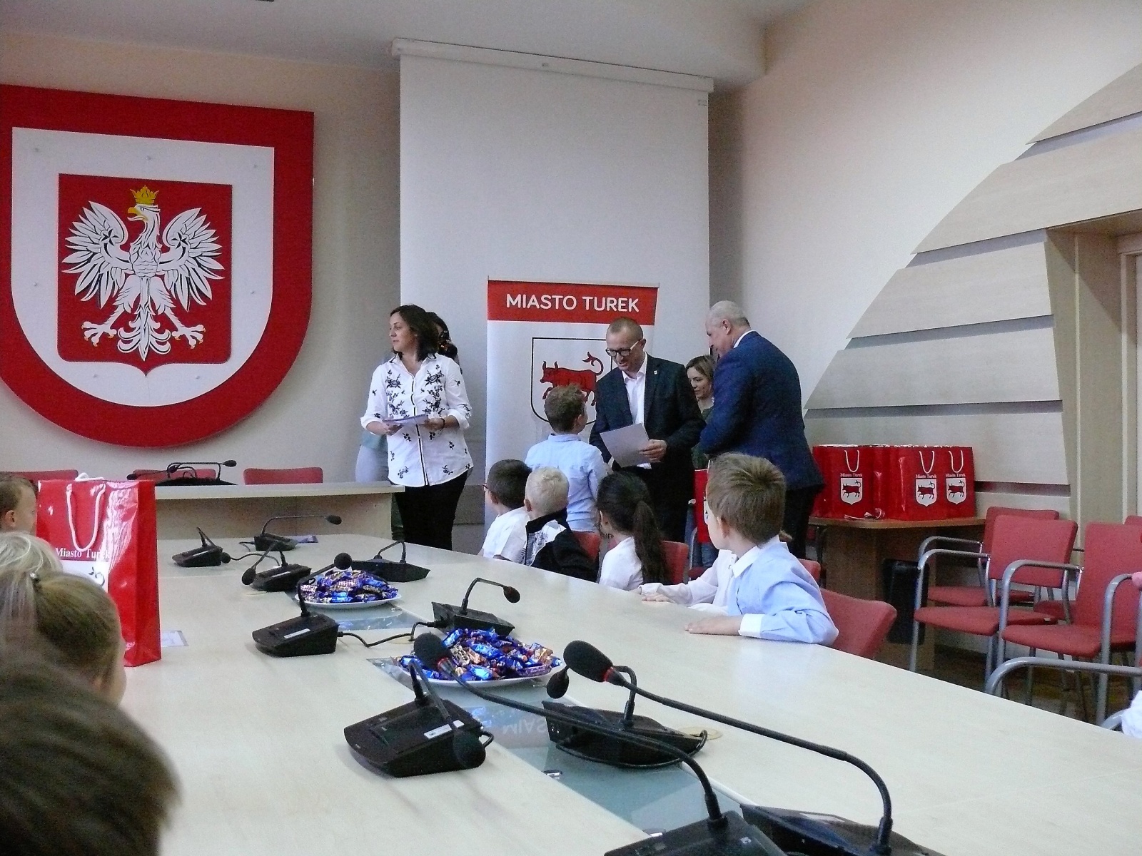 Podczas wizyty w UM włodarze miasta uhonorowali laureatów, wręczając im pamiątkowe dyplomy i upominki. Dzieci były bardzo przejęte wizytą i dumne z osiągniętego sukcesu.