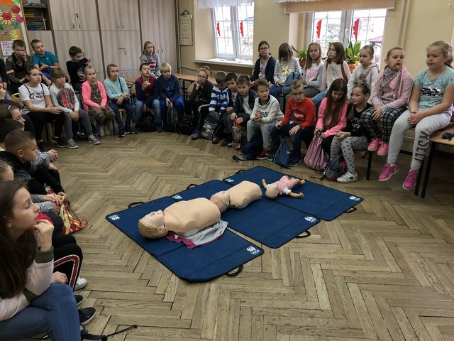 Uczniowie zapoznali się z materiałami edukacyjnymi, dotyczącymi zasad udzielania pierwszej pomocy, filmami instruktażowymi, w których prezentowane były pożądane zachowania w przypadku: ataku padaczki, zakrztuszenia, rany z ciałem obcym i w wielu innych sytuacjach, w których wymagane są rozważne działania.