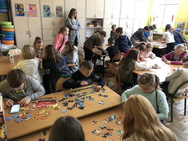 Uczniowie klas I-IV wzięli udział w interakcyjnym przedstawieniu teatralnym pt. „Magiczne drzwi”. Podczas przedstawienia poruszono takie zagadnienia jak: stawianie granic, łamanie reguł, asertywność, Internet, dopalacze, adrenalina, mocne przeżycia, bezpieczeństwo w domu i na ulicy. W sztuce uczestniczyli uczniowie, którzy wspólnie z bohaterami opowieści starali się znaleźć odpowiedzi na najważniejsze problemy.
