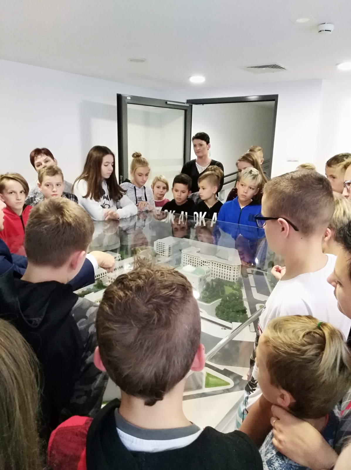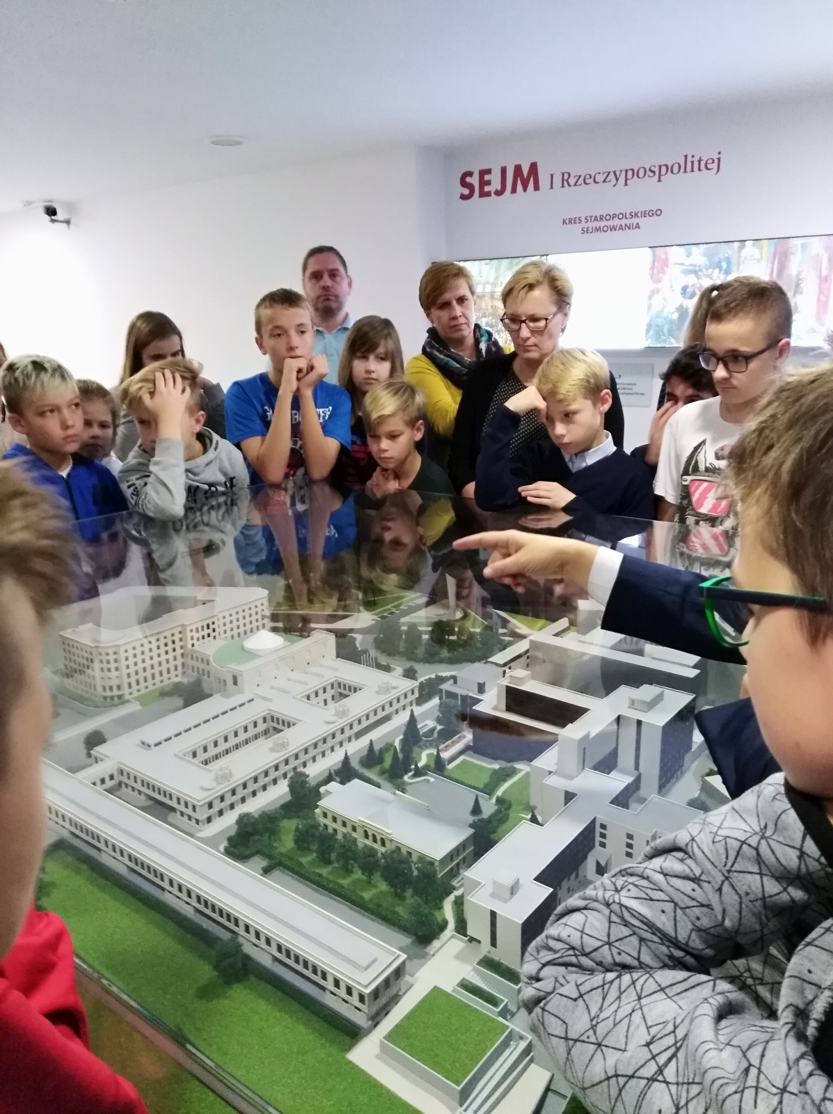 Zwiedzanie rozpoczęło się wykładem przewodnika na temat historii polskiego parlamentaryzmu. Następnie uczestnicy wycieczki zwiedzali budynek Sejmu Rzeczypospolitej Polskiej. Przewodnik wspólnie z Posłem oprowadzali uczniów po galerii Sali Posiedzeń Sejmu, holu głównym, gdzie znajduje się tablica upamiętniająca posłów II Rzeczypospolitej, którzy zginęli w czasie II wojny światowej oraz tablica upamiętniająca parlamentarzystów, którzy zginęli w katastrofie lotniczej pod Smoleńskiem. Uczniowie zadawali wiele pytań dotyczących Sejmu, byli ciekawi, jak wygląda praca Posła. Zwiedzanie Sejmu uwiecznione zostało na wspólnym zdjęciu