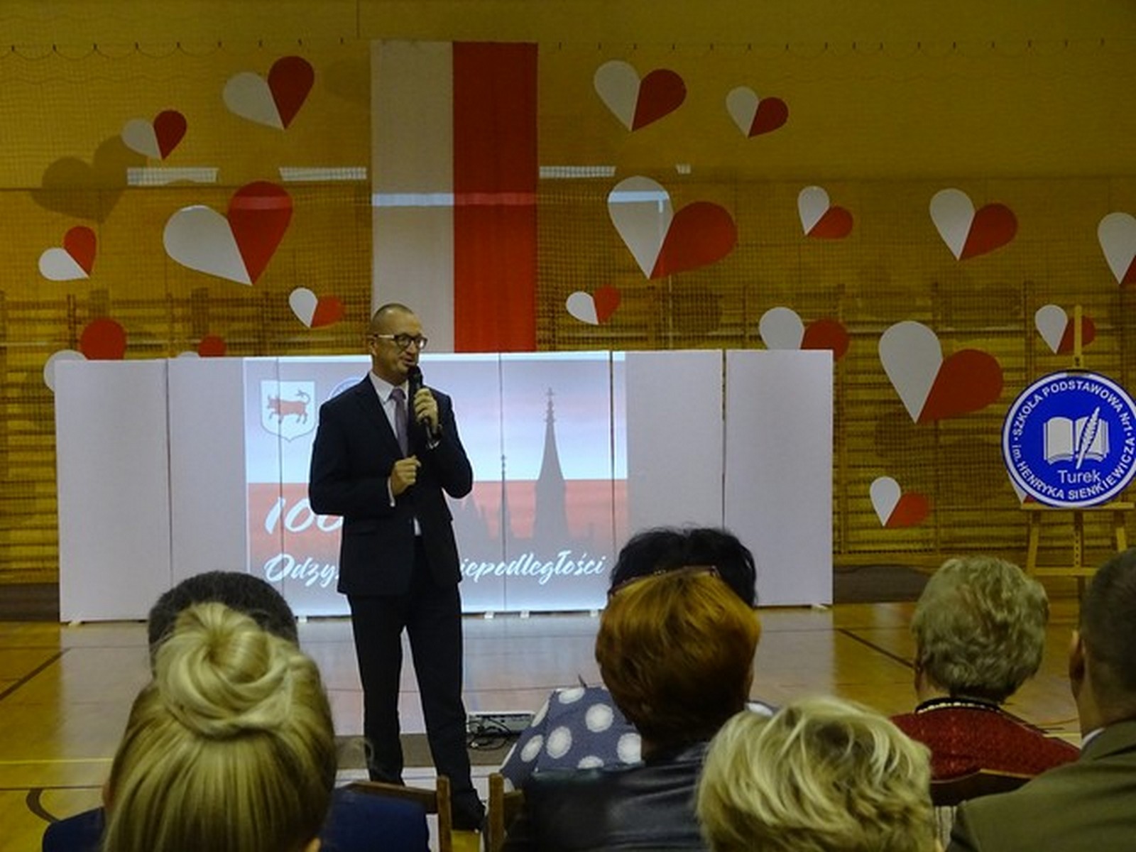 W wyjątkowy nastrój tego uroczystego dnia wprowadził nas Teatr „Szpilka". Uczniowie, kontynuując regionalny projekt w technice cieni, przedstawili montaż słowno – muzyczny pt. „Jak to z niepodległością w Turku było?". W historycznej inscenizacji wziął udział dyrektor Muzeum Miasta Turku p. Bartosz Stachowiak.