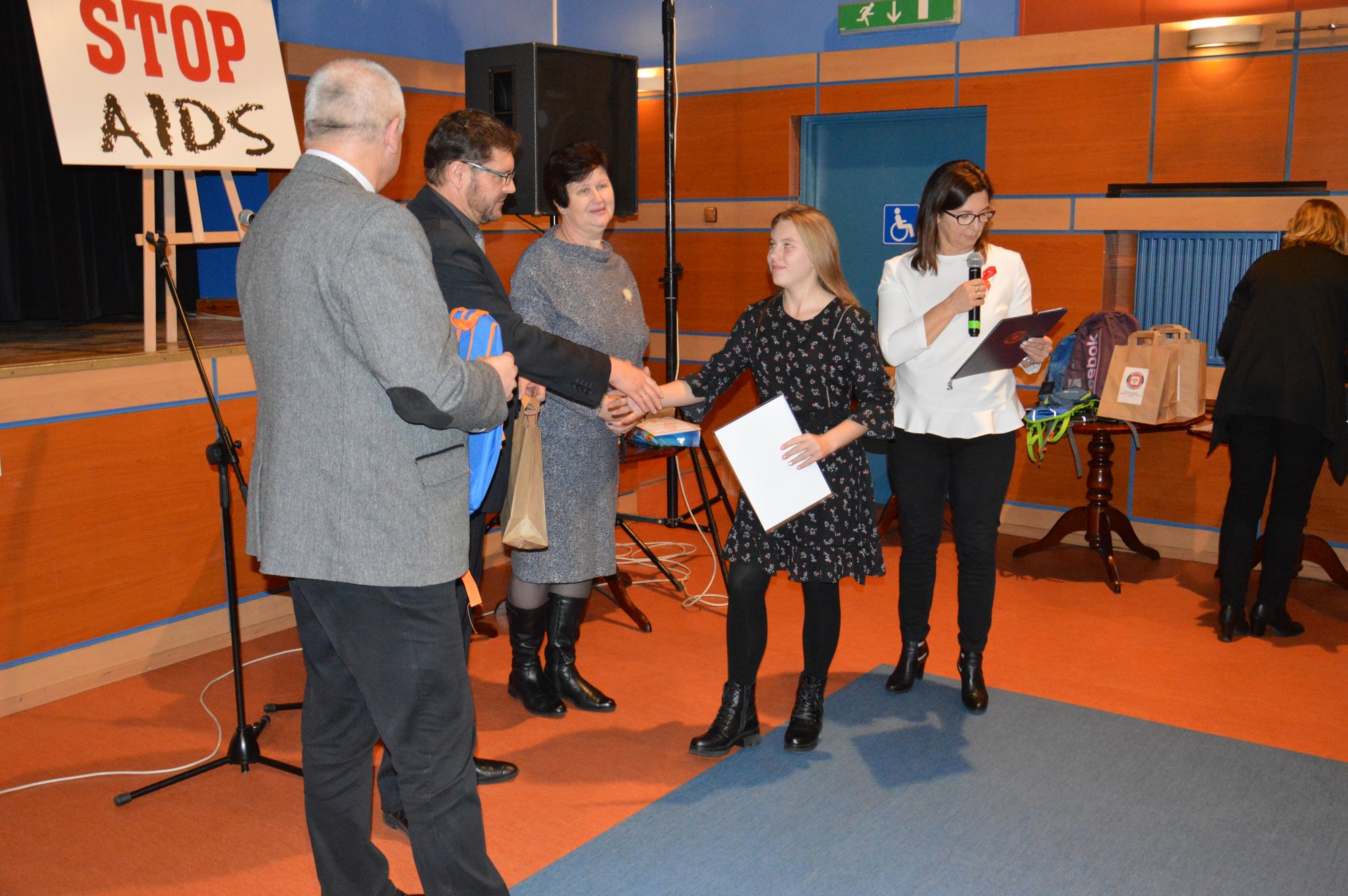 Tradycyjnie już na początku grudnia odbywa się uroczystość podsumowująca konkursy w ramach Światowego Dnia AIDS. 4 grudnia 2018r. uczniowie Szkoły Podstawowej nr 1 im. H. Sienkiewicza z budynku M. Kopernika odebrali nagrody za udział w konkursach: filmowym, fotograficznym, literackim i plastycznym.