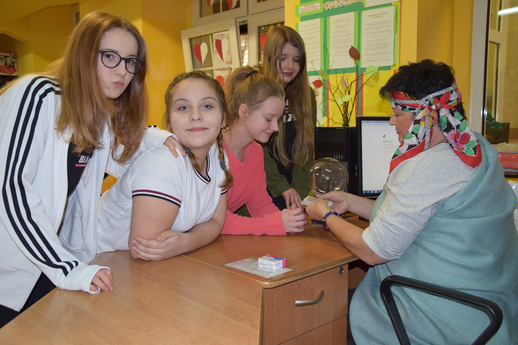 Dodatkową atrakcją okazał się salon wróżb. Tego popołudnia panie ze świetlicy zamieniły się we wróżki, które przepowiadały przyszłość wszystkim chętnym dzieciom. Każdy uczestnik dyskoteki otrzymał bilecik z symbolicznym kluczem, który zwalniał z niezapowiedzianych kartkówek i ustnych odpowiedzi następnego dnia.