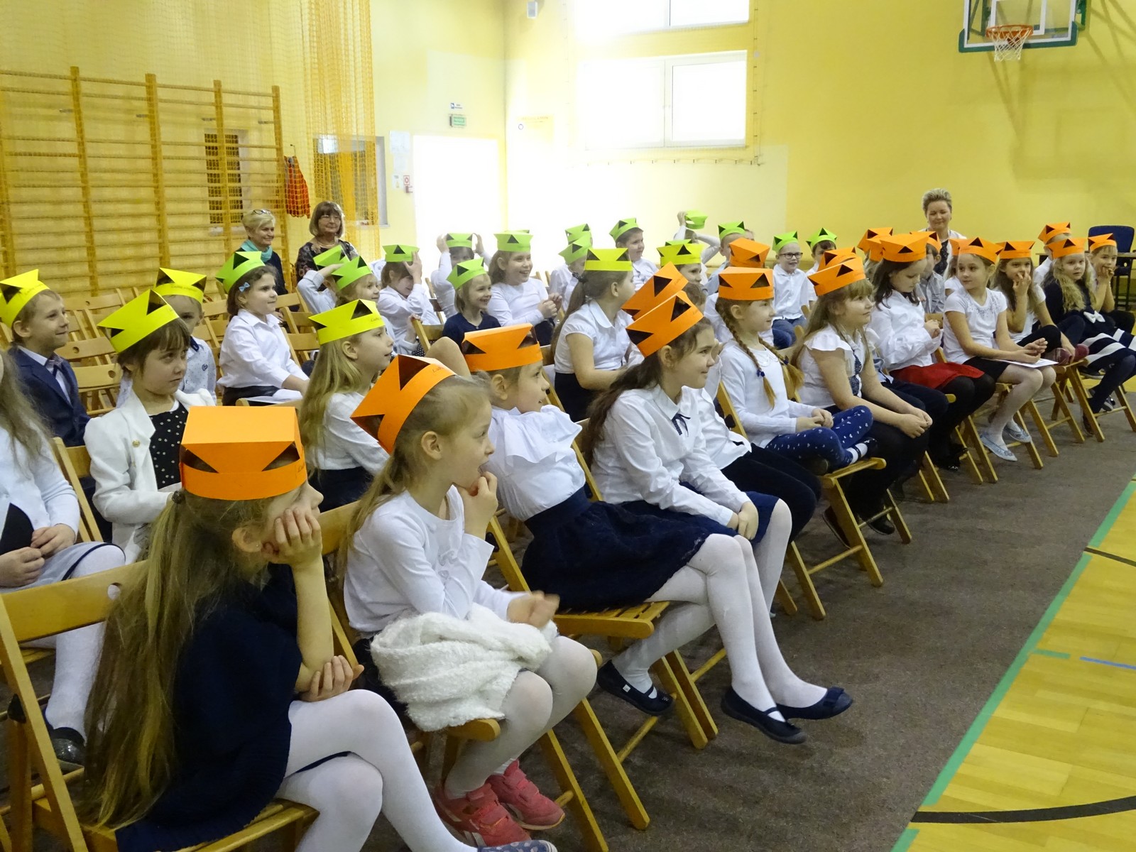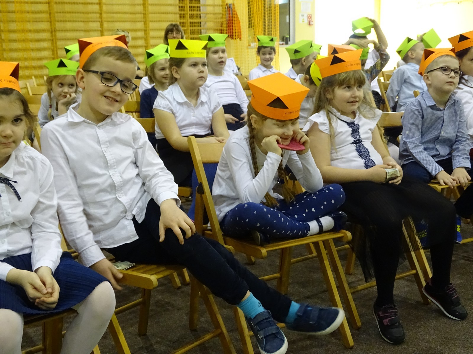 Najpierw najmłodsi uczniowie zostali Pasowani na czytelnika biblioteki szkolnej. To szczególne wydarzenie, na które dzieci oczekiwały wiele tygodni. Po złożeniu przyrzeczenia czytelnika, p. Renata dokonała pasowania każdego pierwszaka wielką zakładką. Na pamiątkę tego zdarzenia każdy otrzymał Dyplom.