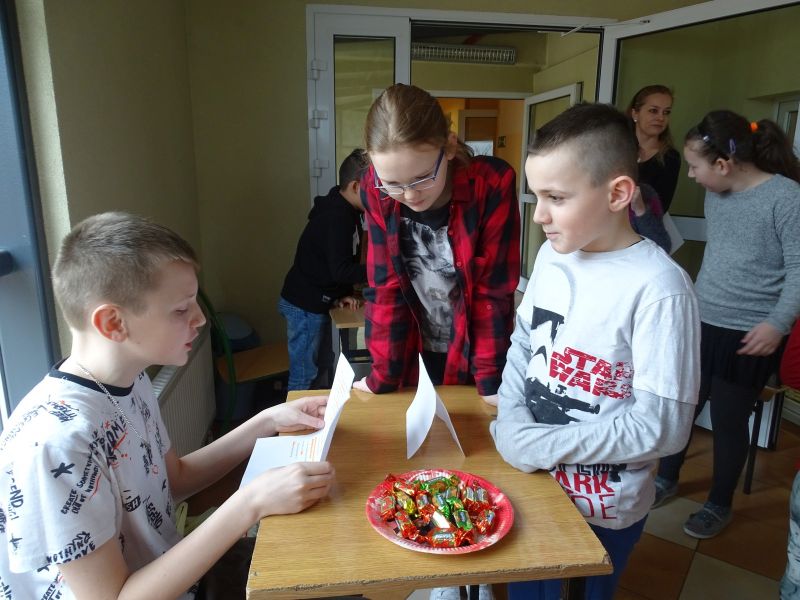 Z okazji ostatków Samorząd Uczniowski zorganizował w naszej szkole quizy wiedzowe. Wszyscy chętni uczniowie mieli możliwość sprawdzenia swoich wiadomości z zakresu: języka polskiego, języka angielskiego, historii, matematyki i przyrody. Każde dziecko, które poprawnie odpowiedziało na pytanie z wybranego przedmiotu, otrzymało cukierka. Quizy były przeznaczone przede wszystkim dla uczniów klas czwartych i piątych, jednak przybyło również wielu młodszych uczniów, którym udało się udzielić poprawnych odpowiedzi. Tego dnia dzieci świetnie się bawiły.