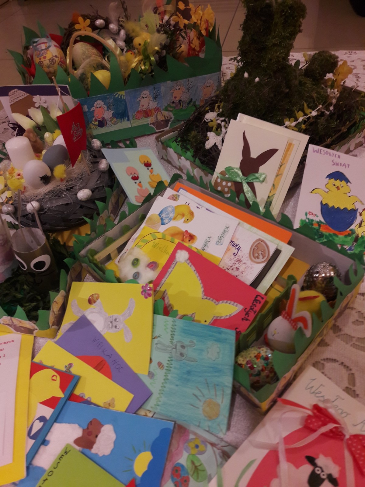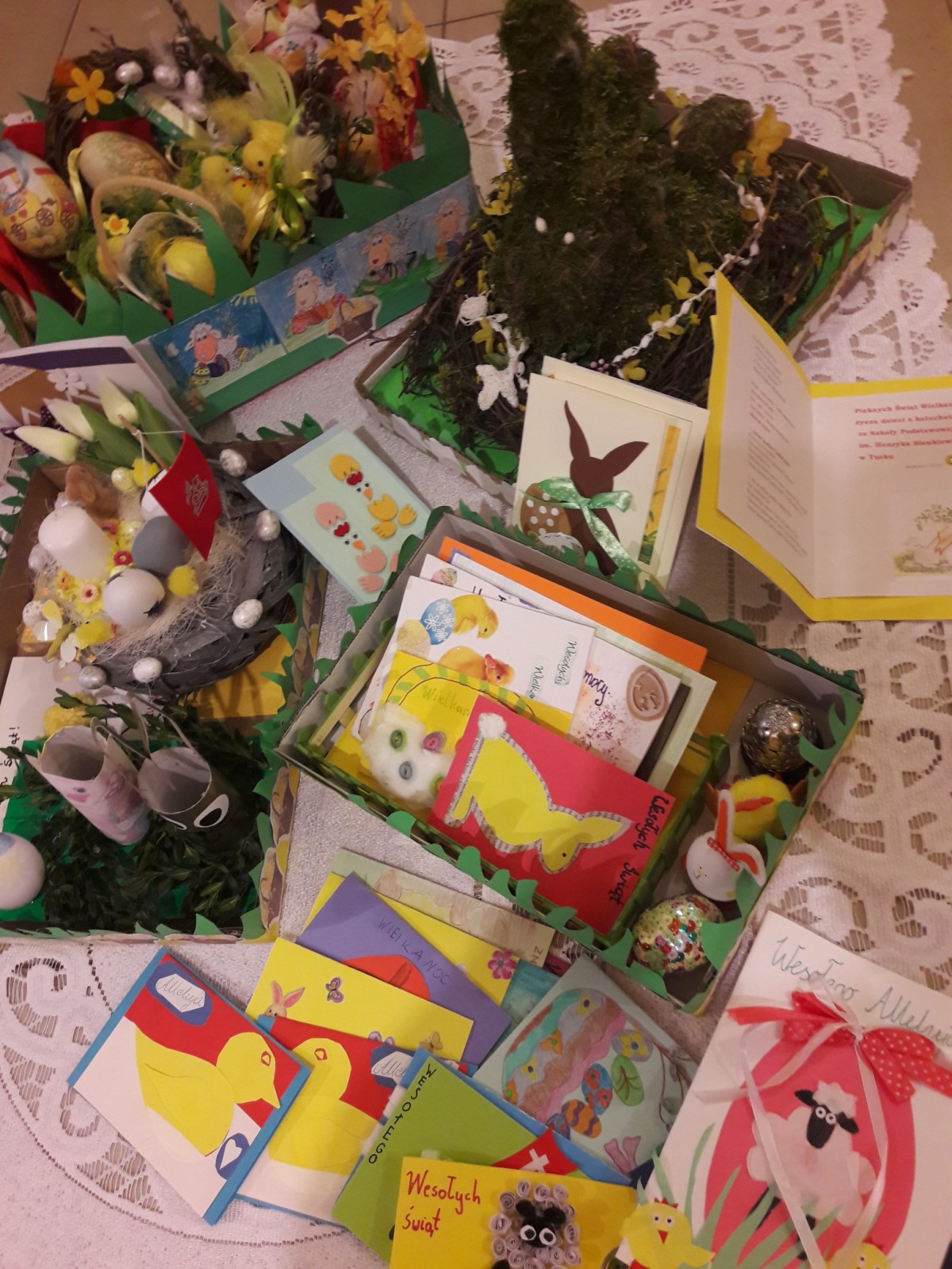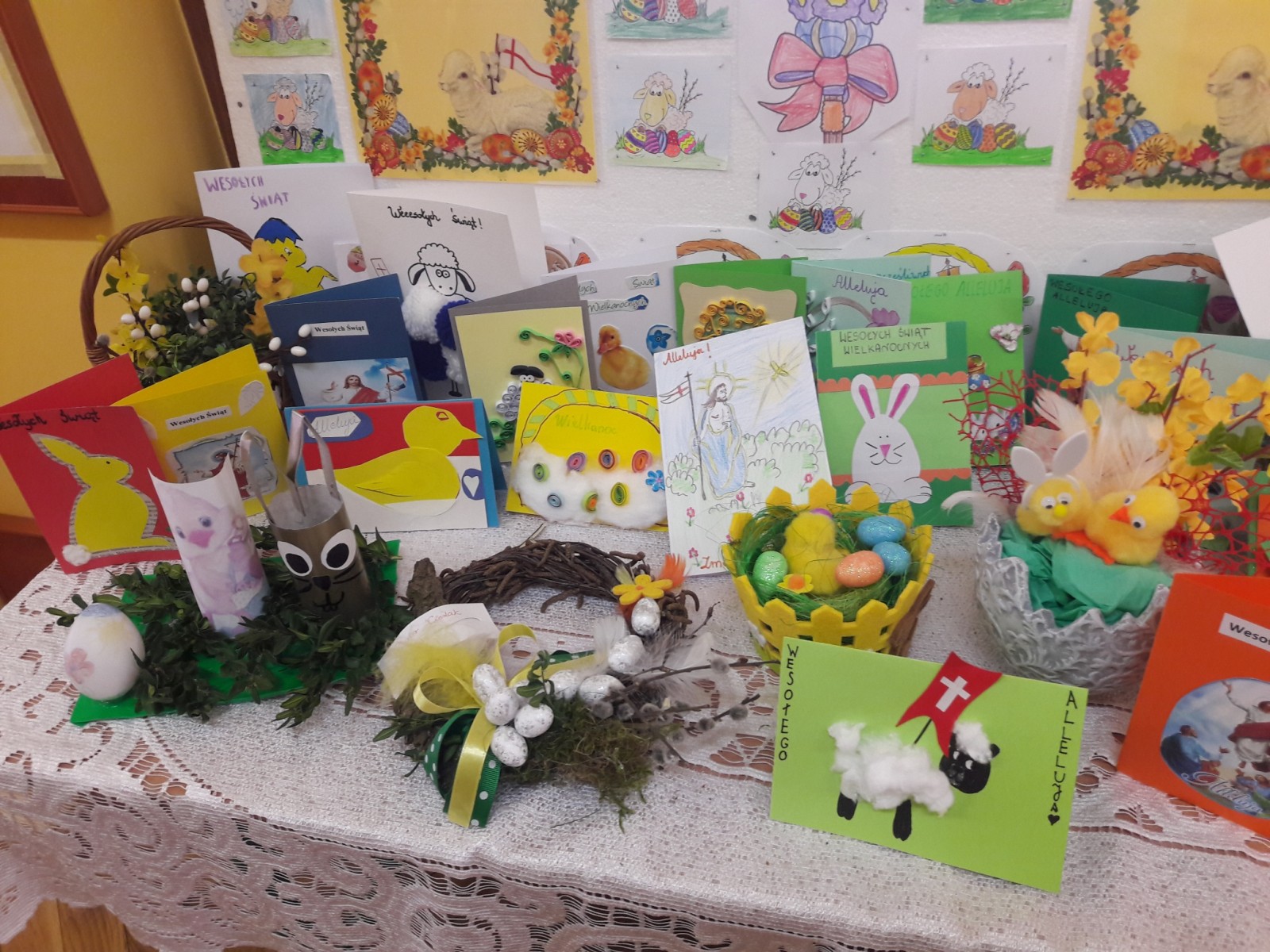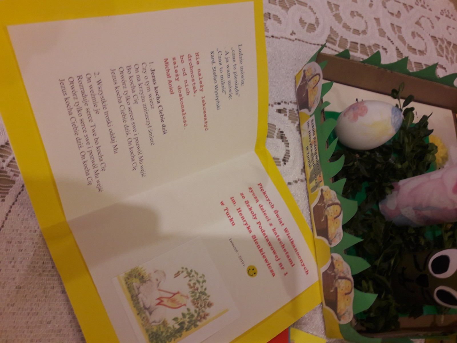 Z okazji RADOŚCI płynącej ze Świąt Wielkanocnych młodzież i dzieci wsparci opieką rodziców przygotowali stroiki świąteczne i kartki z życzeniami. Zostały one tuż przed świętami przekazane Pensjonariuszom naszego Hospicjum w Turku. Prace można było podziwiać na szkolnej wystawie. Warto pamiętać, że dla chrześcijan są to święta zwycięstwa życia nad śmiercią. W pracach królowały pisanki, które są symbolem nowego życia.