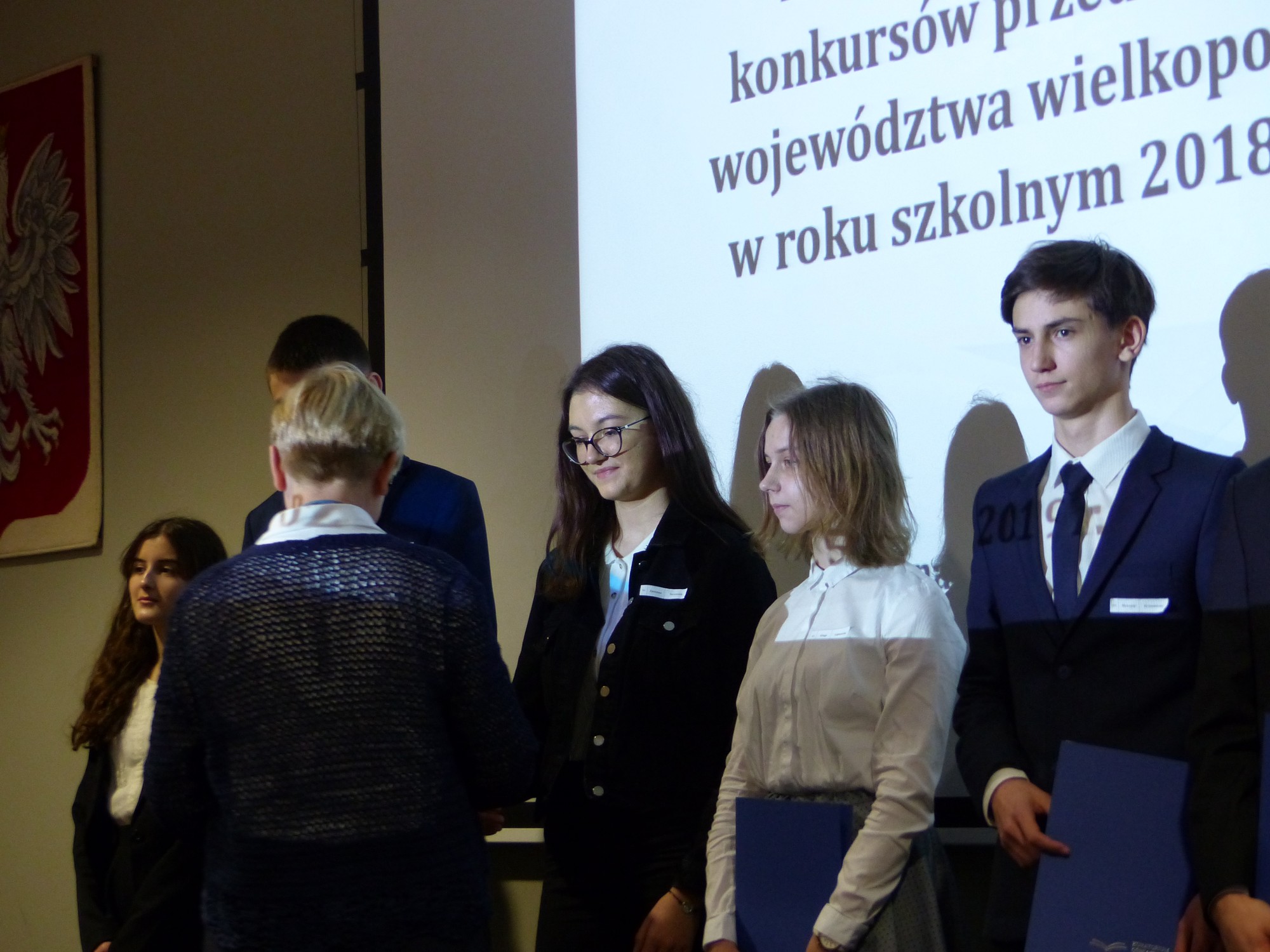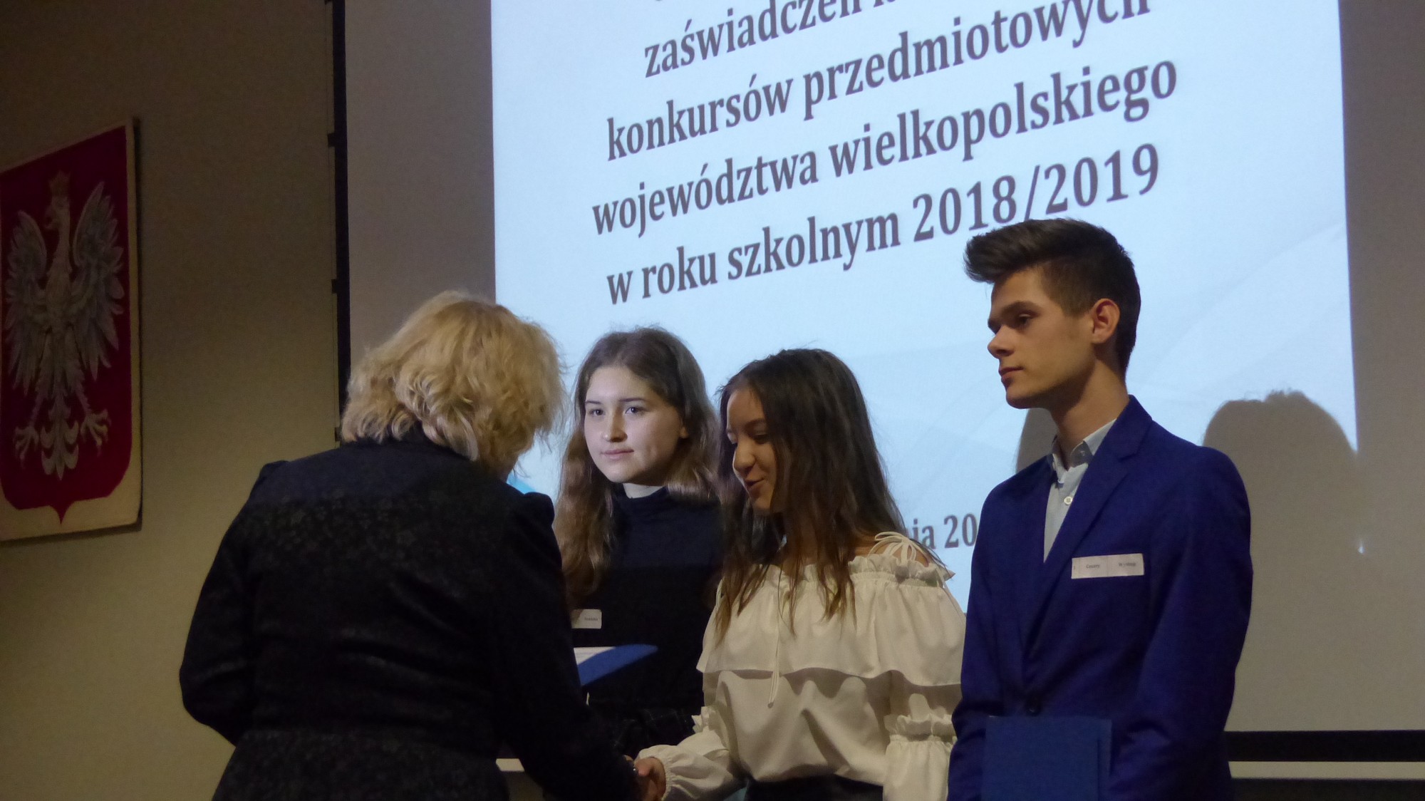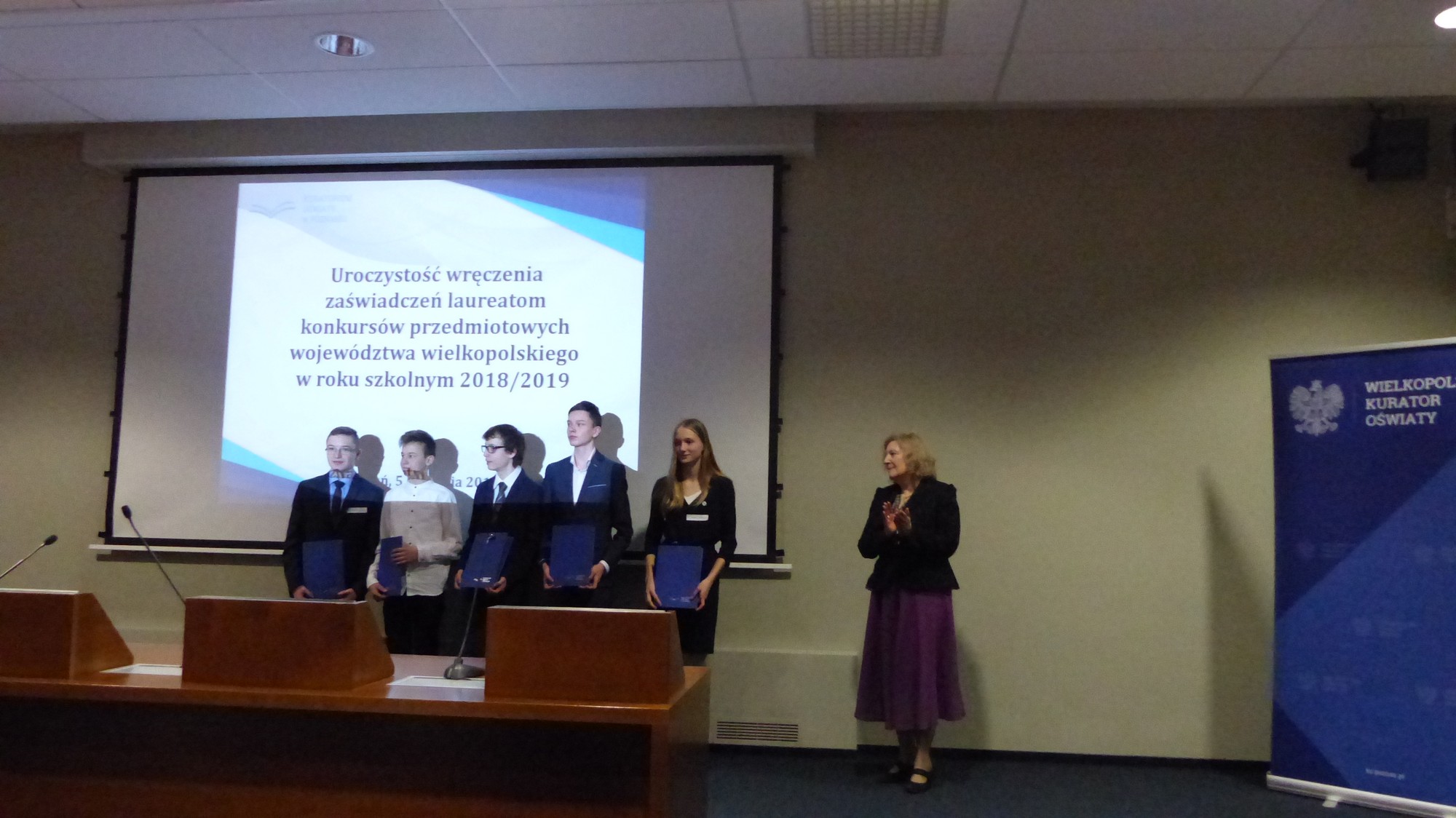 Uroczyste wręczenie zaświadczeń laureatom odbyło się w Poznaniu na uroczystej gali z udziałem pani Kurator Oświaty.