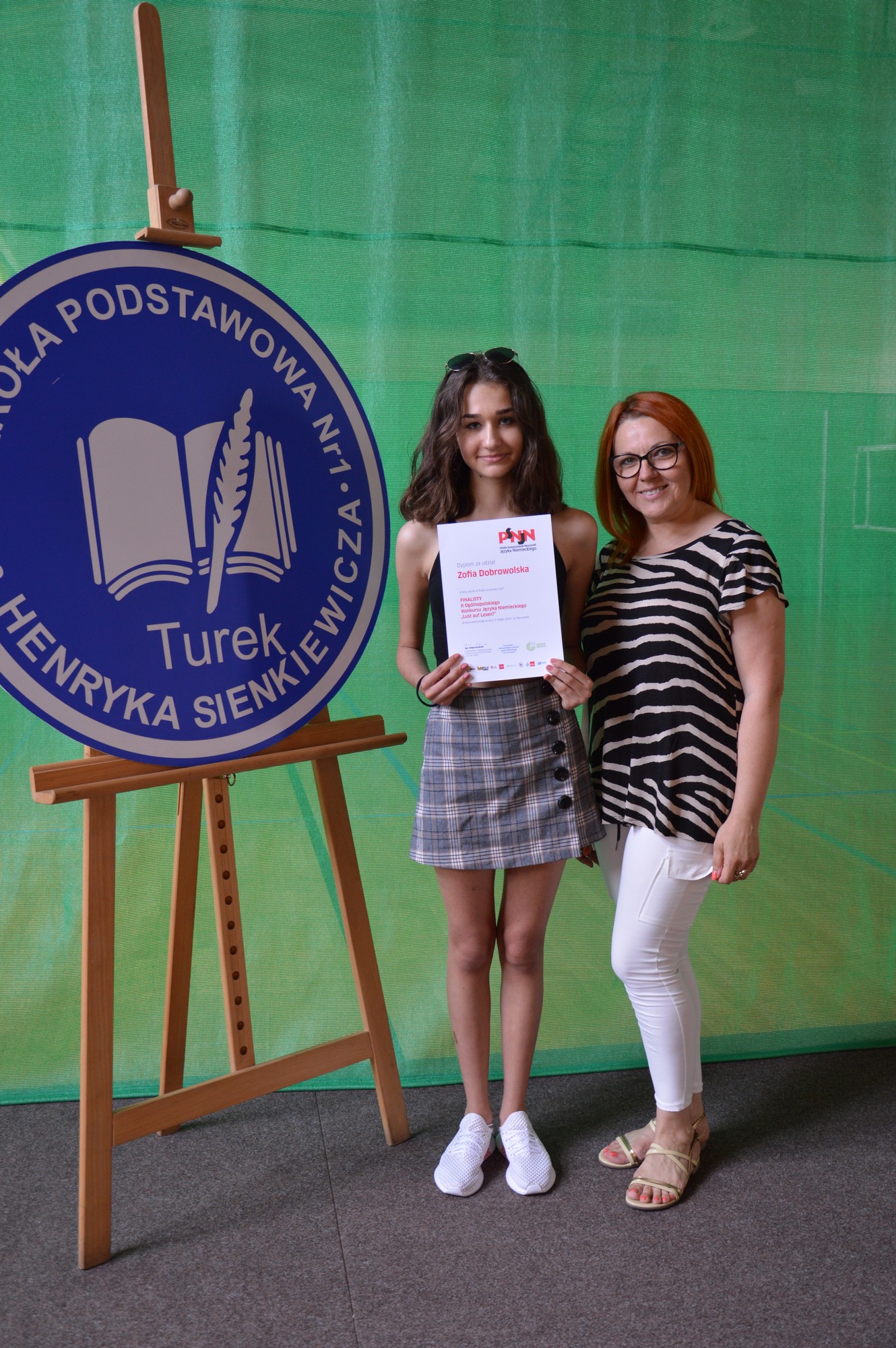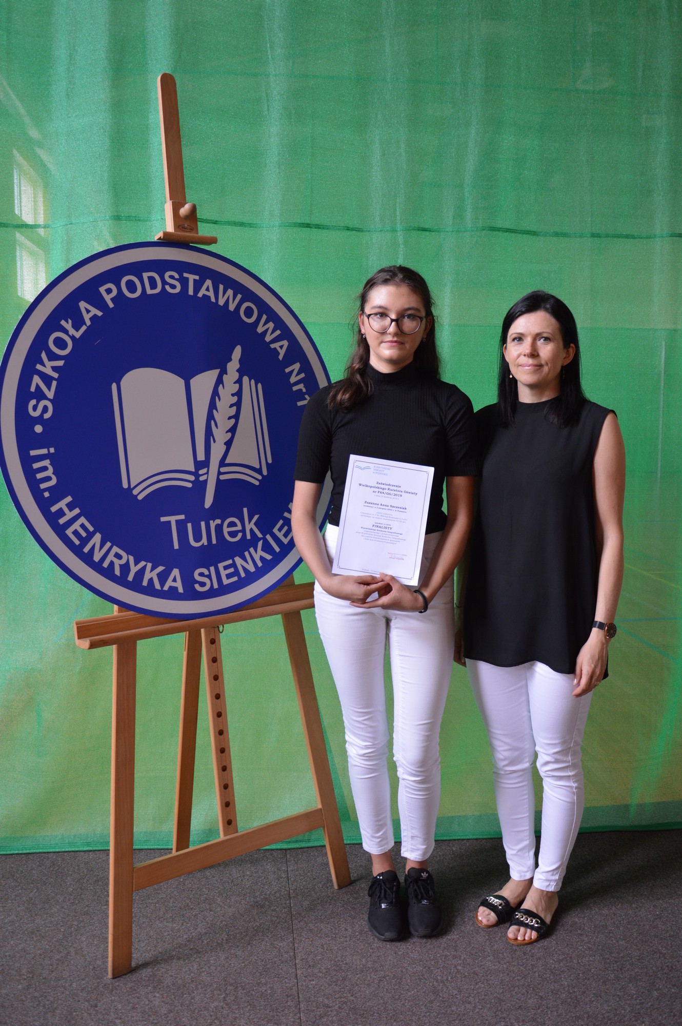 Zuzanna Szczesiak z klasy 3B oddziału gimnazjalnego może poszczycić się tytułem laureata wojewódzkiego Konkursu Historycznego i finalisty Wojewódzkiego Konkursu Geograficznego ( opiekunowie - Anna Maćczak, Małgorzata Kaczkowska). Warto dodać, że Zuzanna w klasie szóstej szkoły podstawowej uzyskała tytuł laureata Wojewódzkiego Konkursu Języka Polskiego (opiekun - Ewa Pawlak).