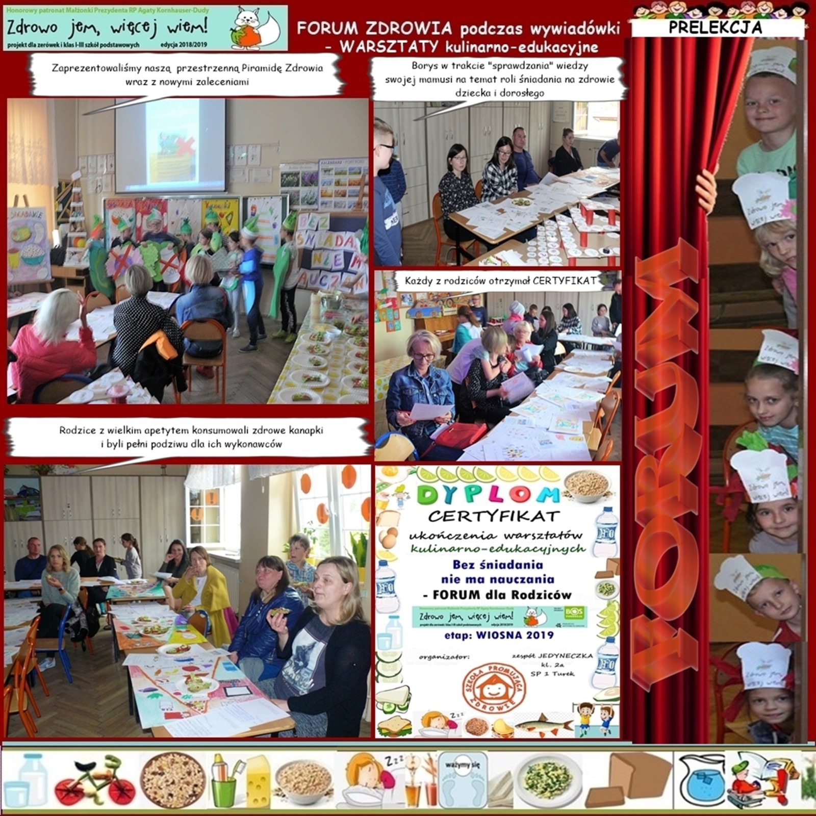 Dla uczniów kl. 3a i wychowawcy Grażyny Sujewicz nowy rok szkolny rozpoczął się szczególnie radośnie. A to za sprawą udziału i realizacji kolejnej już IX edycji ogólnopolskiego projektu edukacji prozdrowotnej „Zdrowo jem, więcej wiem” Fundacji BOŚ, pod honorowym patronatem Pierwszej Damy RP- p. Agaty Kornhauser – Dudy. Za całoroczną realizację projektu zespół „Jedyneczka” uzyskał I miejsce w kraju w kategorii GRAND PRIX kl. II-III. Celem projektu skierowanego do uczniów zerówek i klas I-III szkół podstawowych była nie tylko realizacja poszczególnych zadań organizatora, ale głównie kreatywne podejście i podjęte własne działania w zakresie edukacji związanej ze zdrowym i ekologicznym stylem życia, aktywnością fizyczną, a także promocja zdrowia w środowisku szkolnym i lokalnym, co zostało docenione przez jury konkursu. Udział w konkursie i realizacja projektu była dla dzieci nie tylko szansą na zdobycie wiedzy o zdrowym odżywianiu i wyrobienia prawidłowych nawyków żywieniowych, ale także zdobyciem cennych umiejętności takich, jak praca w grupie. Warto zadbać o zdrowe odżywianie i regularną aktywność fizyczną. Więcej informacji na temat działań podjętych przez „Jedyneczkę” można zobaczyć na klasowym blogu NAUKA i ZABAWA /http://pasjeinauka.blogspot.com/.