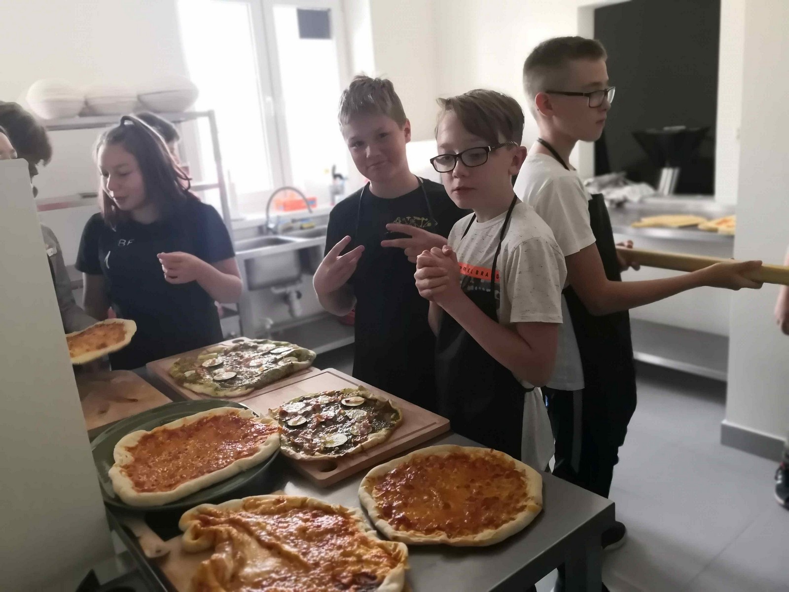27 września 2019 r. uczniowie klasy VIC uczestniczyli w zorganizowanych z okazji Dnia Chłopca warsztatach kulinarnych. Zajęcia prowadziły panie z Fundacji ze Smakiem. Pod ich fachowym okiem dzieci przygotowały jako danie główne pizzę Margheritę oraz pizzę z bazyliowym pesto, szynką i cukinią, a na deser – „Trufle jak marzenie” i kulki bajaderki.