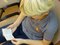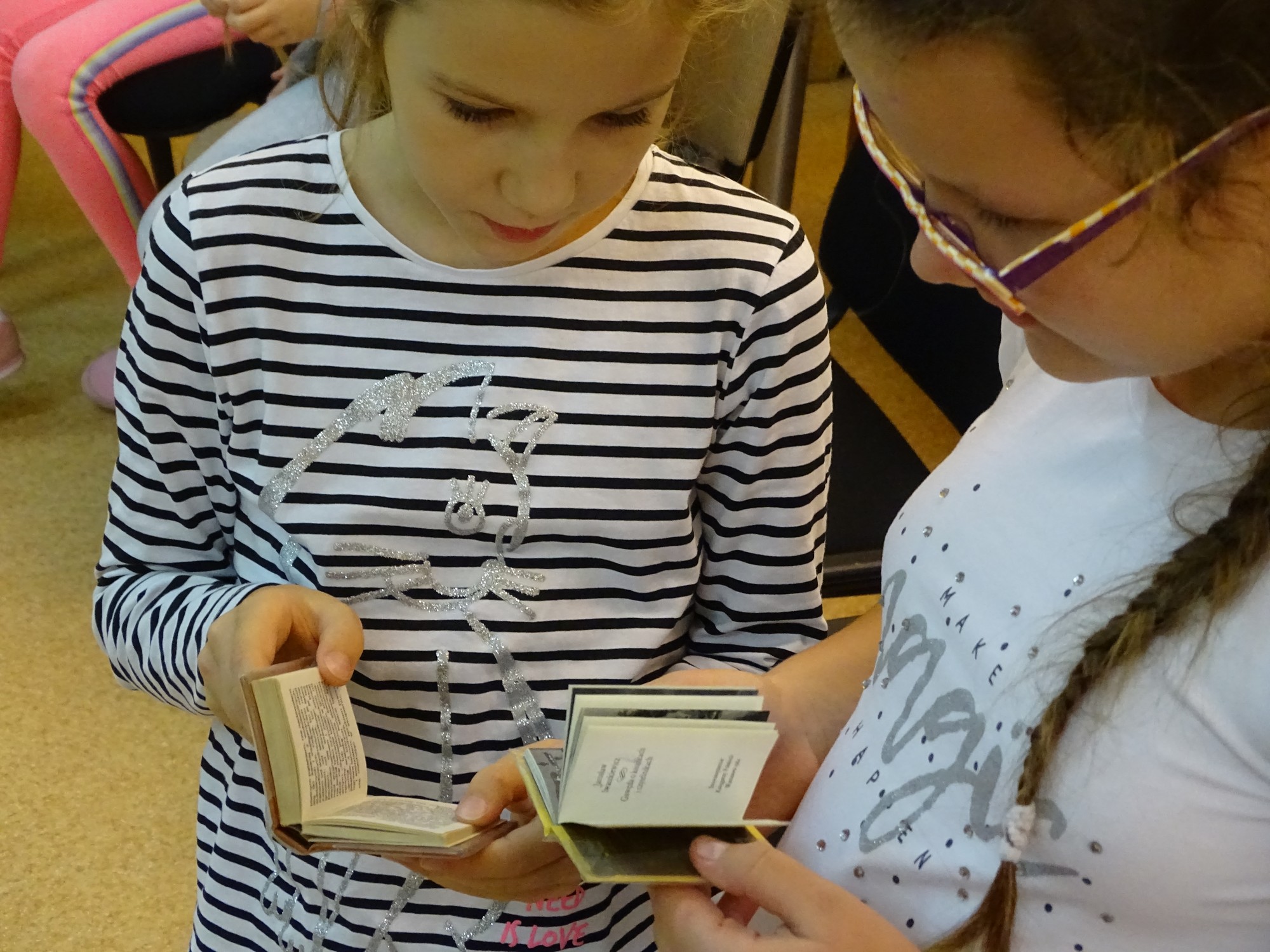 Spotkanie rozpoczęło się od pokazu oryginalnych eksponatów tej biblioteki, najmniejszych i największych egzemplarzy książek. Uczniowie z dużym zainteresowaniem oglądali wyjątkowe okazy.