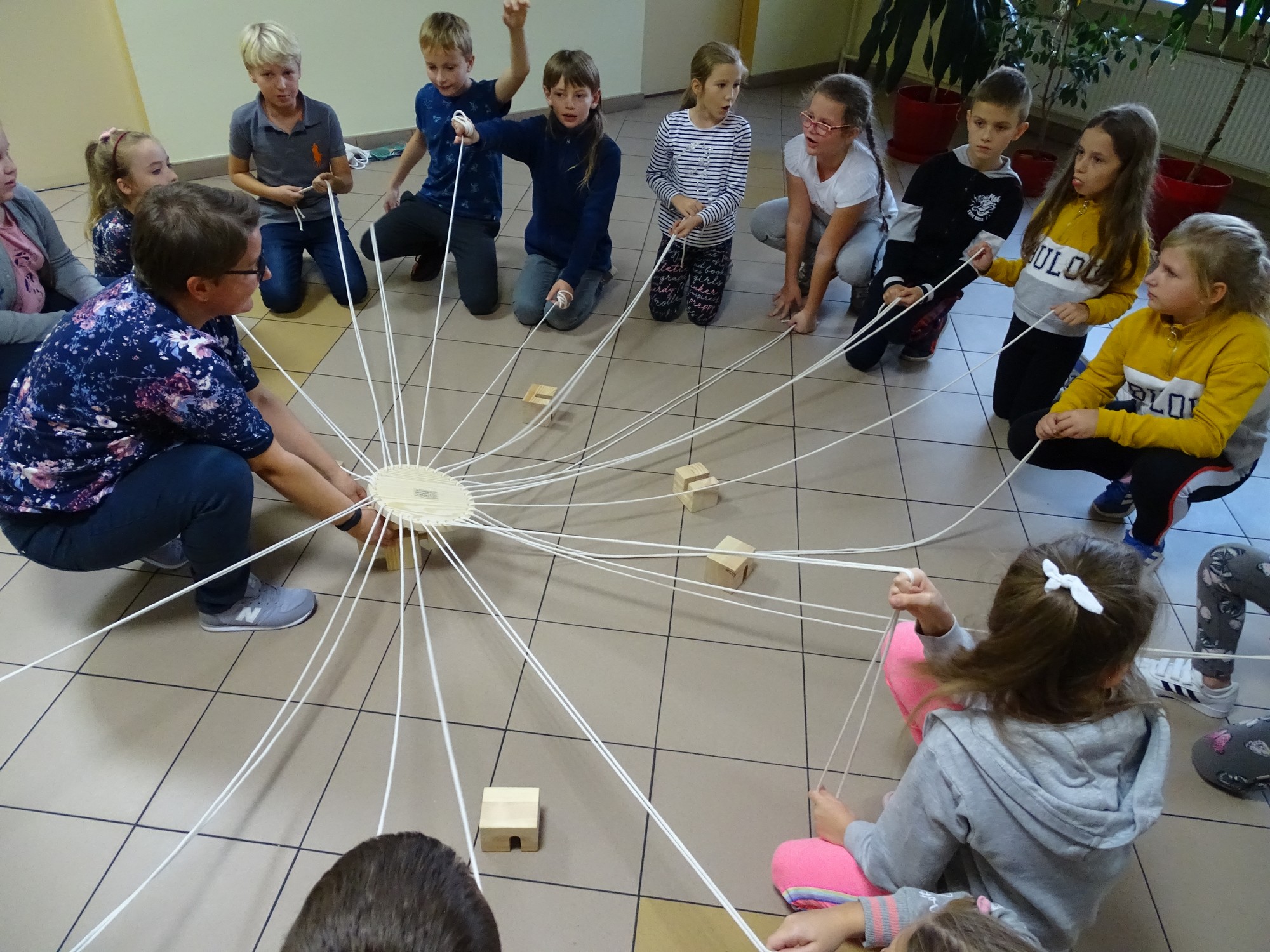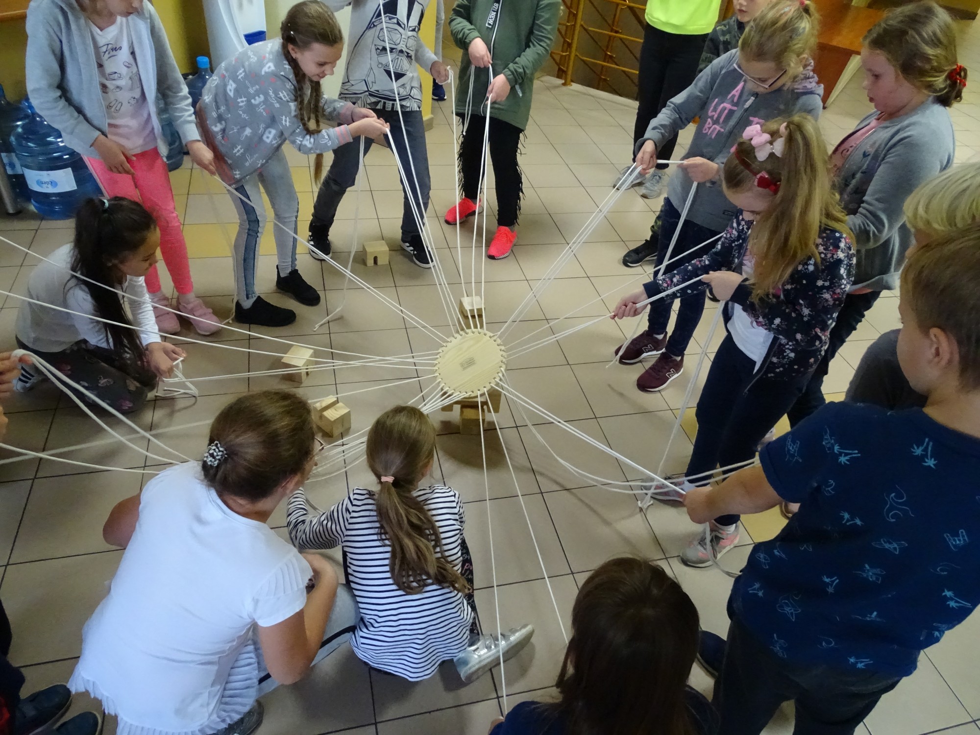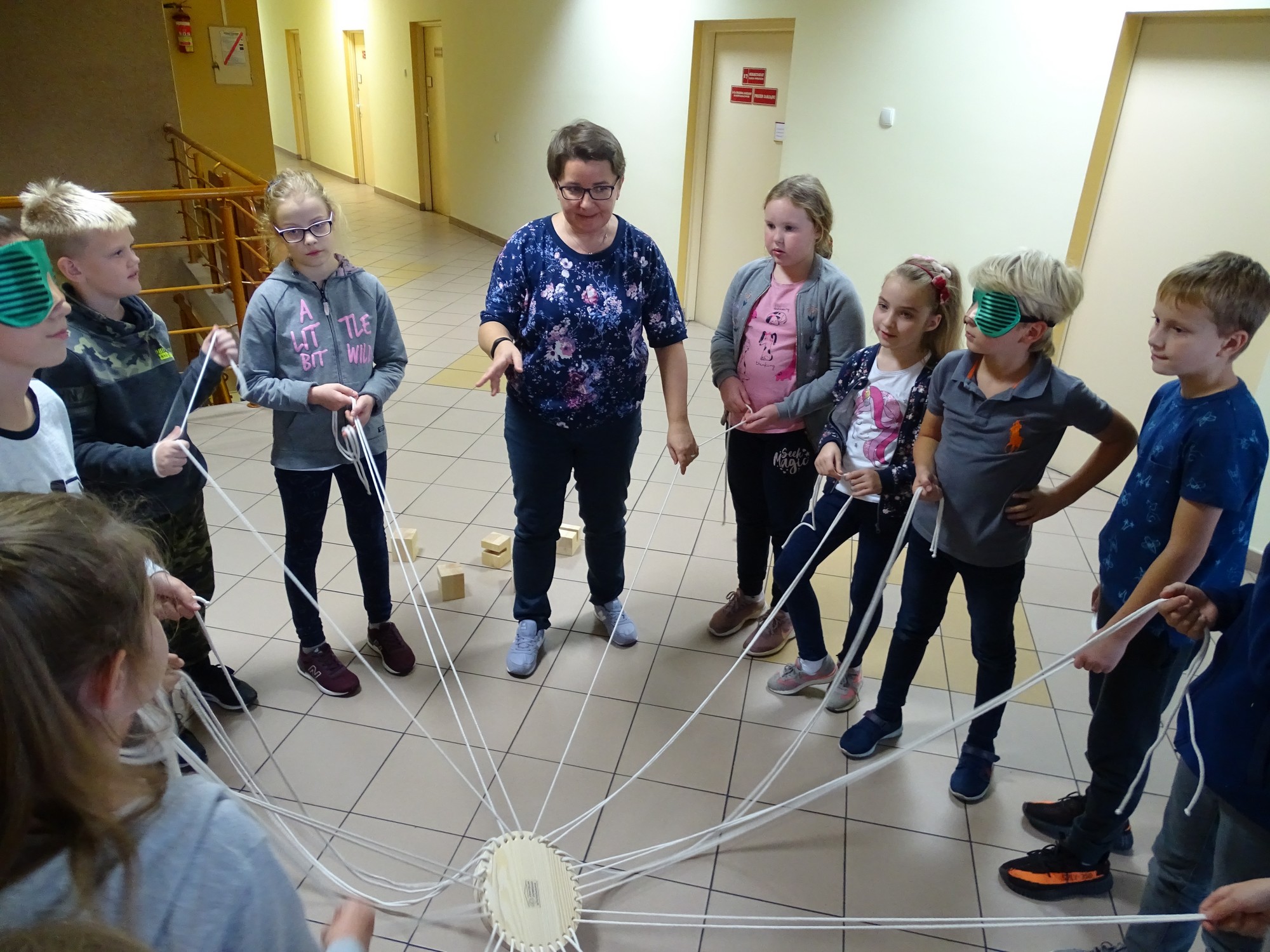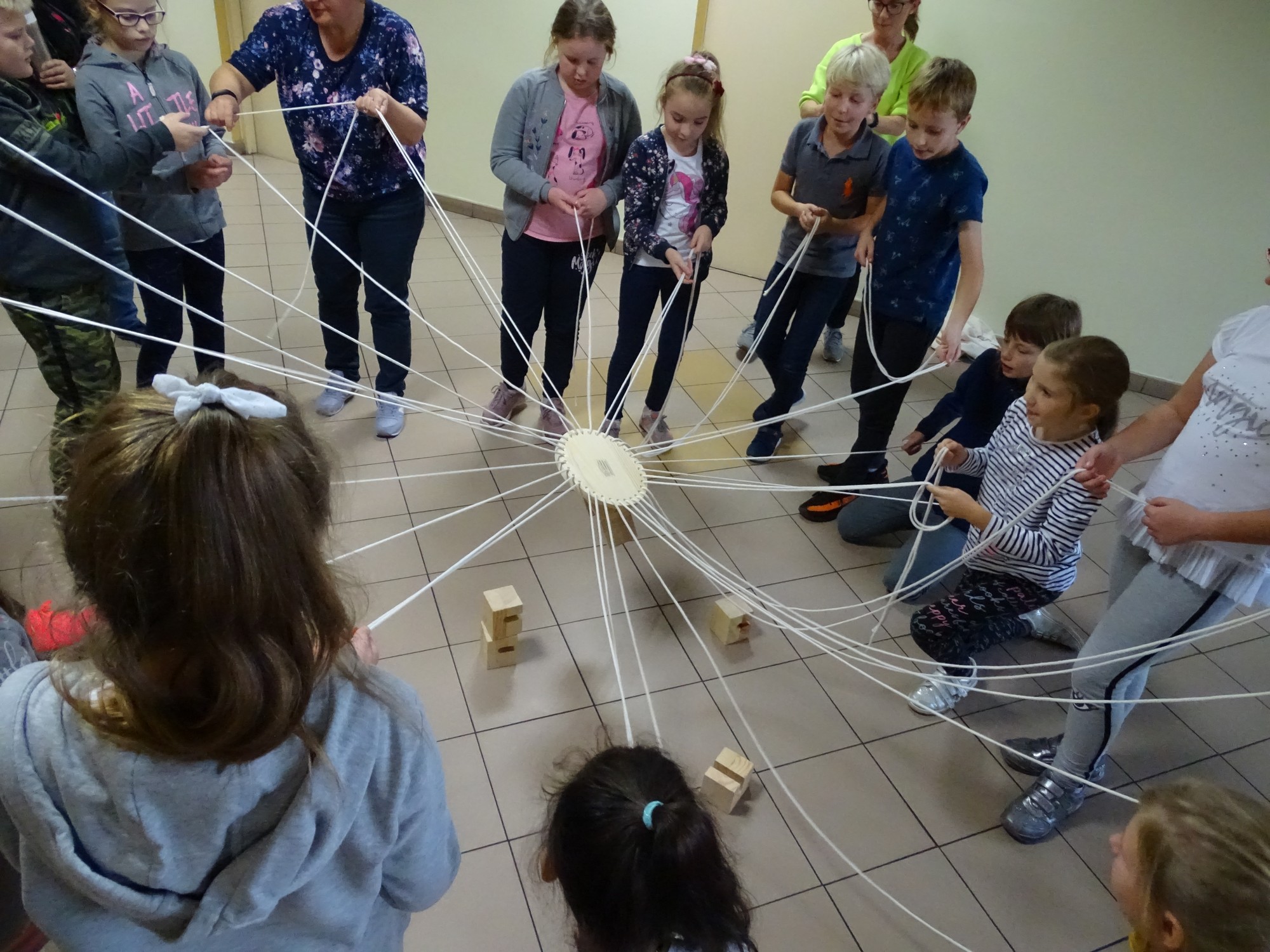 Dla uczestników organizatorki przygotowały wiele gier. Na początek był „łamacz lodów”, dzięki któremu wszyscy mogli poznać się bliżej, opowiadając o swoich zainteresowaniach i upodobaniach. Później przyszła kolej na „Koło współpracy”. Ta zabawa, której celem było zbudowanie wieży z drewnianych klocków okazała się bardzo trudna, ale dzieciom udało się osiągnąć sukces. Po tej wyczerpującej zabawie przyszła kolej na „Color brain”, czyli myślenie kolorami. Ta grupowa gra wywołała wiele emocji wśród uczestników, którzy zmęczeni zarówno fizycznie jak i psychicznie z radością przyjęli wiadomość, że przyszedł czas na kolację. Wszyscy z apetytem spałaszowali pyszną pizzę.