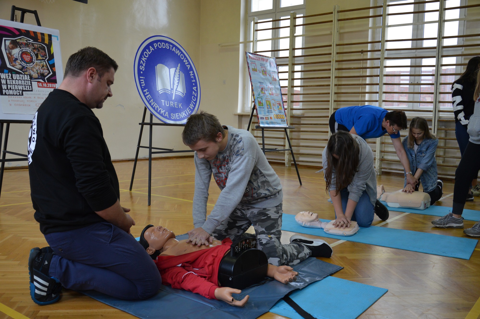 Pomysłodawcą przeprowadzanej od 2013 roku akcji jest Europejska Rada Resuscytacji, a organizatorem w Polsce – Fundacja Wielkiej Orkiestry Świątecznej Pomocy. SP1 w Turku co roku podejmuje wyzwanie w celu pobicia nowego rekordu. 16 października 2019 roku 174 uczniów z naszej szkoły wzięło udział w biciu rekordu w ramach „ Europejskiego Dnia Przywracania Czynności Serca”. Przed przystąpieniem do akcji pan Błażej Błajet, ratownik medyczny, omówił najważniejsze aspekty przywracania czynności serca oraz udzielał uczniom wskazówek podczas przebiegu tak ważnego przedsięwzięcia.