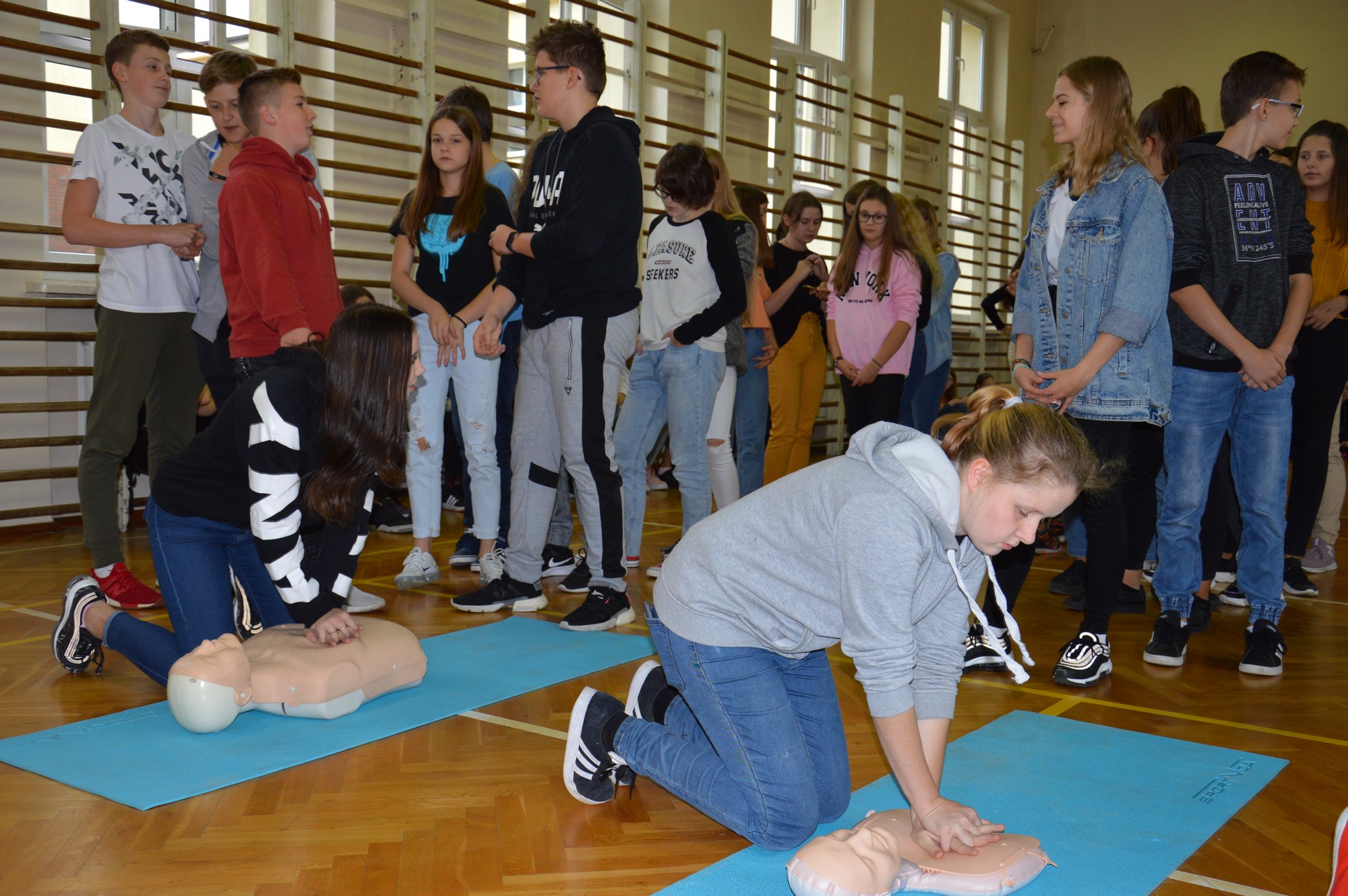 UDZIAŁ UCZNIÓW Z SP1 W OGÓLNOPOLSKIM BICIU REKORDU W JEDNOCZESNYM WYKONYWANIU RESUSCYTACJI KRĄŻENIOWO - ODDECHOWEJ