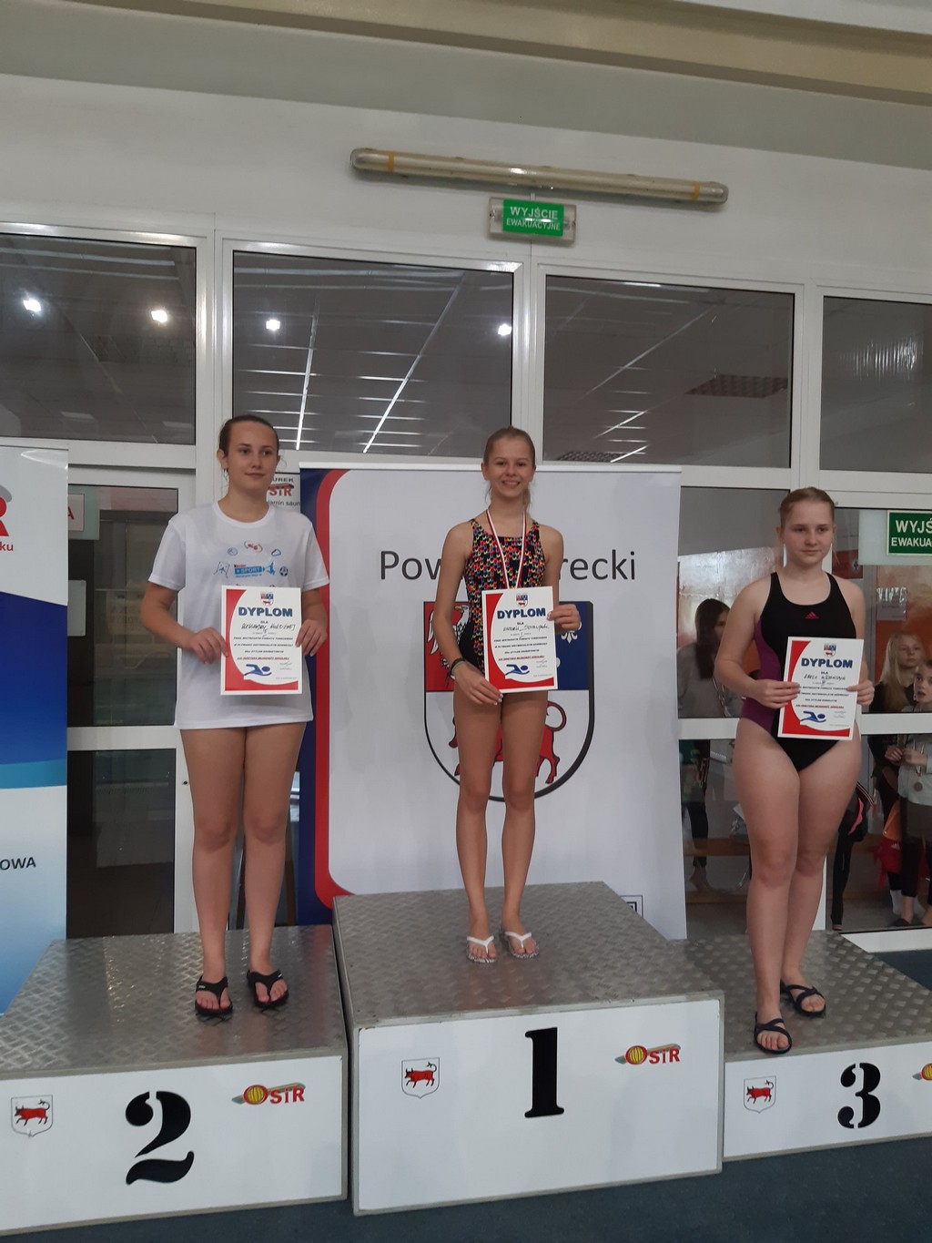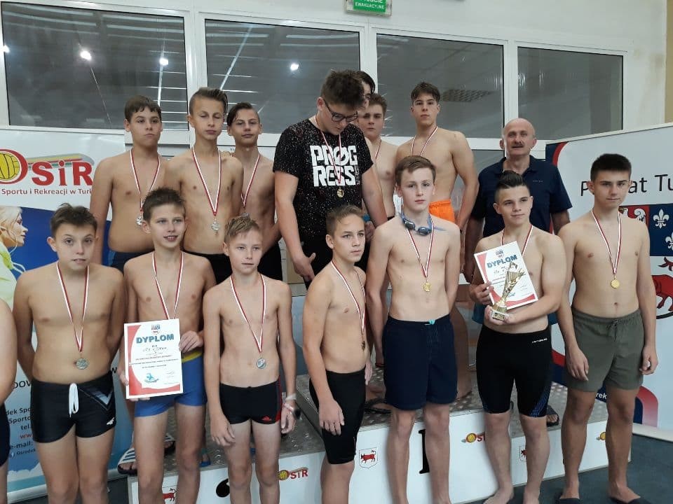 24 października 2019r. w Turku odbył się etap powiatowy XXI Igrzysk Młodzieży Szkolnej w Pływaniu. Sztafeta dziewcząt z klas 7 i 8 zdobyła tytuł Mistrza Powiatu Tureckiego w Pływaniu Drużynowym. Szkołę naszą reprezentowały: Szczupak Wiktoria kl. 8a, Cichomska Olga kl.8c, Szczupak Zuzanna kl. 8b, Modrzejewska Julia kl. 7d, Maciejewska Gabriela kl. 7c, Szuberska Amelia kl. 8d, Kałużna Aleksandra kl. 7d, Kujawa Aleksandra kl. 8d. Lis Amelia kl. 8a. Nasze uczennice odniosły również sukcesy w pływaniu indywidualnym na dystansie 50m. Amelia Szuberska zajęła 1. miejsce w stylu dowolnym, Gabriela Maciejewska - 2. miejsce w stylu dowolnym, Wiktoria Szczupak - 1. miejsce w stylu grzbietowym. Aleksandra Kałużna - 2. miejsce w stylu grzbietowym, Amelia Lis - 3. miejsce w stylu grzbietowym, Zuzanna Szczupak - 2.miejsce w stylu klasycznym, Olga Cichomska - 3. miejsce w stylu klasycznym. Wszystkie dziewczęta wykazały się dużym zaangażowaniem i wielką wolą sportowej rywalizacji. Gratulujemy sukcesów i życzymy powodzenia na Mistrzostwach Wielkopolski w Poznaniu. Opiekun: Barbara Knop