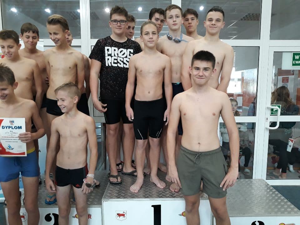Chłopcy z klas VII-VIII rywalizowali na dystansie 6x50m stylem dowolnym i zdobyli Mistrzostwo Powiatu. Jednocześnie poprawiając rekord szkoły o ponad cztery sekundy. Mistrzostwo Powiatu dało im awans do Mistrzostw Wielkopolski. Szkołę naszą reprezentowali: Buda M.8b, Gargula K.7d, Grenda B.7c, Jasiakiewicz D.8b, Jóźwiak M.8a, Kacprza M.8d, Walczykowski W.8b, Włodarczyk J.8a. Chłopcom gratulujemy i życzymy dalszych sukcesów. Opiekun A.Michalski