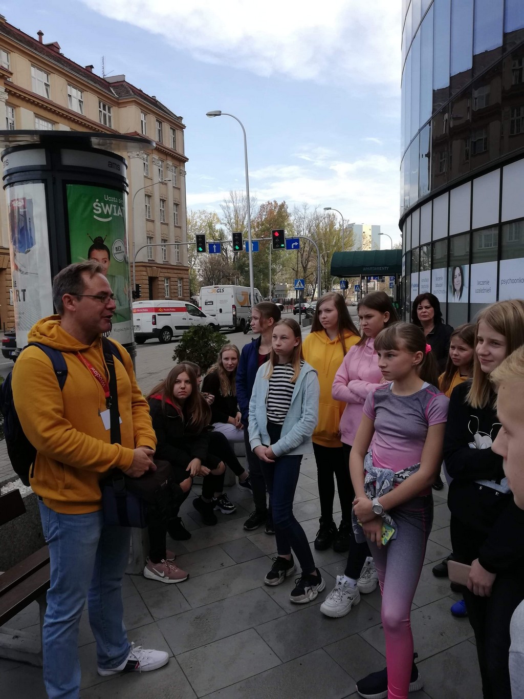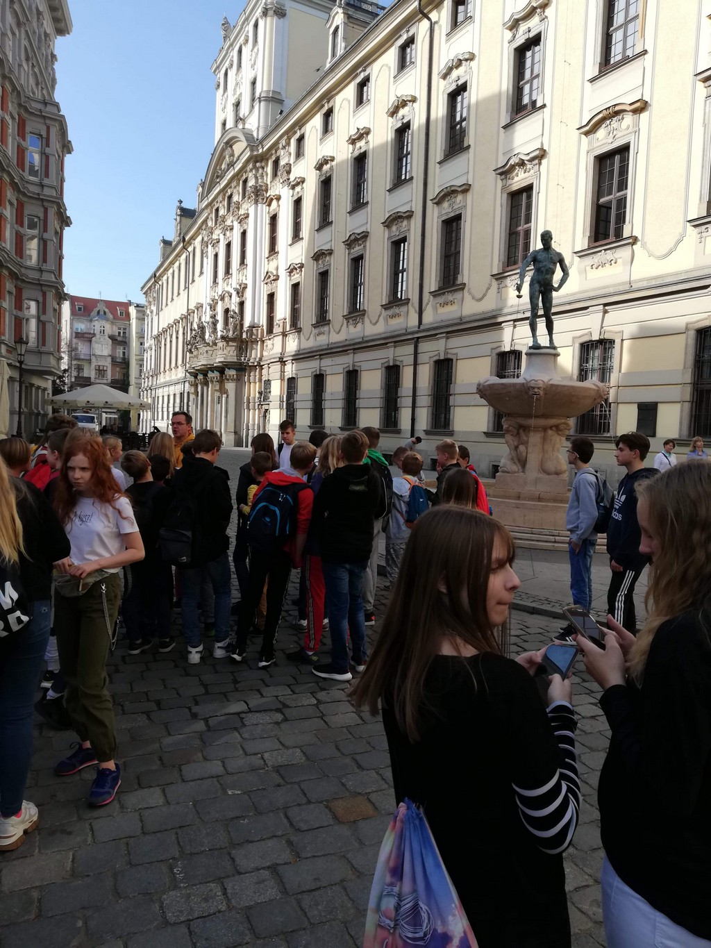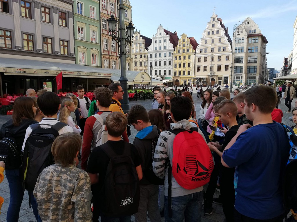 a potem przez Most Zakochanych zawędrowali na Stare Miasto. Na wrocławskiej Starówce nastolatki podziwiali zabytkowe kamienice, ratusz i wspaniałą fontannę. Największą atrakcją dla uczniów było poszukiwanie krasnali, które można było spotkać na szlaku pieszej wędrówki. Na zakończenie wycieczki podziwiali „Panoramę Racławicką” przedstawioną na olbrzymim płótnie.