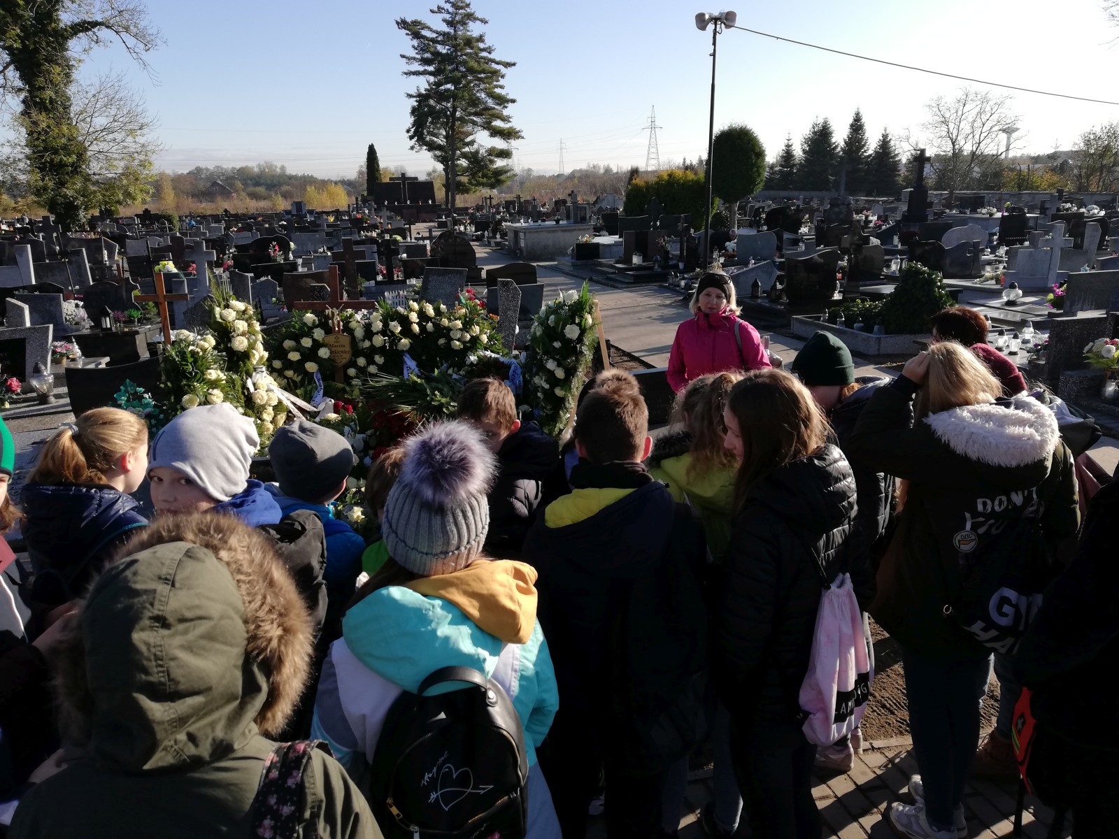 W ramach akcji „Szkoła pamięta” uczniowie klas VI d i VIII c podążyli śladem lokalnych bohaterów, którzy walczyli o wolność Polski. Na ich grobach i pomnikach zapalili znicze. Młodzież oddała hołd pomordowanym nauczycielom oraz innym ofiarom II wojny światowej. Światełko pamięci zapaliła także na grobie Mieczysława Makarego Smorawińskiego, Tomiły Składkowskiej, Leona Kruszyńskiego, Stanisława Kączkowskiego, Włodzimierza Borzysławskiego i braci Stanisława i Tadeusza Marszlów. Następnie uczniowie udali się do lasu, by odwiedzić miejsce pamięci oddziału partyzanckiego „Groźny”. Przy każdym z tych miejsc pani Bożena Mielczarek opowiadała uczniom o bohaterach tamtych trudnych czasów. Na zakończenie wycieczki patriotycznej rozpalono ognisko i wspominano niezwykłych ludzi, dzięki którym teraz możemy cieszyć się wolnością. Opiekę nad uczniami sprawowały nauczycielki: Katarzyna Błajet, Renata Sochacka i Bożena Mielczarek.