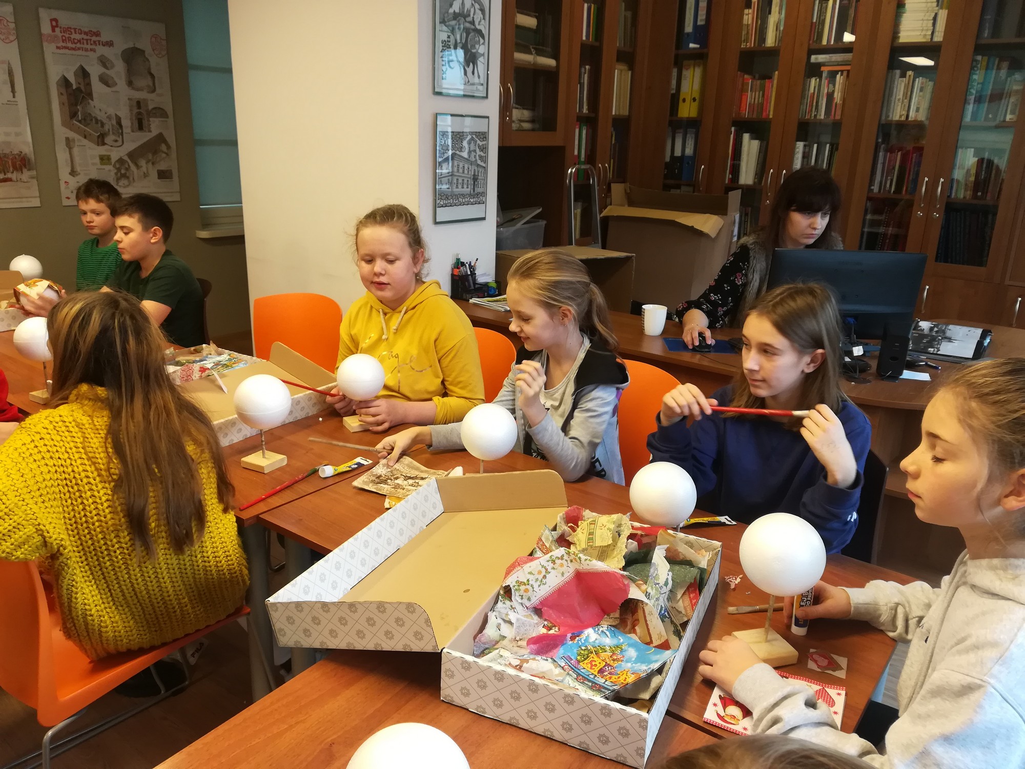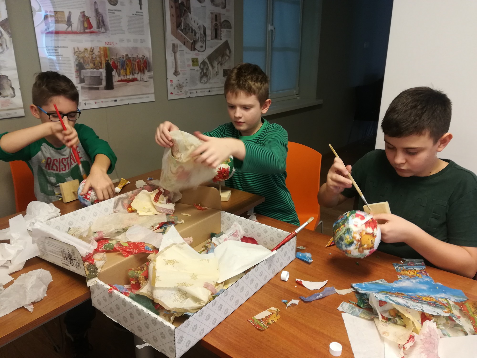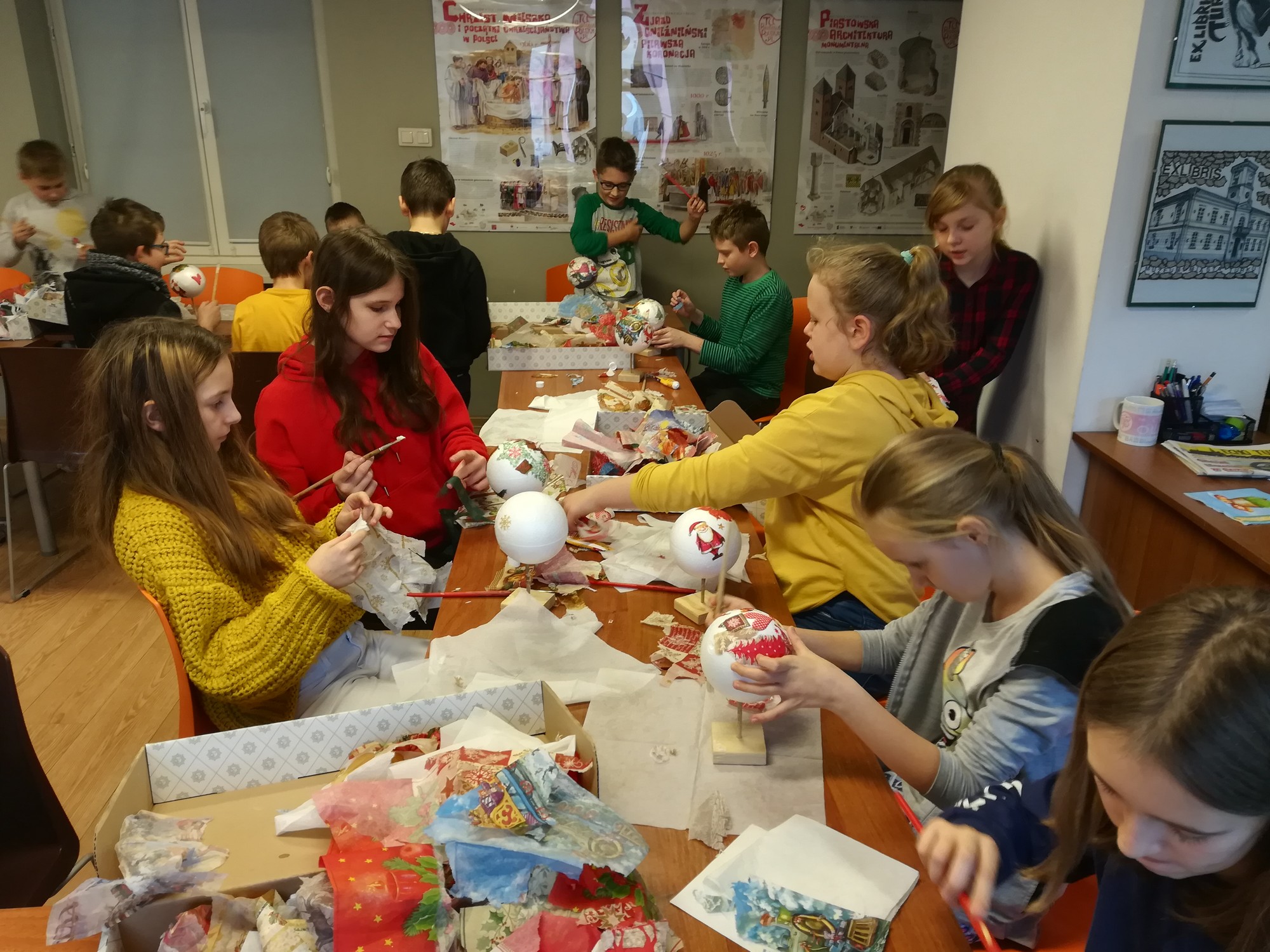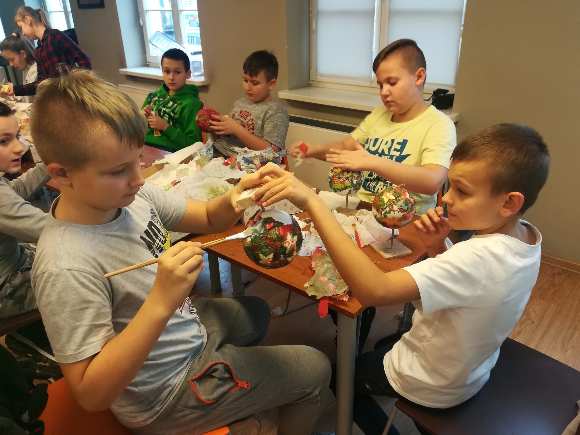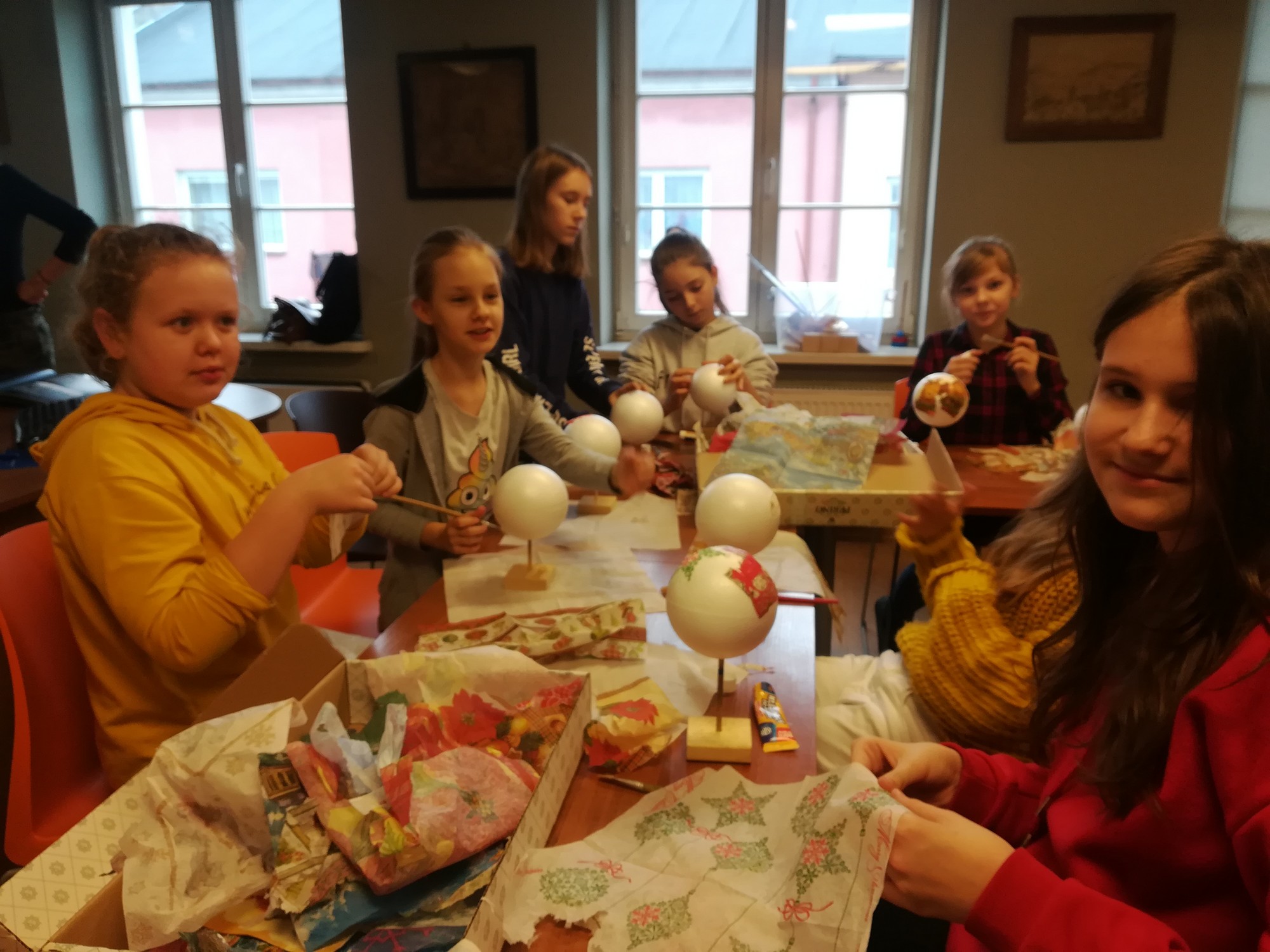 20 listopada uczniowie klasy 5b wraz z wychowawczynią uczestniczyli w przedświątecznych warsztatach w Muzeum Miasta Turku. Nucąc kolędy wszyscy poczuli już nastrój nadchodzących świąt, a wykonane metodą serwetkową bombki ozdobią bożonarodzeniowe choinki.