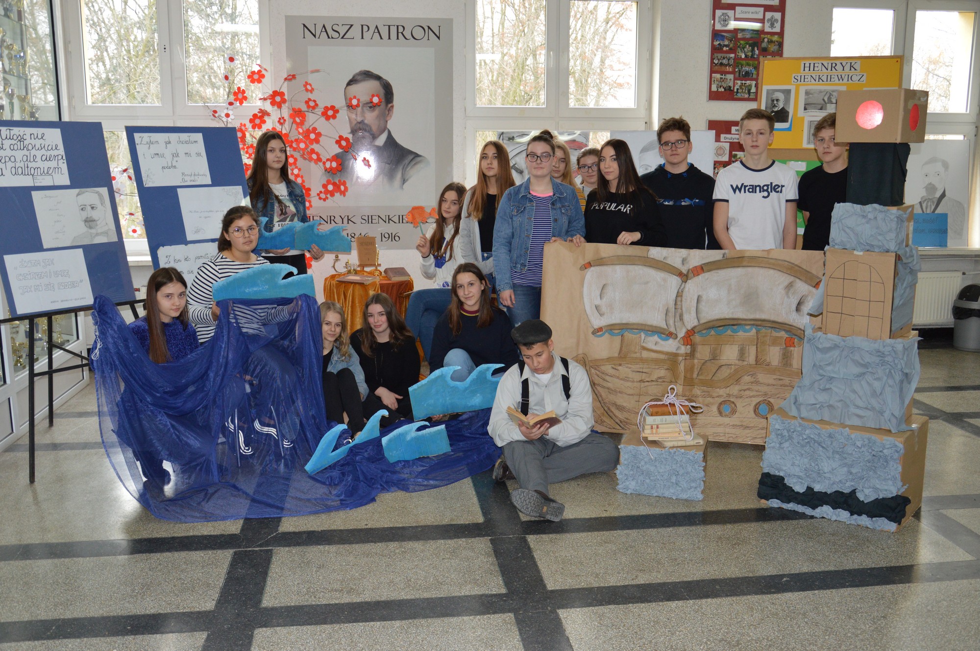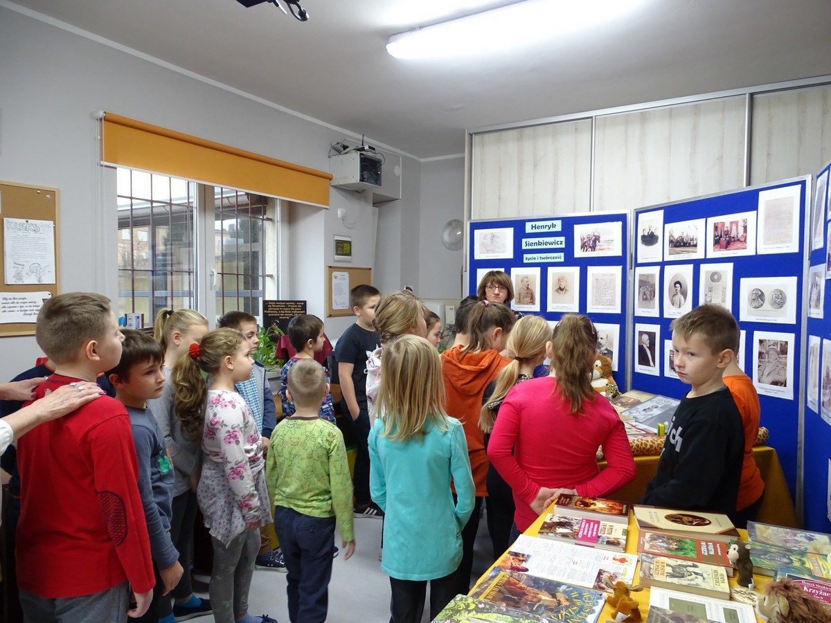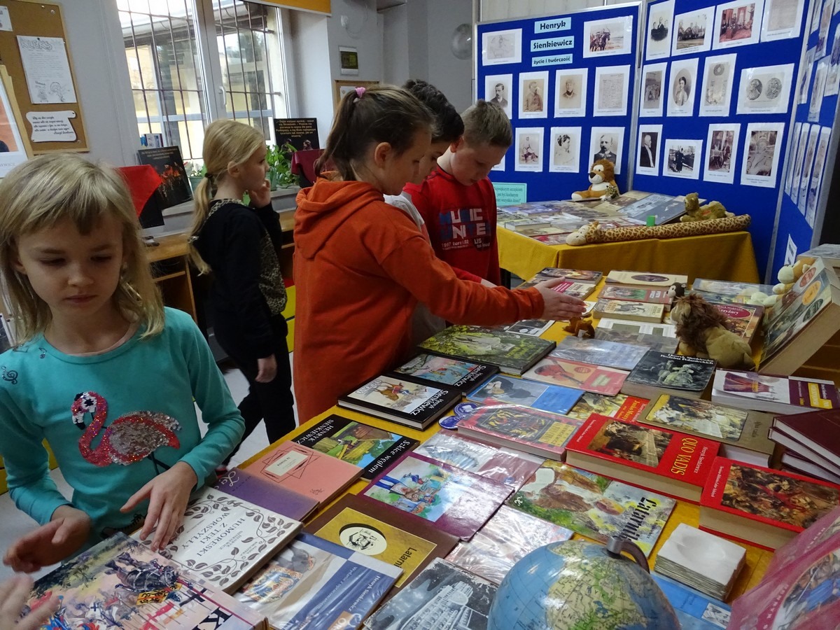 W tym dniu przygotowano także w bibliotece wystawę o Henryku Sienkiewiczu. Ponadto nauczyciele języka polskiego we wszystkich klasach przeprowadzi lekcję o sylwetce Patrona i jego twórczości .Chętne klasy utrwaliły informacje o Patronie w formie lapbooka.