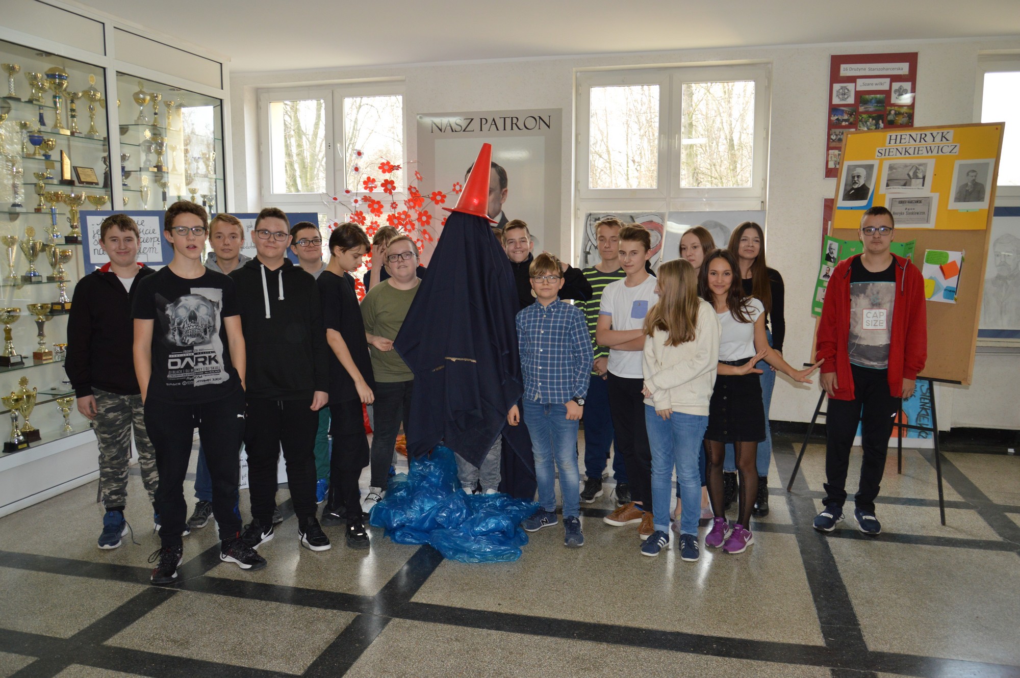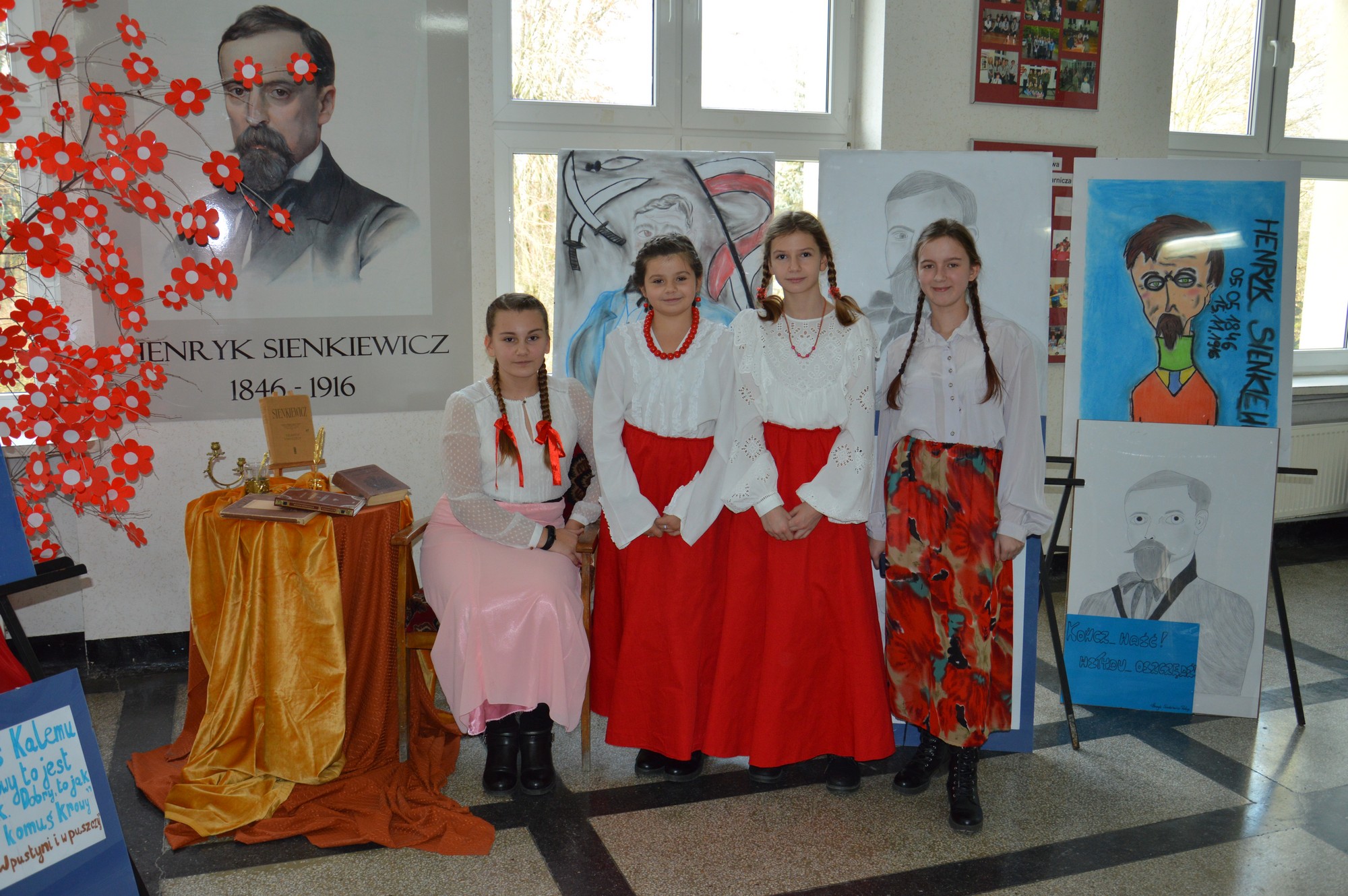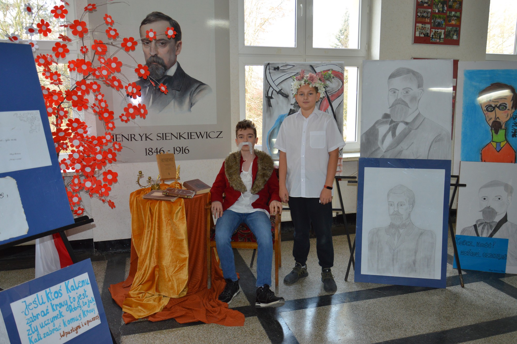 W tym dniu przygotowano także w bibliotece wystawę o Henryku Sienkiewiczu. Ponadto nauczyciele języka polskiego we wszystkich klasach przeprowadzi lekcję o sylwetce Patrona i jego twórczości .Chętne klasy utrwaliły informacje o Patronie w formie lapbooka.