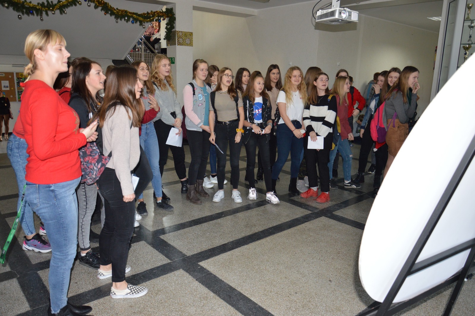 Świąteczne kolędowanie, radość na twarzach, uśmiechy i teksty w wielu językach świata to czas jaki towarzyszy nam tylko raz w roku. Nauczyciele języków obcych przygotowali świąteczną niespodziankę dla uczniów w postaci muzycznych przerw z utworami w klimacie świąt Bożego Narodzenia. Takie poznawanie kultury i obyczajów krajów obcojęzycznych przez śpiewanie to doskonała okazja na nietypowy sposób nauki i wspólne obcowanie poza ławkami szkolnymi. Wszystkim śpiewającym dziękujemy za wspólną zabawę, stworzenie tej magicznej atmosfery i życzymy takiego nastroju na wszystkich lekcjach do końca roku szkolnego.