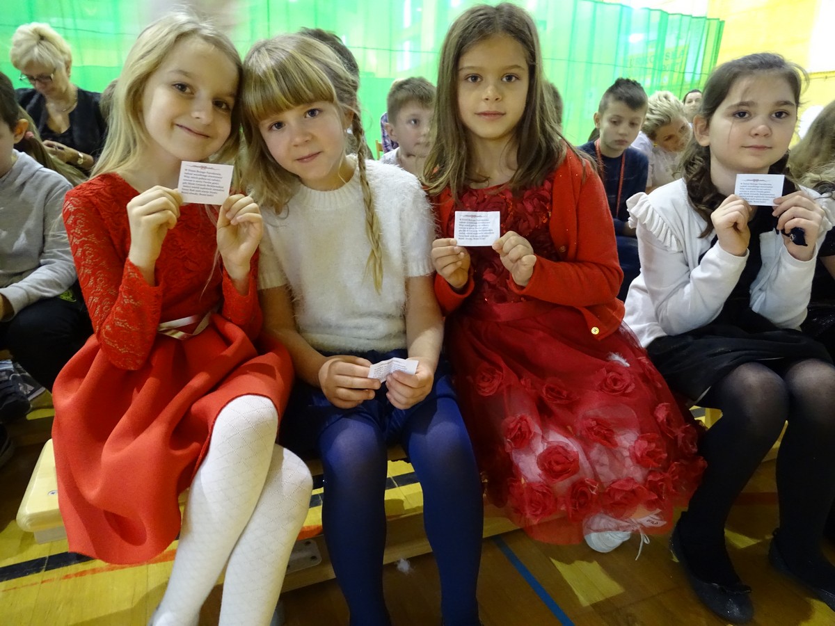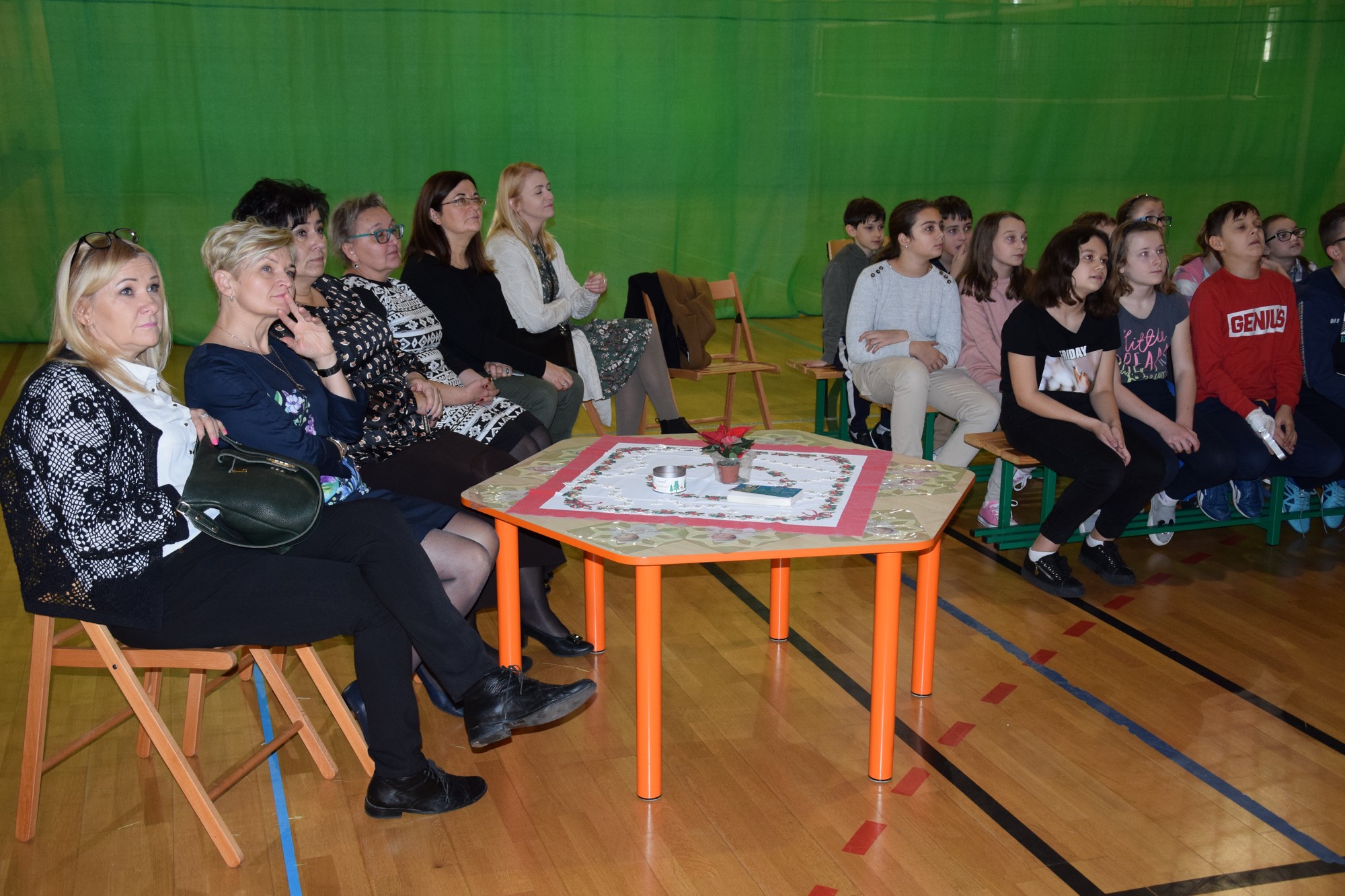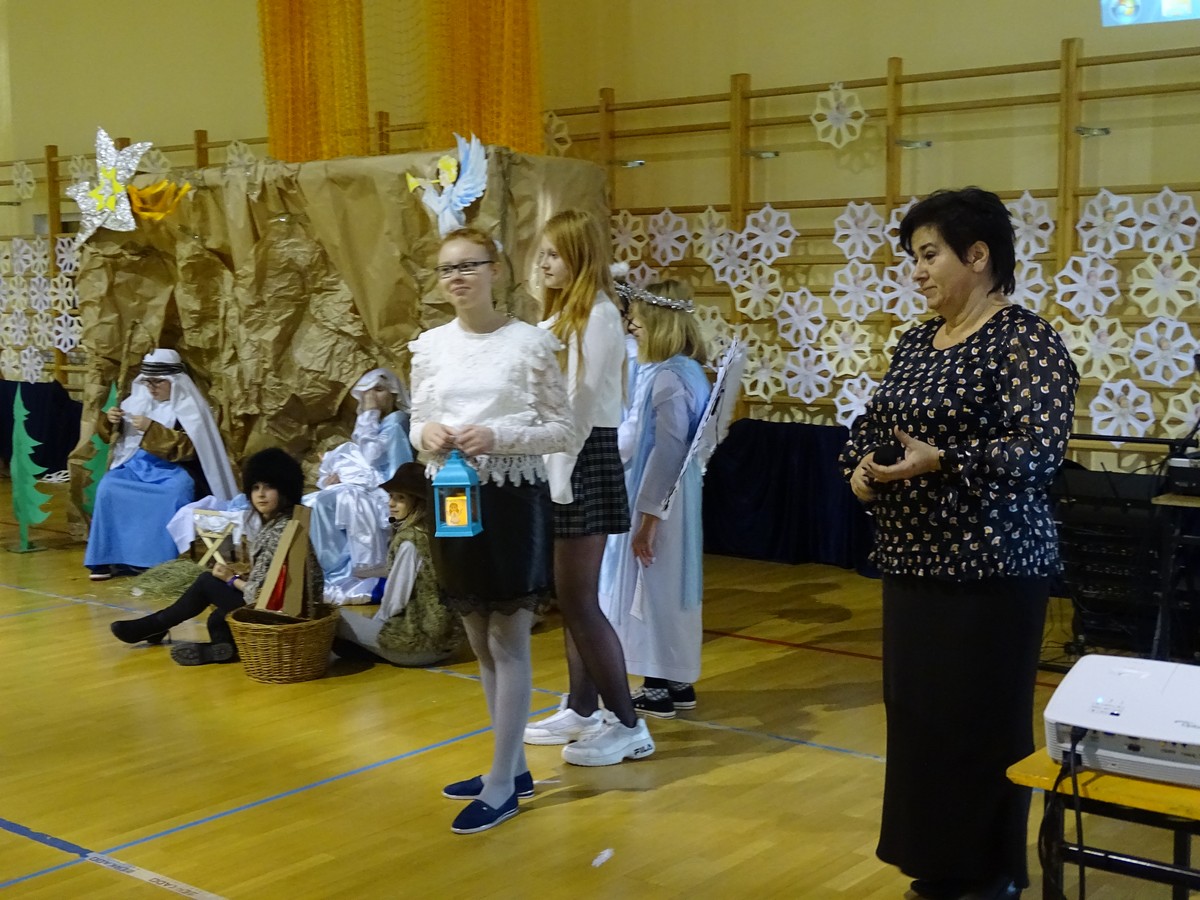 Pani Dyrektor szkoły Elżbieta Pokojowa podziękowała wszystkim za zaangażowanie i złożyła świąteczne życzenia . Uczniom i rodzicom życzyła , aby czas świąt upłyną w serdecznej rodzinnej atmosferze. Dzieciom bezpiecznego wypoczynku, może jak się uda pogoda, to ze śniegiem oraz, aby wszyscy wypoczęci wrócili do szkoły w Nowym 2020 Roku.
