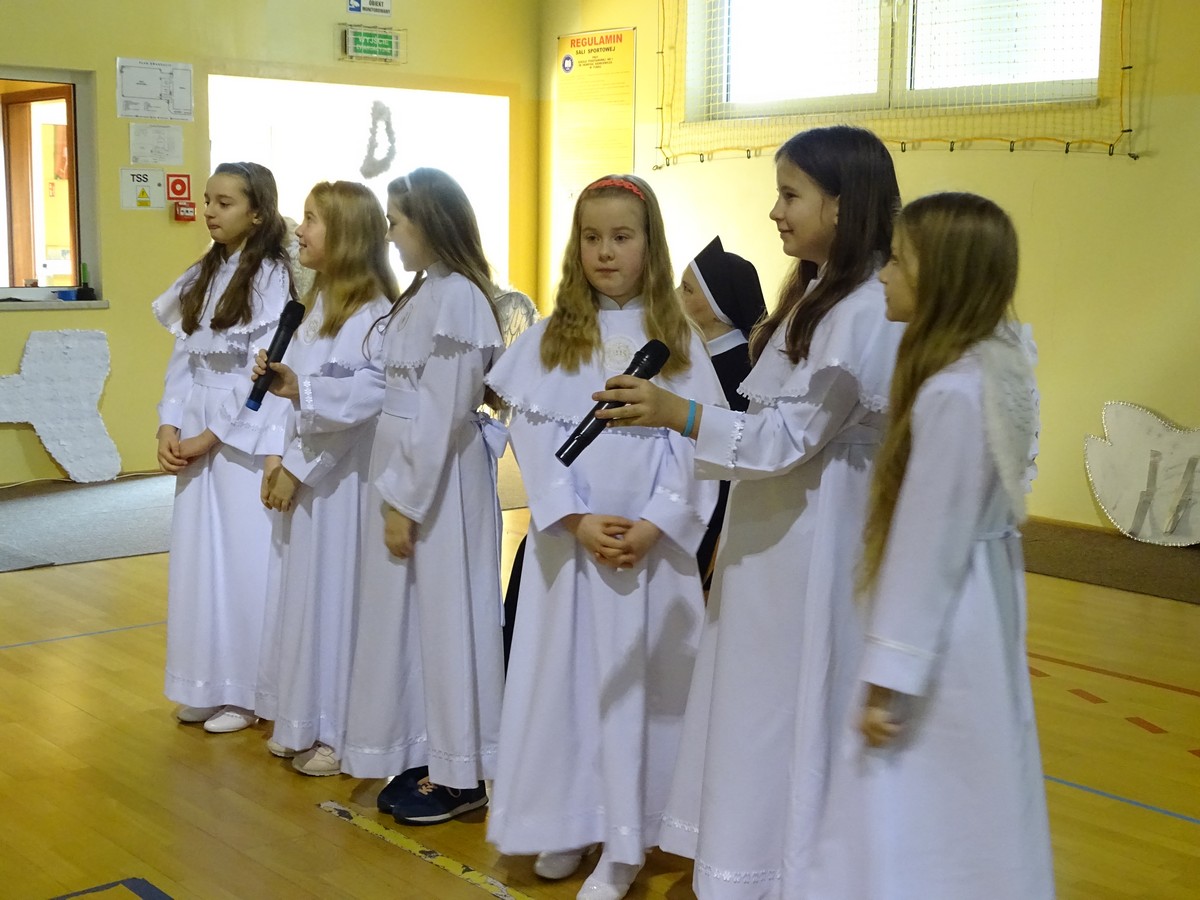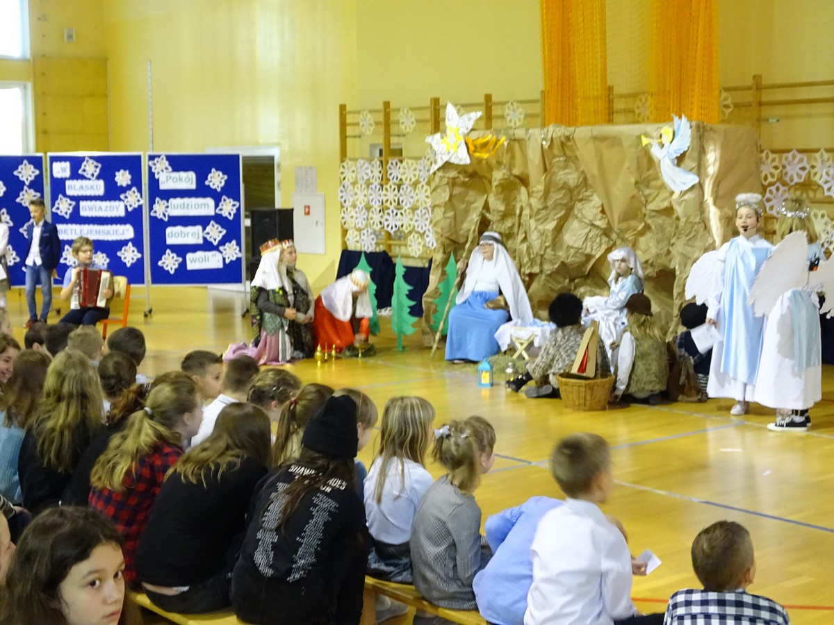 W Szkole Podstawowej nr 1 im. Henryka Sienkiewicza w Turku z okazji Świąt Bożego Narodzenia dnia 20.12.2019r. w budynku przy ulicy 3 Maja odbył się szkolny apel „W blasku gwiazdy betlejemskiej” . Kiedy zaświeciła pierwsza gwiazdka, i fruwały radosne anioły zwiastujące – „Pokój ludziom dobrej woli”, uczniowie z klasy V A i dziewczynki z klas IV pod okiem katechetki i s. Maksymiliany postarali się opowiedzieć historię narodzin Jezusa. Święta rodzina, pasterze z Janem grającym na akordeonie, dzieci z lampionami i trzej królowie darami, wprowadzili wszystkich w świąteczny nastrój tak, że zebrani uczniowie z nauczycielami i rodzicami włączyli się we wspólne kolędowanie. Był to czas, gdzie cała społeczność szkolna jako ludzie dobrej woli, zaangażowała się w stworzenie niepowtarzanej chwili.