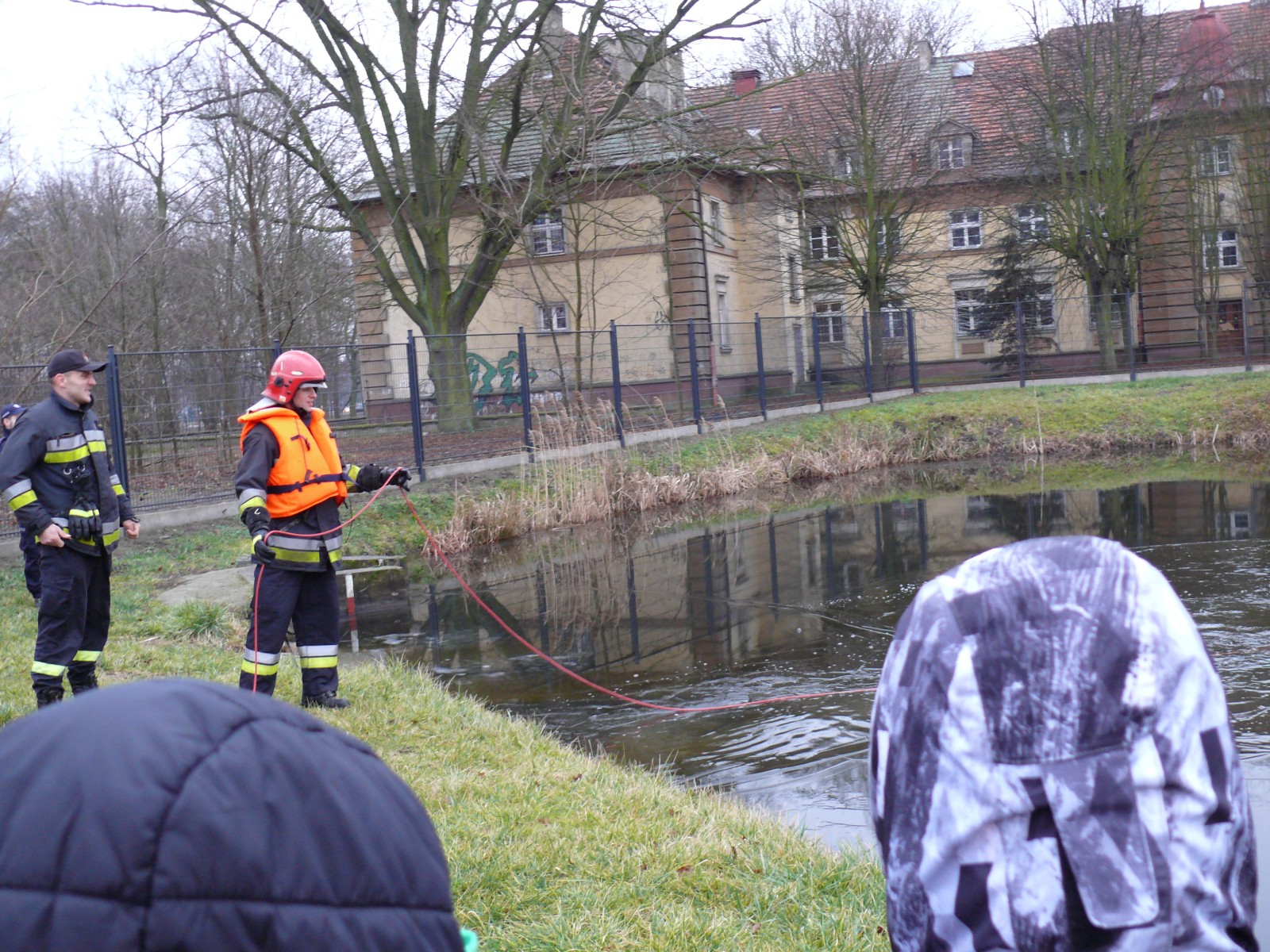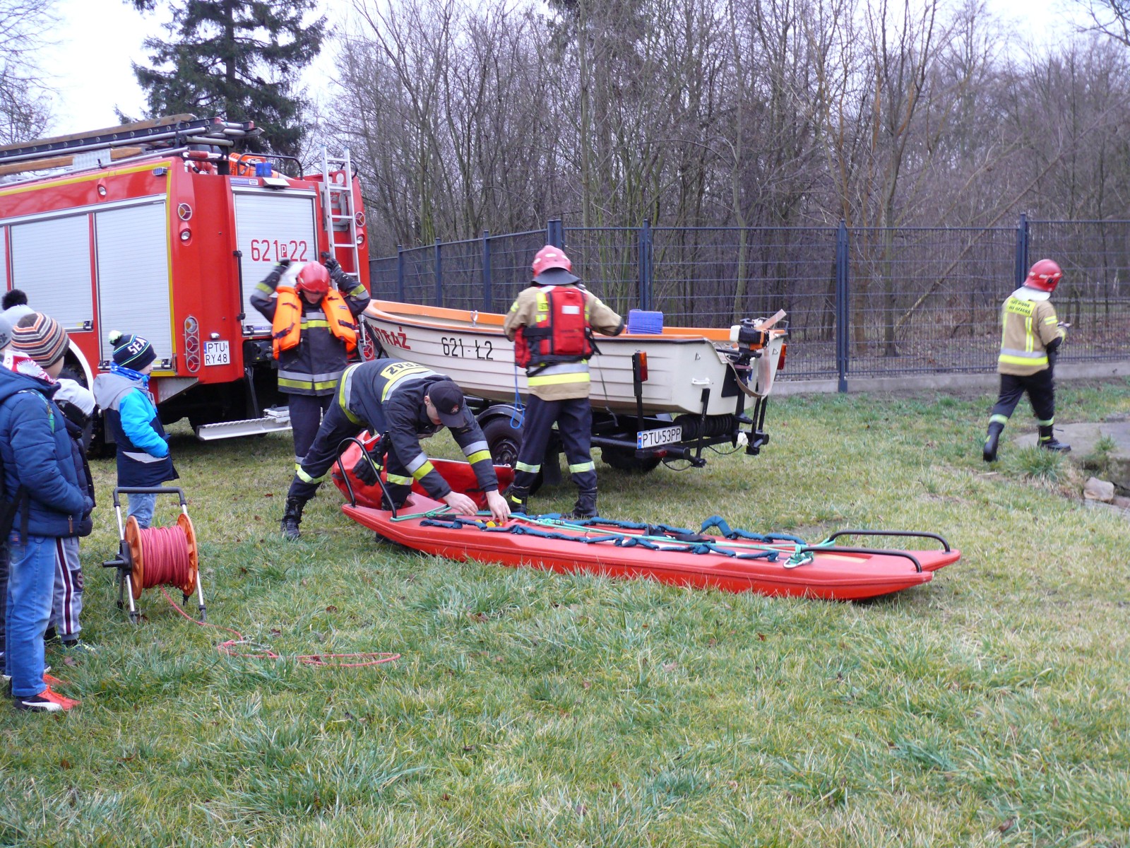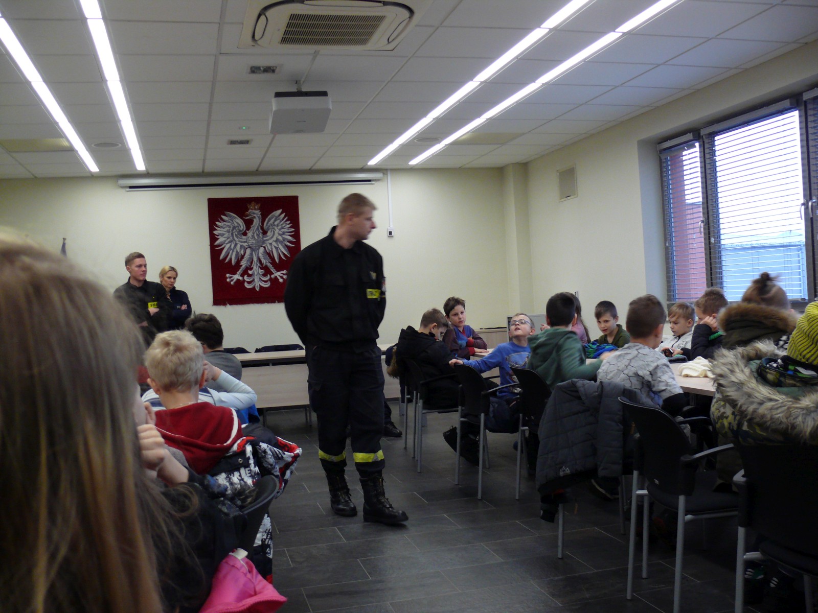 W ramach akcji „Bezpieczne ferie” Państwowej Straży Pożarnej przy ul. św. Floriana, uczniowie kl. 2c i 3a pod opieką p. A. Sujewicz, A. Szymczyk oraz M. Poturały, uczestniczyli w spotkaniu i pogadance, zorganizowanych w trosce o bezpieczeństwo najmłodszych i młodzieży. W siedzibie komendy dzieci spotkały się nie tylko z funkcjonariuszami Państwowej Straży Pożarnej, ale również Policji. Strażacy omówili niebezpieczeństwa związane z sezonem grzewczym oraz podkreślali korzyści płynące z zamontowania w domach czujek dymu oraz czadu, a także jak postępować, gdy sami zostajemy w domu. Następnie uczniowie mogli przyjrzeć się pokazowi akcji ratowniczej. Strażacy ostrzegali przed zabawami na zamarzniętych zbiornikach wodnych i zaprezentowali podejmowanie z wody osoby, pod którą załamał się lód. Było to bardzo edukacyjne spotkanie.
