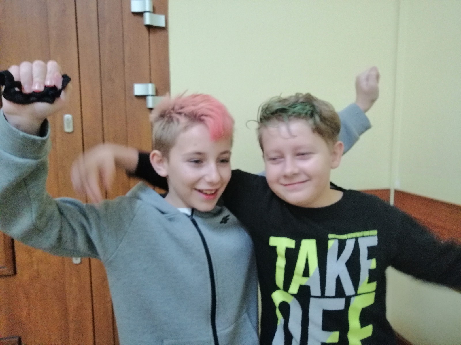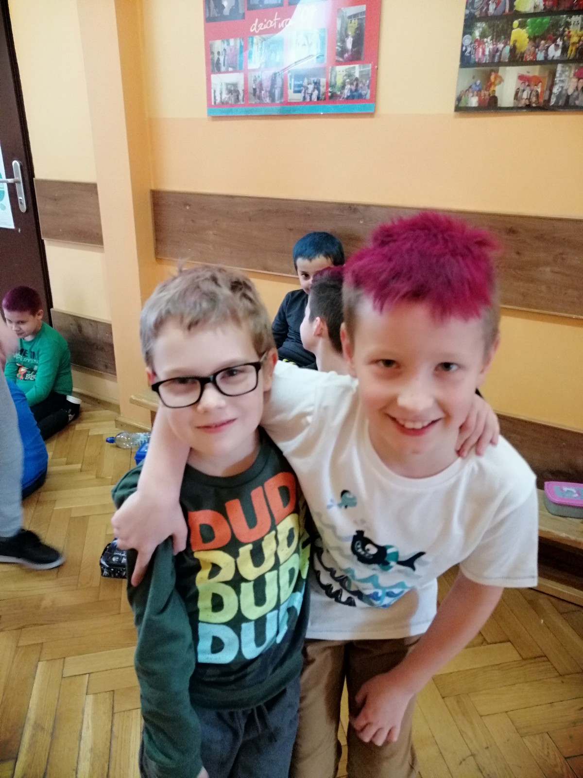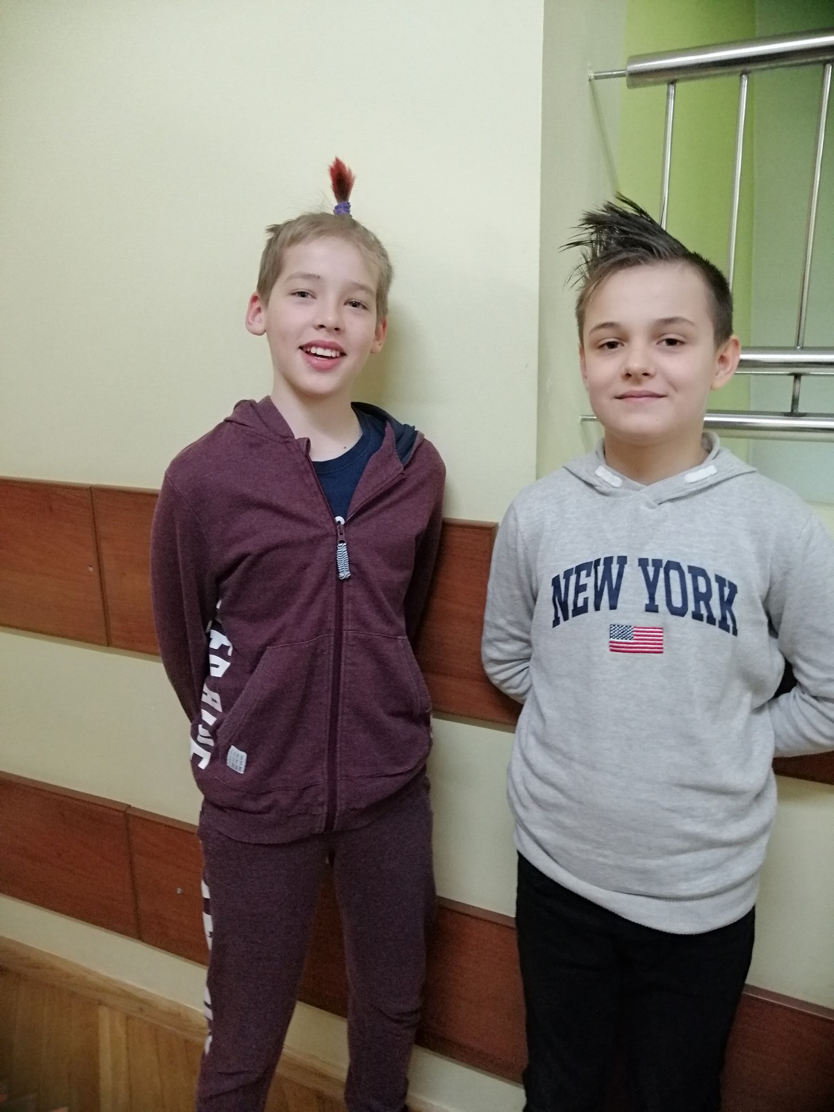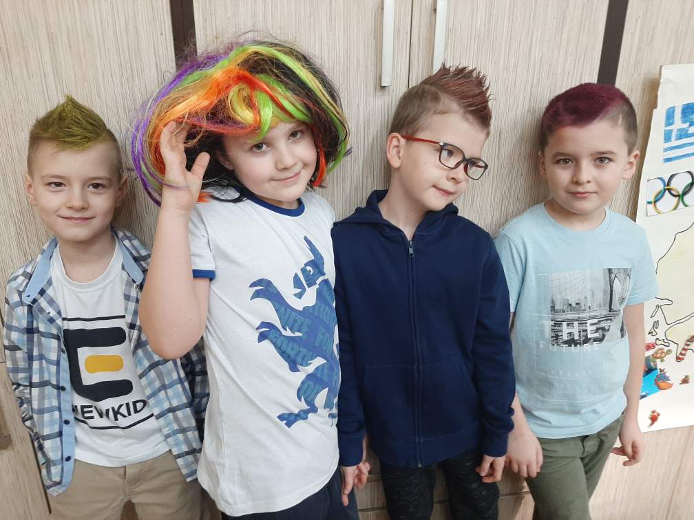 W tym dniu uczniowie wykazali się niezwykłą pomysłowością w tworzeniu niezwykłych fryzur. Kolorowe włosy, kwiaty, motyle, a nawet baloniki zagościły w czuprynach dzieci.